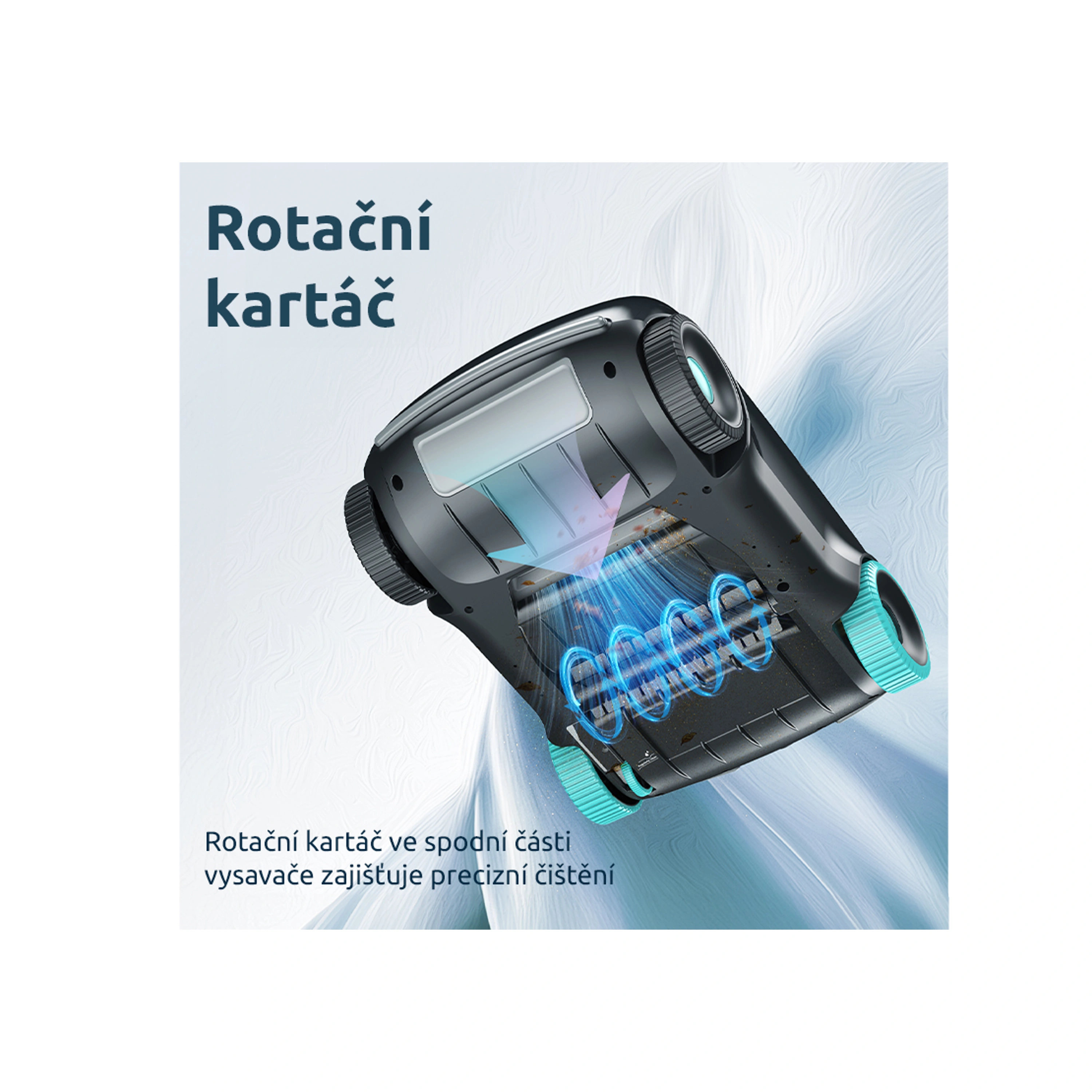 - Výkonný motor a velká kapacita baterie: Vestavěný Li-ion akumulátor s kapacitou 7800 mAh a napětím 10,8 V zaručuje dostatek energie pro důkladný úklid i větších bazénů.