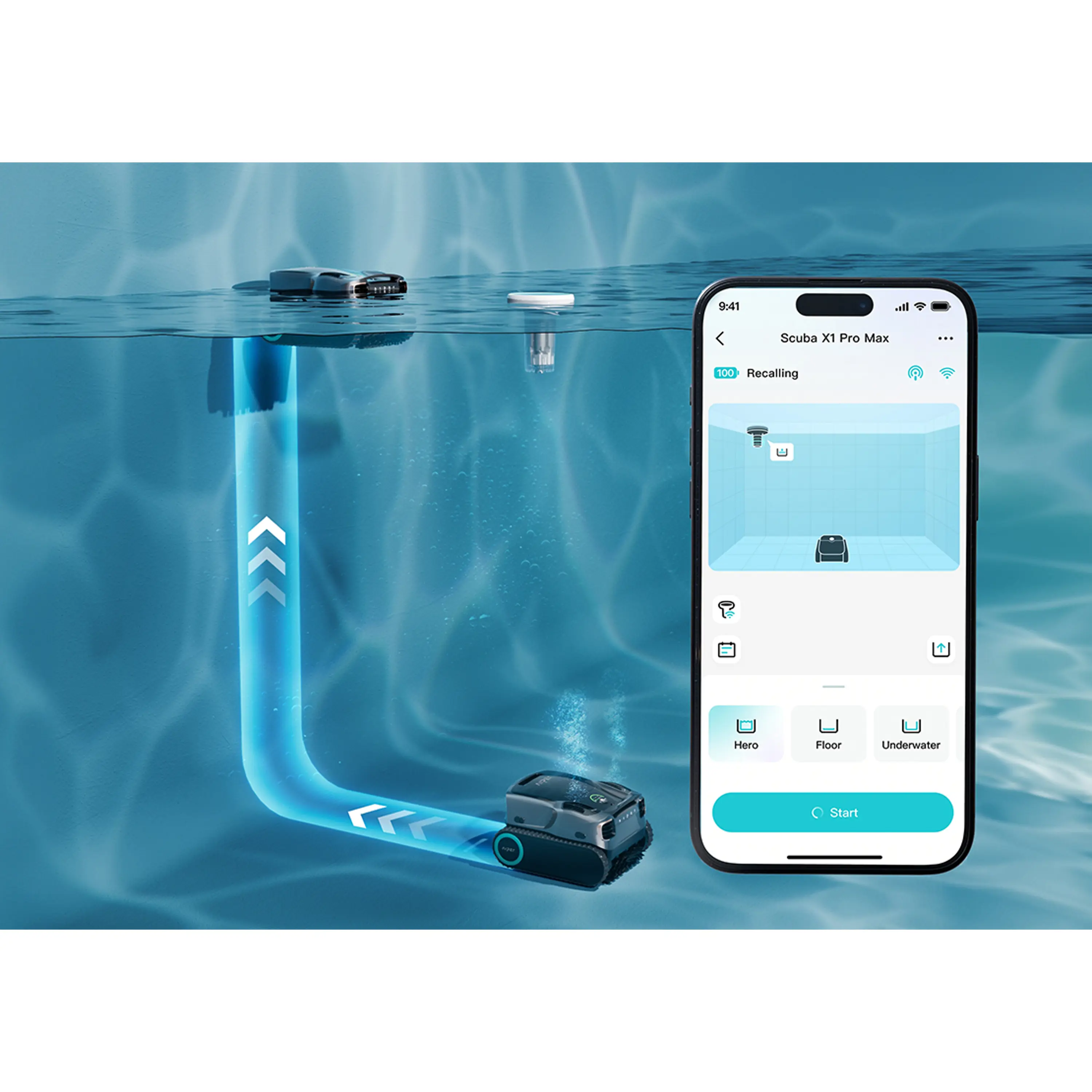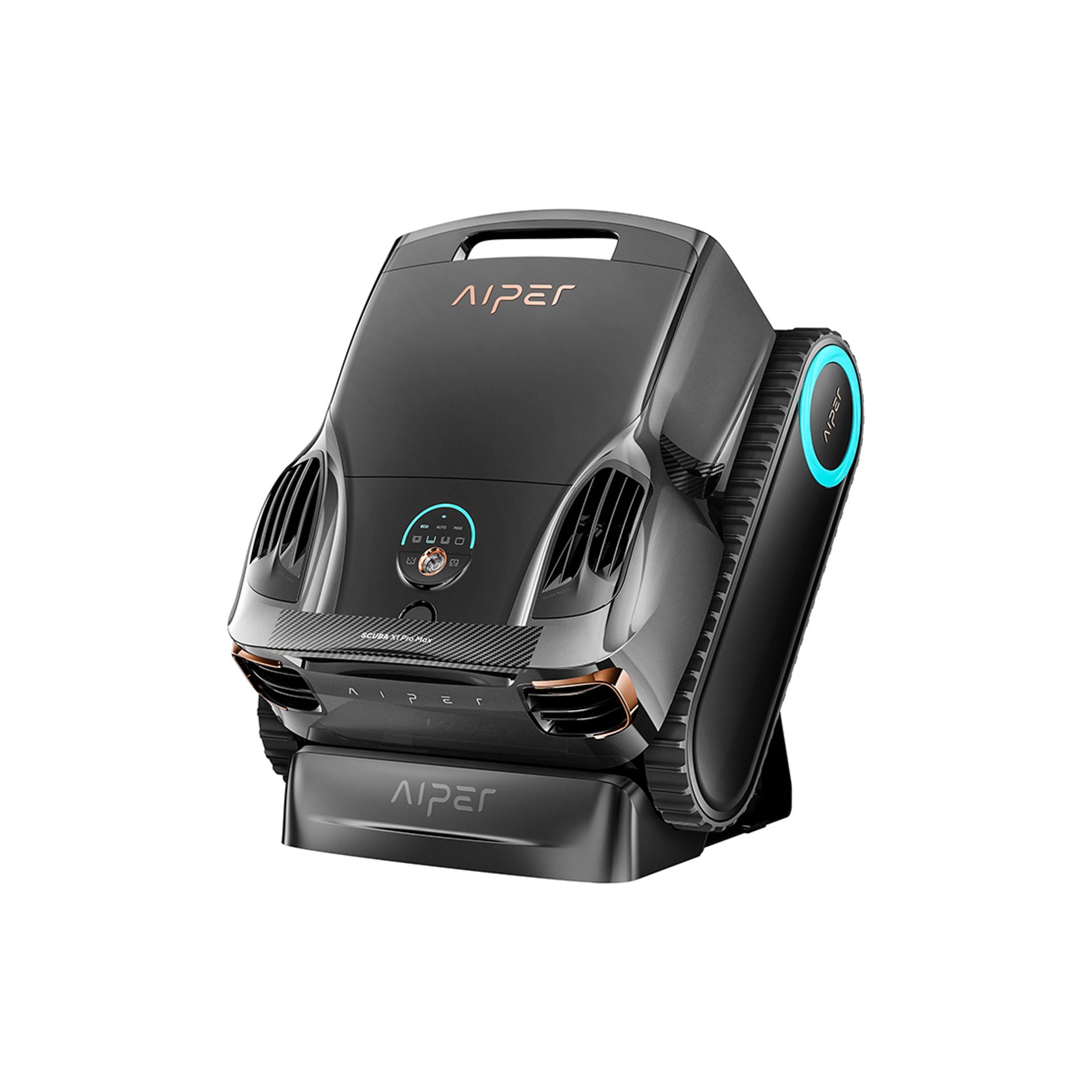 Aiper Scuba X1 Pro Max je robotický bezdrátový vysavač bazénů, kombinovaný s bazénovým skimmerem. Vysavač je ideální pro všechny druhy, typy a tvary bazénů včetně schodů a nedostupných míst do 300 ㎡. Lehce se ovládá a pomocí technologie FlexiPath™ a 8 infračerveným kamerám načte tvar vašeho bazénu a vyčistí každé místo v bazénu a to včetně hladiny, a navíc se vyhýbá překážkám. Vysavač je vybaven wifi aplikací Aiper, díky které můžete ve vašem telefonu kontrolovat nabíjení a stav baterie a plánovat čištění bazénu. Model Scuba X1 Pro může komunikovat i pod hladinou pomocí komunikátoru Hydrocomm (není součást balení).