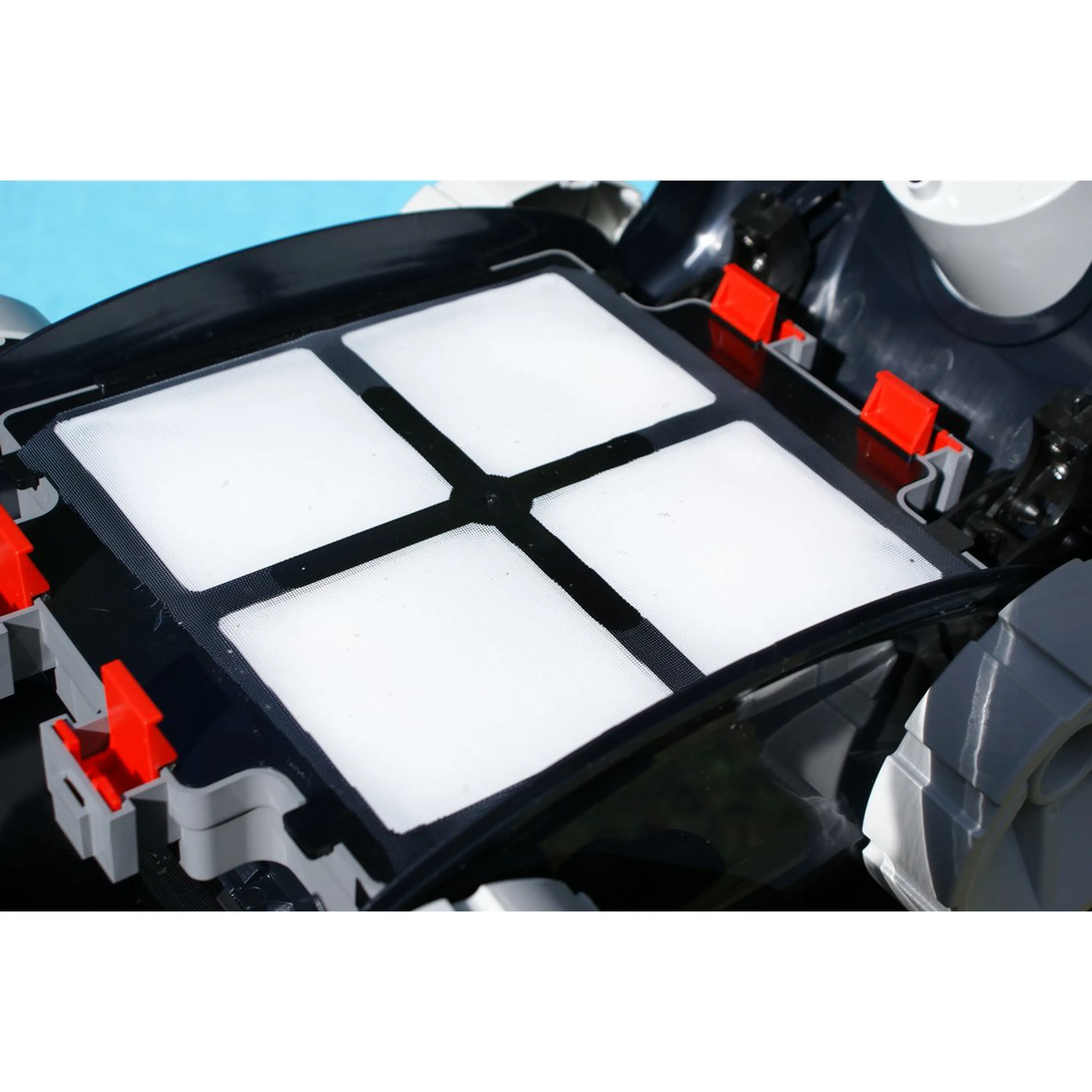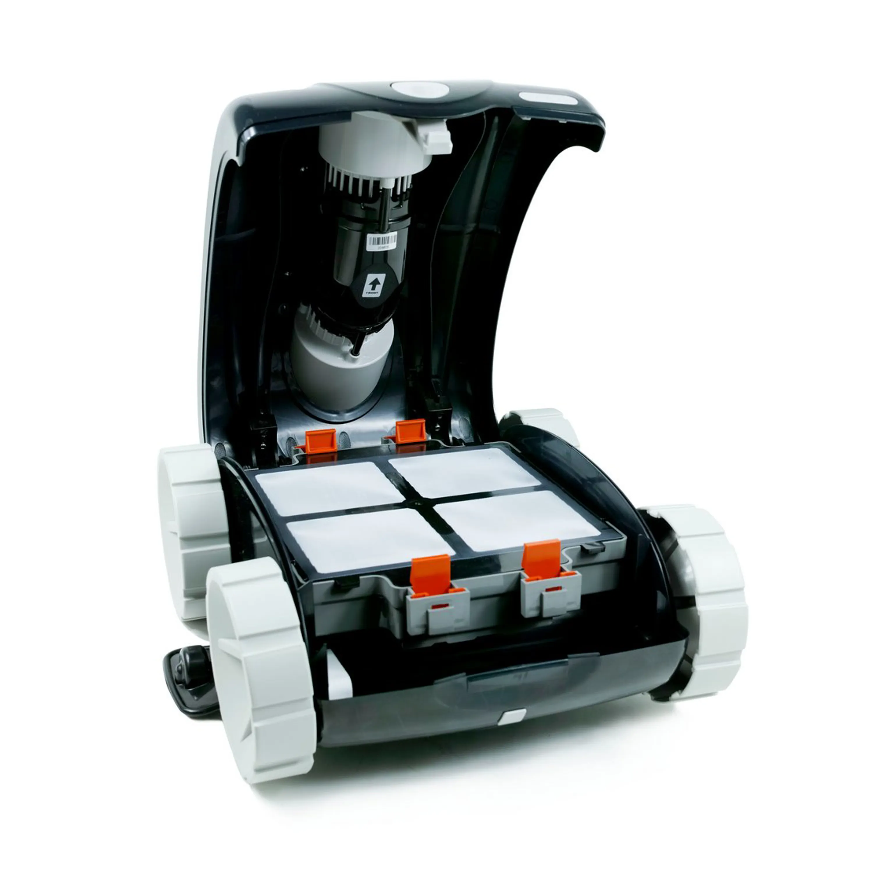 Elektronický swivel je technologie zabraňující zamotávání kabelu, která tak velmi prakticky zjednodušuje užívání vysavače a zefektivňuje jeho práci. Možnosti nastavení rychlosti a směru pohybu pro přizpůsobení ploše dna bazénu. Výbavou je i boční přisávání, které rozšiřuje záběr sběru nečistot z 27 cm na 40 cm. Nízká váha 5,5 kg velmi usnadňuje obsluhu a celkovou manipulaci.
