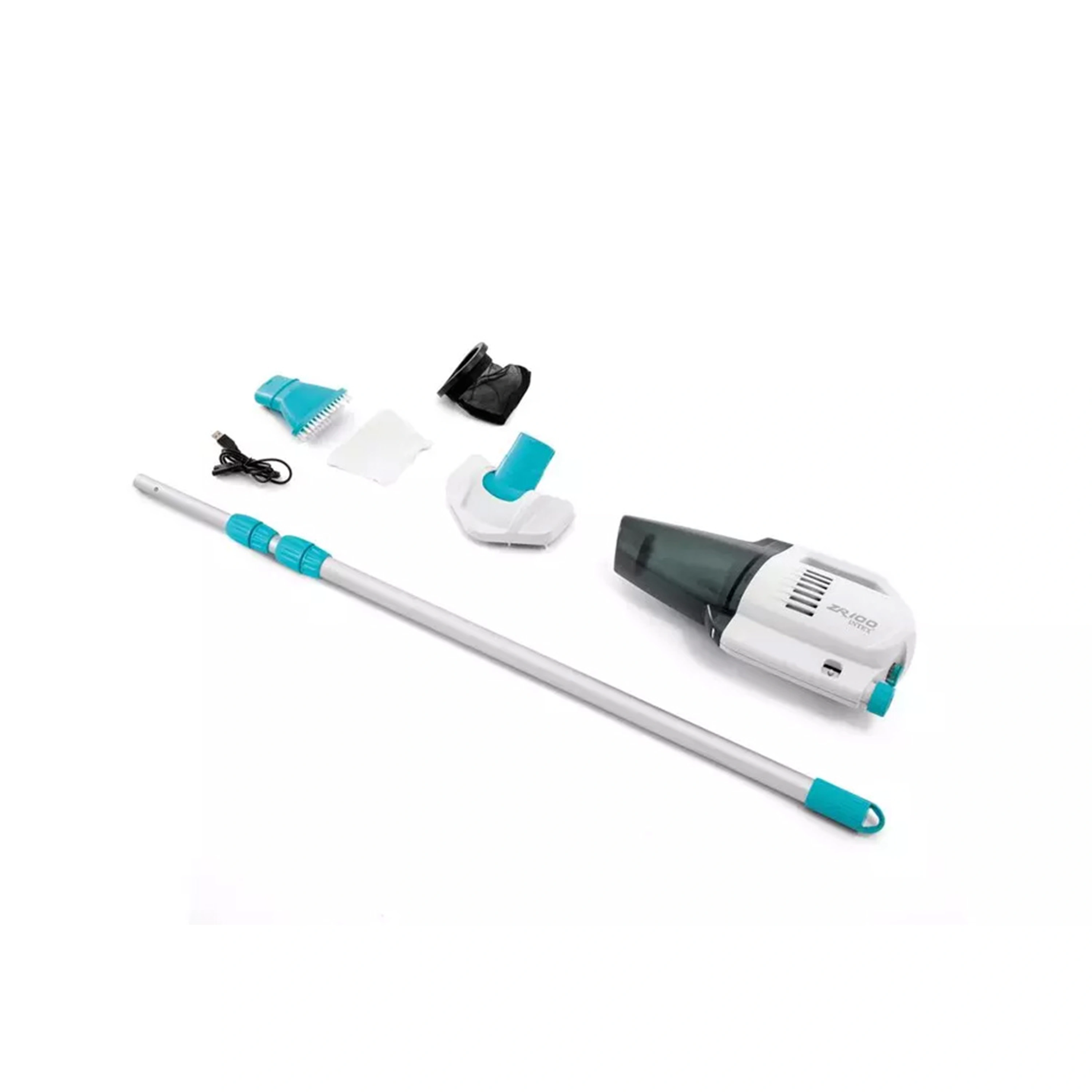 Nabíjecí bazénový vysavač Intex ZR100 lze díky dobíjecí baterii používat bezdrátově. Pokud není ve vodě, automaticky se vypne. Ve výbavě má dva čistící kartáče a jemný filtrační sáček pro důkladné čištění a zvláště jemné filtrování. S hliníkovou výsuvnou rukojetí až do délky 2,39 m se vám bude vysavač velmi snadno ovládat. Vysavač je vhodný pouze pro nadzemní bazény do průměru 5,49 metrů.