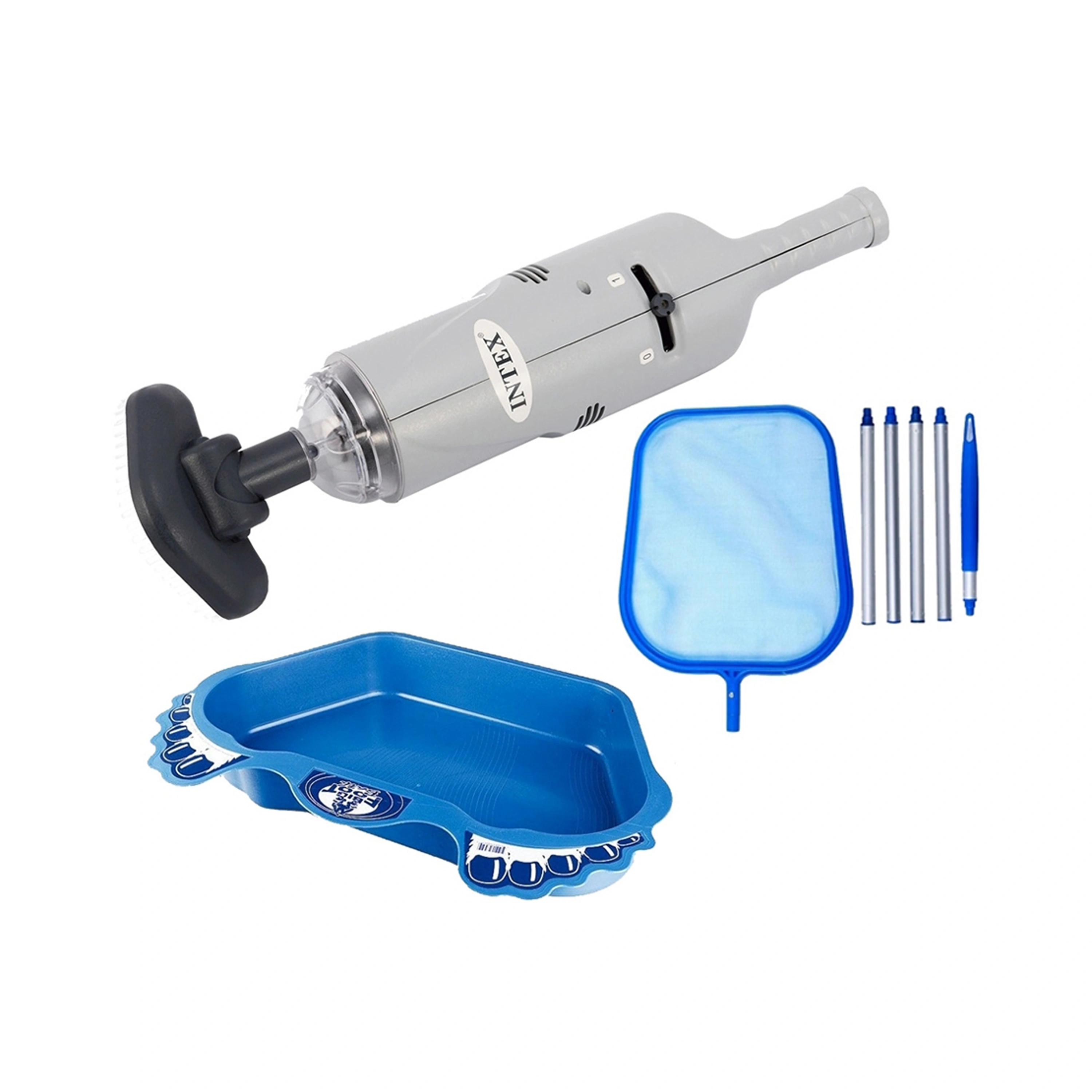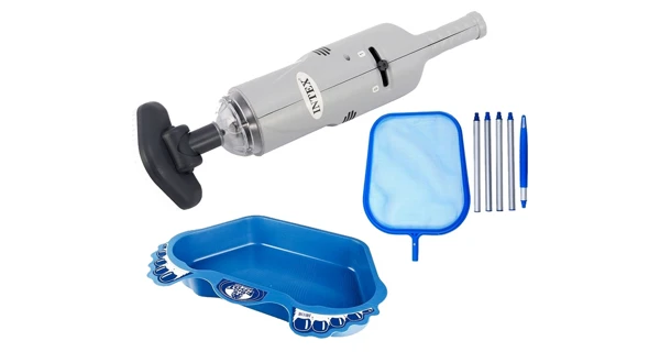 Výhodná sada akumulátorového bazénového vysavače Star Vac AKU, skládací hladinové síťky a vaničky na oplach nohou. Udržujte svůj bazén v čistotě díky této výhodné sadě na údržbu bazénu.