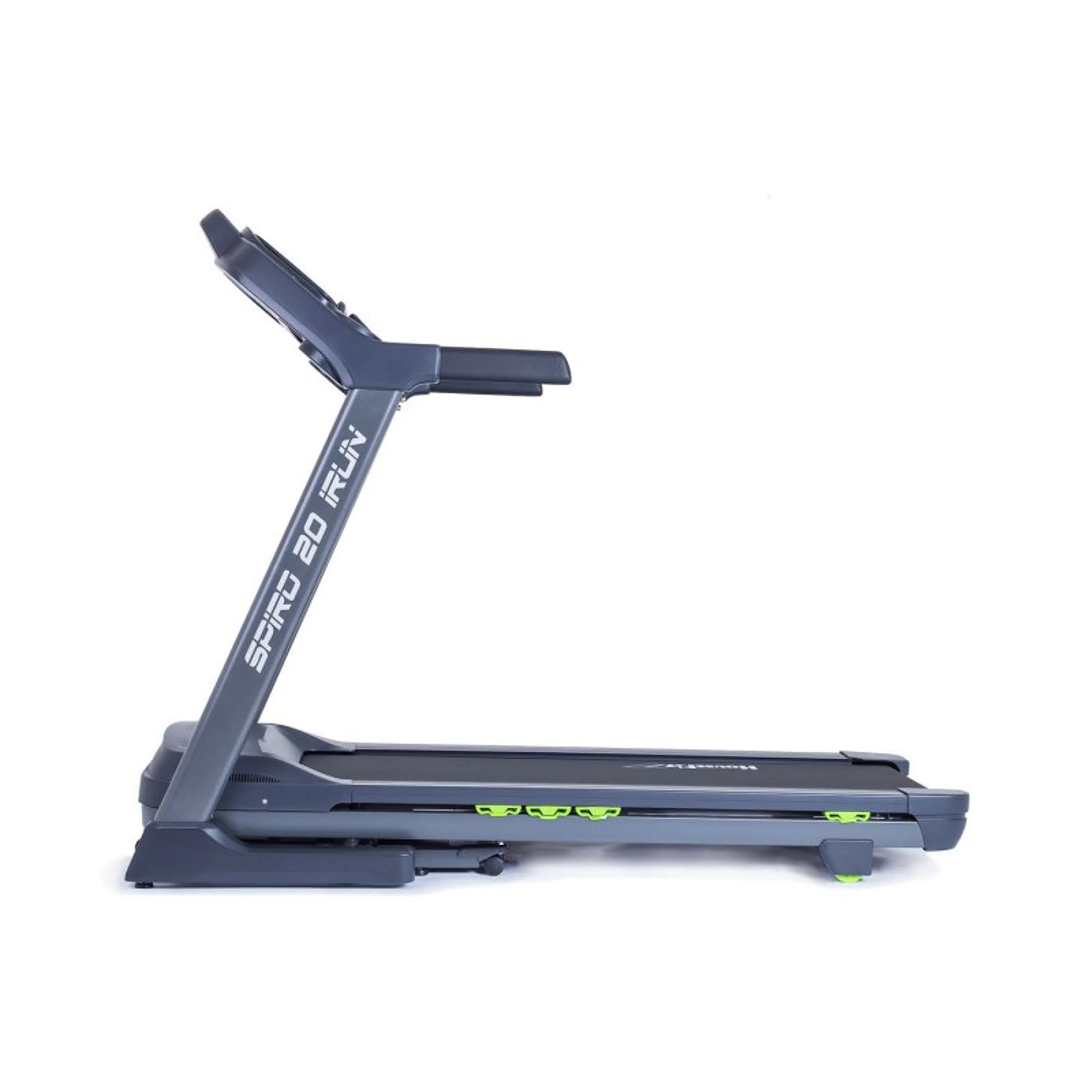 HOUSEFIT SPIRO 20 iRun model střední řady běžeckých pásů HOUSEFIT určené pro domácí kondiční trénink začátečníků i sportovců. Kromě kvalitní mechaniky, povedeného designu a robusní konstrukce nabízí pás i moderní elektroniku s možností propojení s tabletem přes Bluetooth a využívání tréninkových aplikací. Robustní rámová konstrukce s nosností do 135 kg a kvalitní zpracování trenažéru zaručuje dlouhou životnost stroje i při pravidelném běhání.