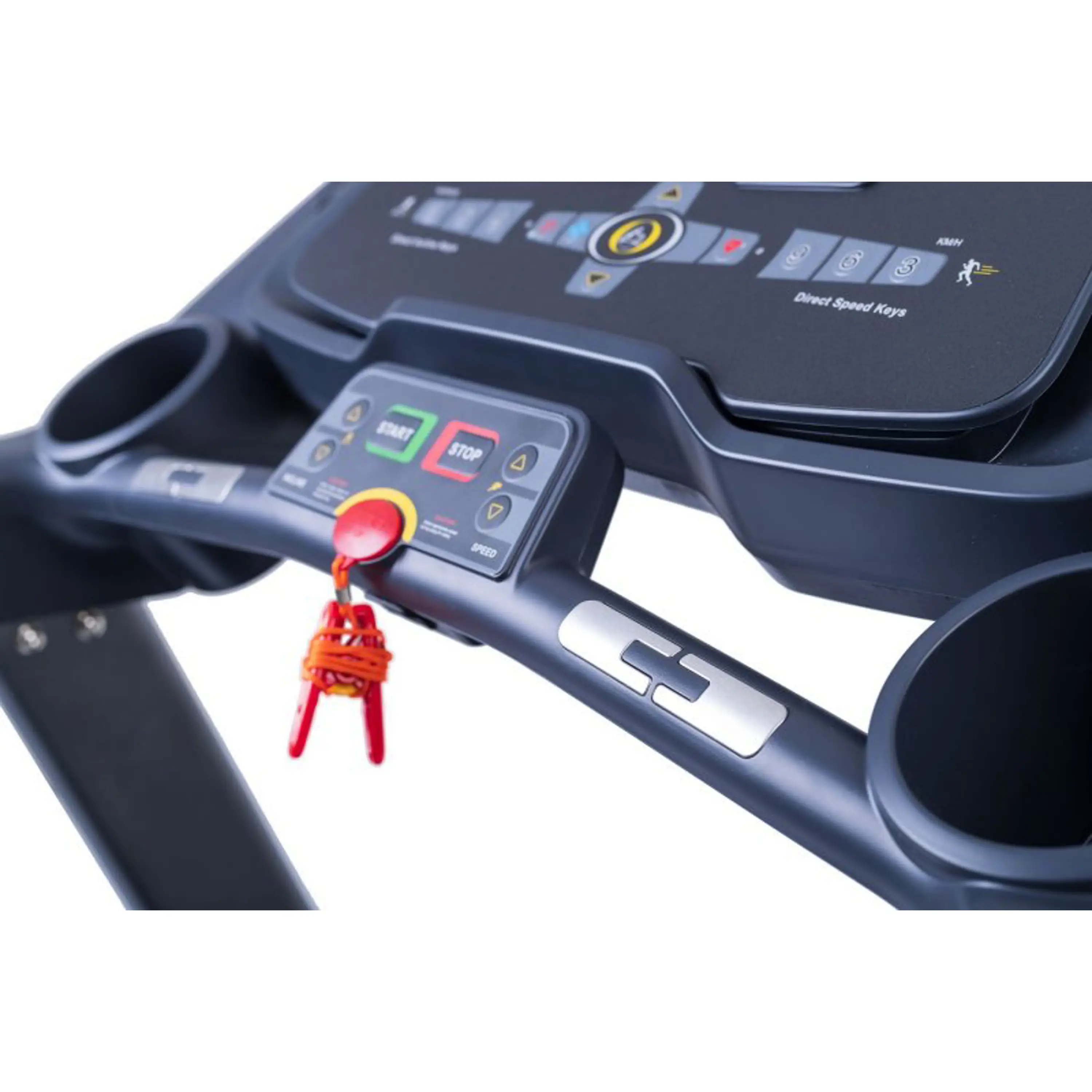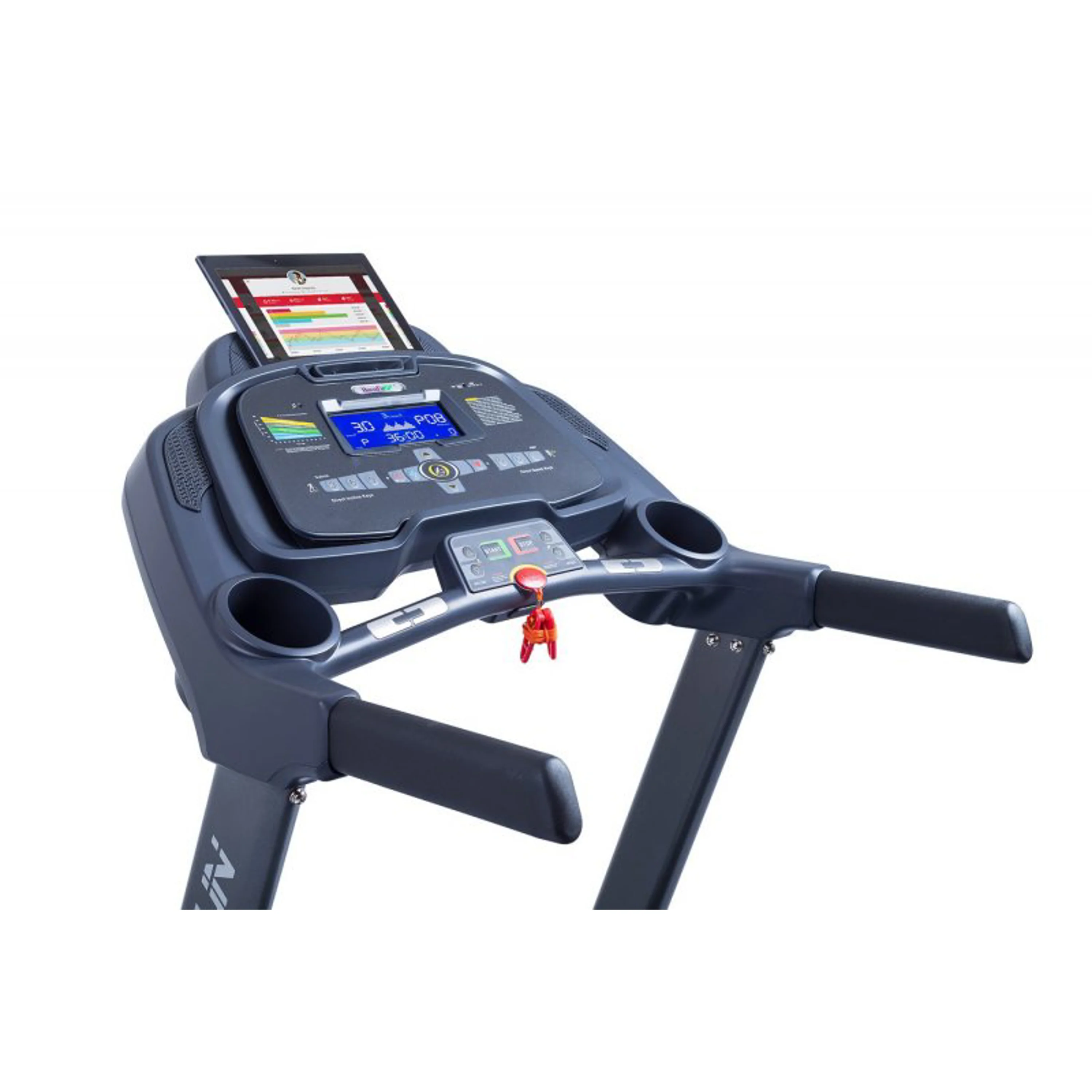 Motor má maximální výkon 4,5 HP (3,3 kW), elektronicky nastavitelnou rychlost od 0 do 16 km/h a možnost simulace běhu v terénu díky elektronicky nastavitelnému sklonu od 0 do 15%. Průběh tréninku můžete sledovat na velkém 7“ podsvětleném LCD displeji s řadou programů. Ať už využijete automatické cvičební programy, nebo si zátěž budete dávkovat ručně, zobrazované hodnoty vám umožní přizpůsobit svůj trénink vaší aktuální kondici a cílům.