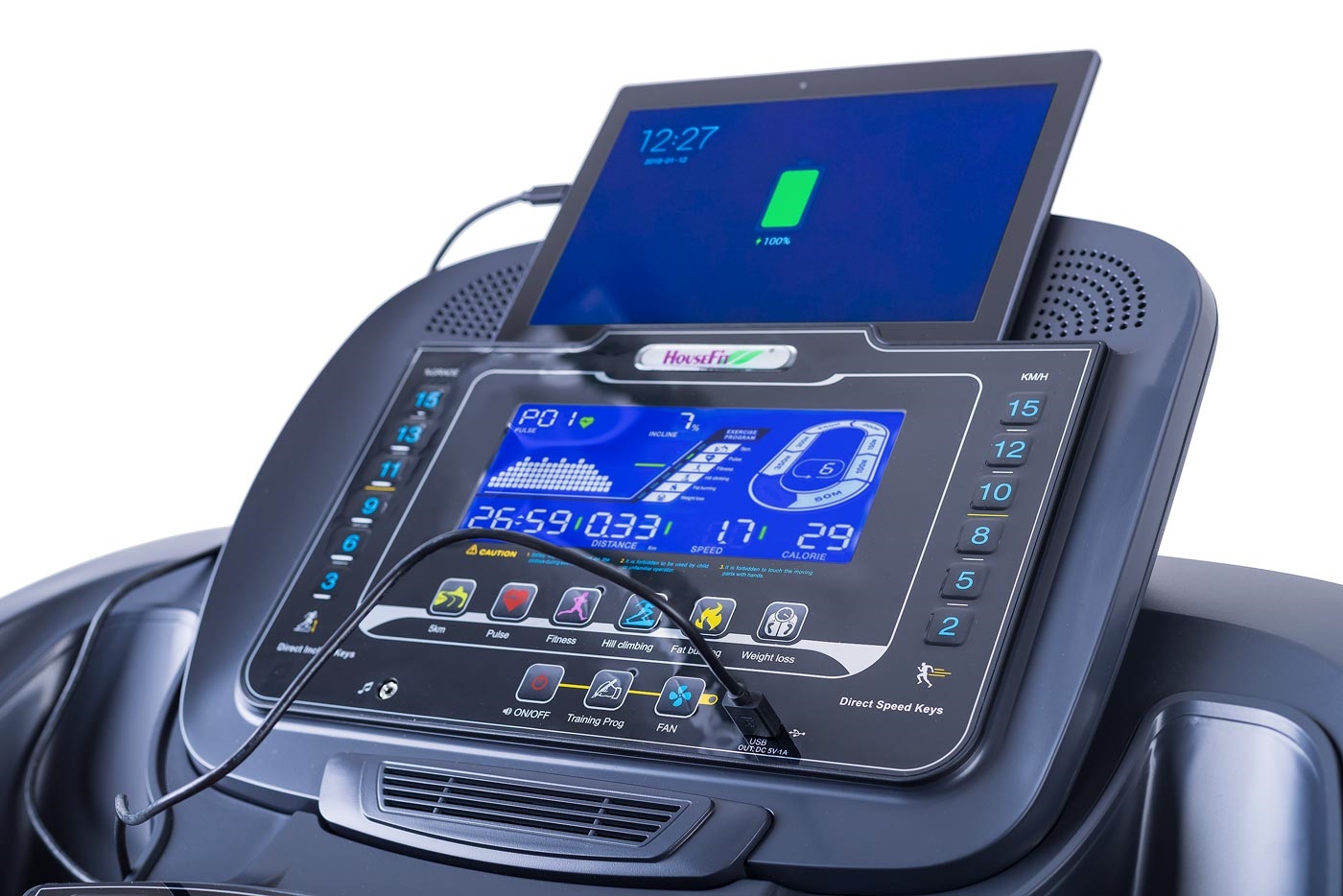Funkce Bluetooth umožňuje běžecký pás spárovat s chytrými zařízeními pro poslech hudby ze zabudovaných reproduktorů a také můžete využívat tréninkové aplikace. Trenažér komunikuje s tréninkovými aplikacemi Kinomap a iConsole+.
