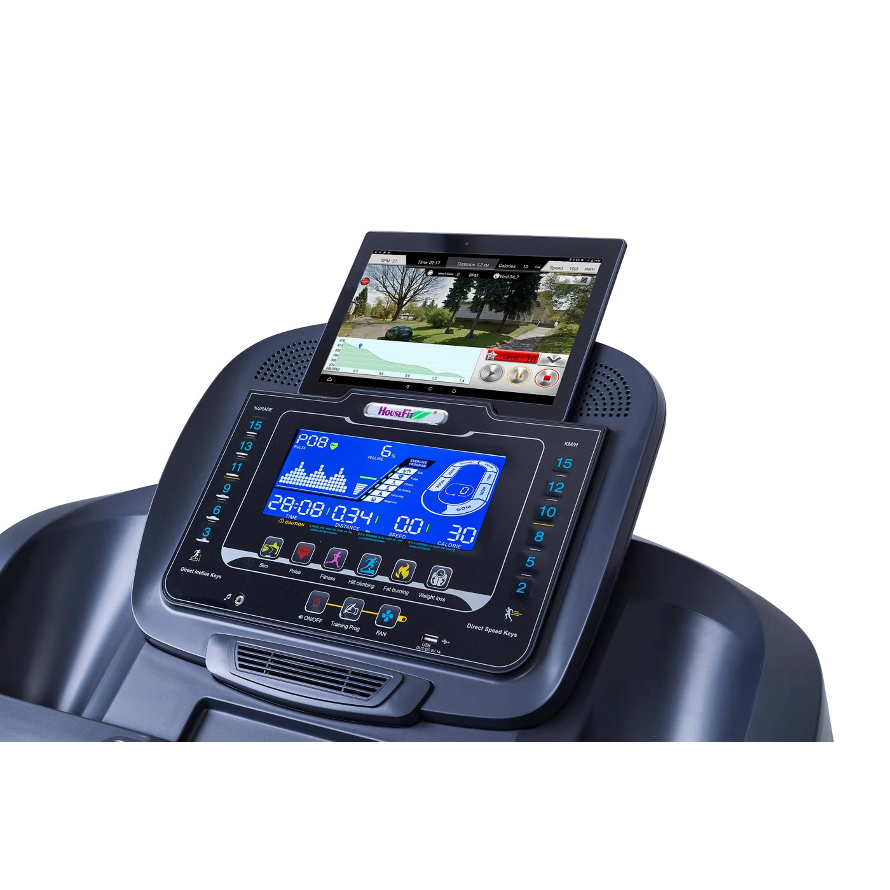 Svůj trénink na běžeckém trenažéru HOUSEFIT SPIRO 80 iRun budete mít pod kontrolou prostřednictvím tréninkového počítače s přehledným podsvětleným LCD displejem a řadou programů. Ať už využijete automatické cvičební programy, nebo si zátěž budete dávkovat ručně, zobrazované hodnoty vám umožní přizpůsobit svůj trénink vaší aktuální kondici a cílům.