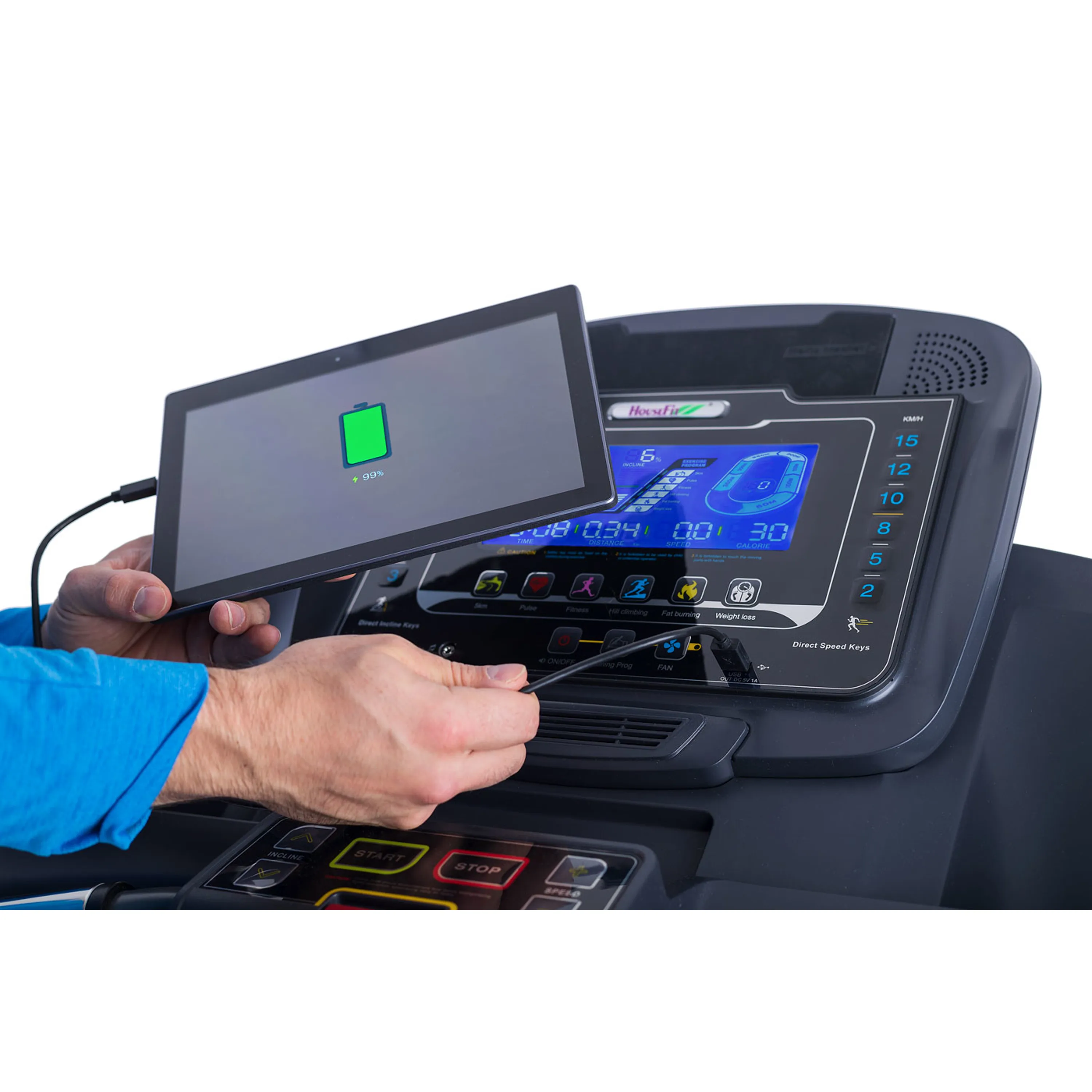 Funkce Bluetooth umožňuje běžecký pás spárovat s chytrými zařízeními pro poslech hudby ze zabudovaných reproduktorů a také můžete využívat tréninkové aplikace. Trenažér komunikuje s tréninkovými aplikacemi Kinomap a iConsole+.
