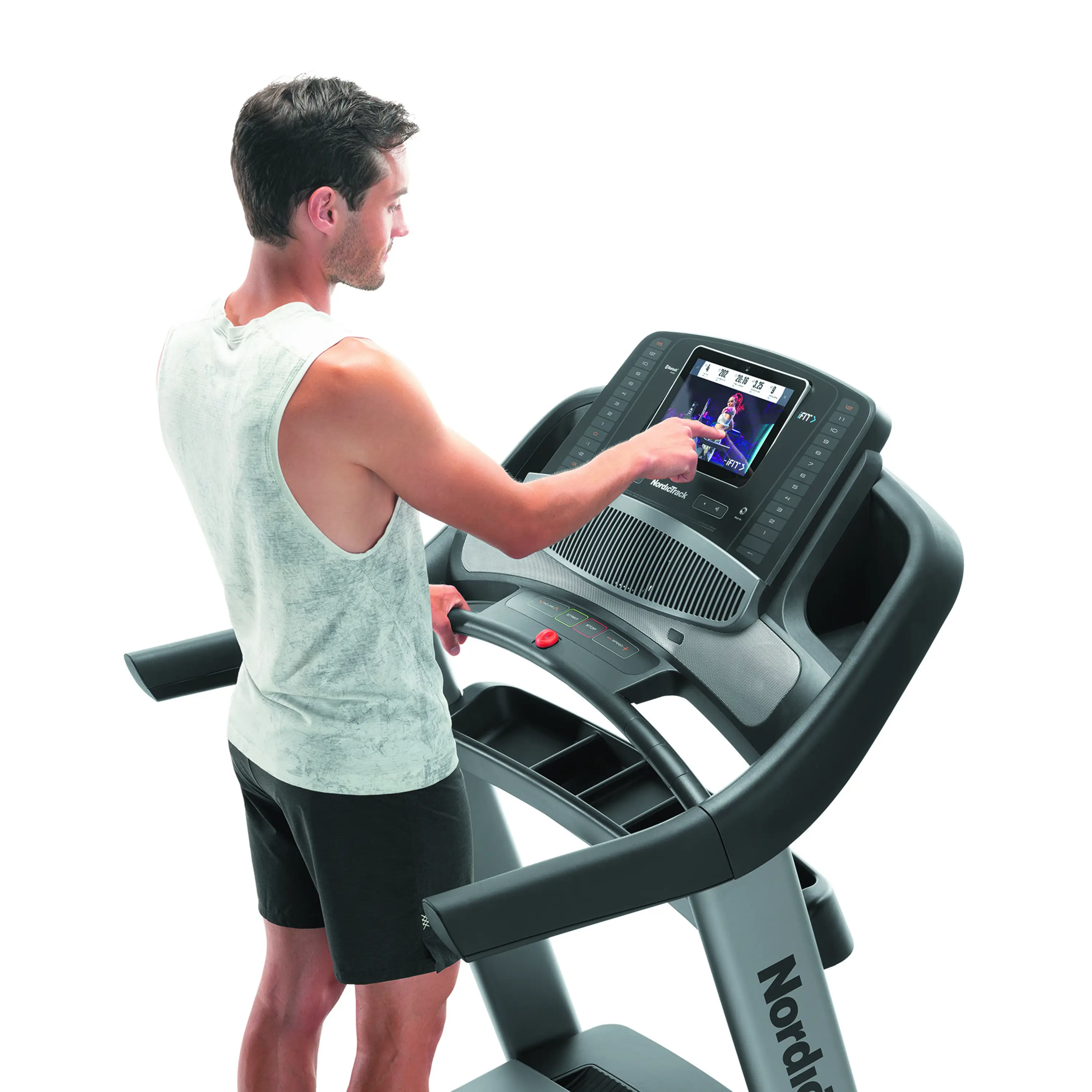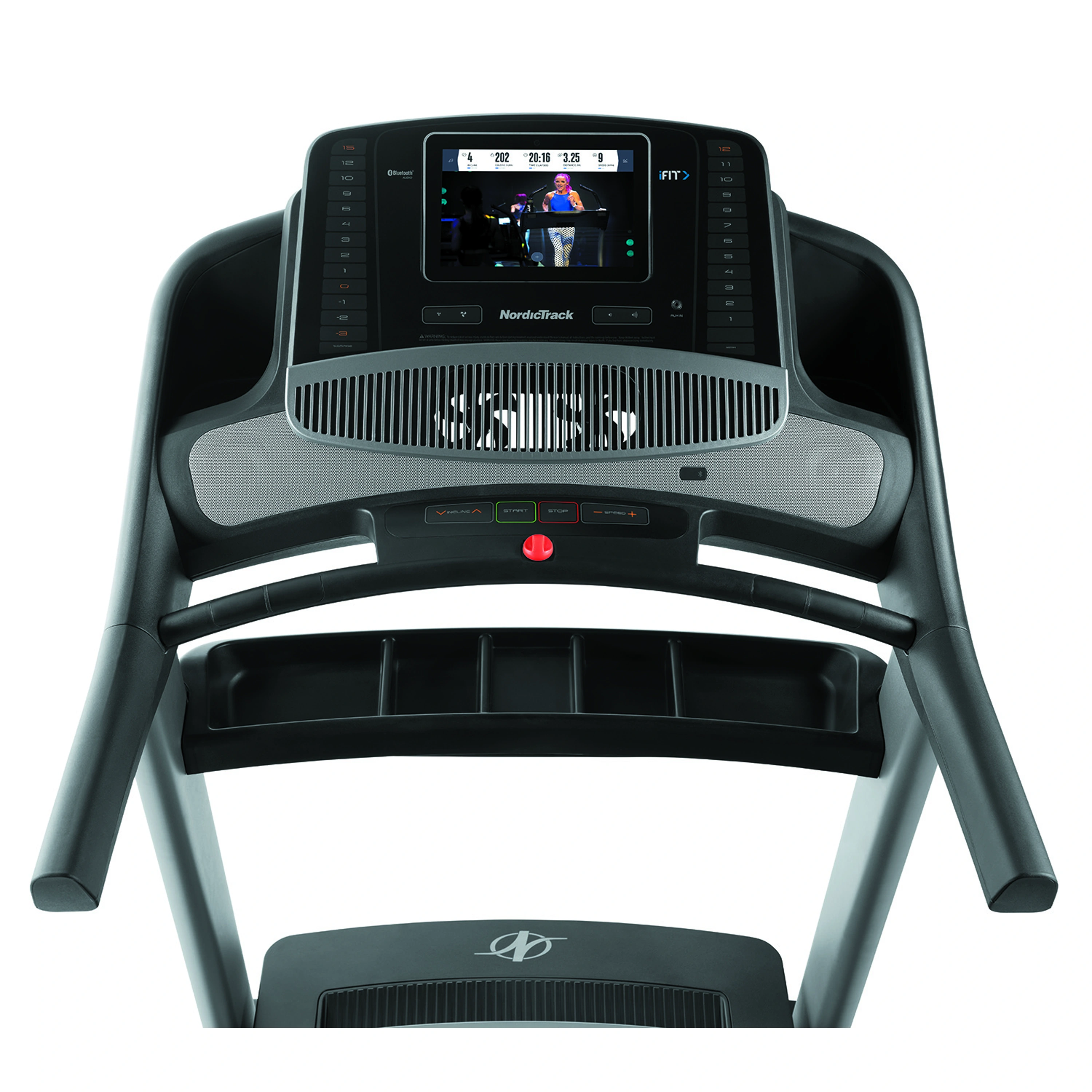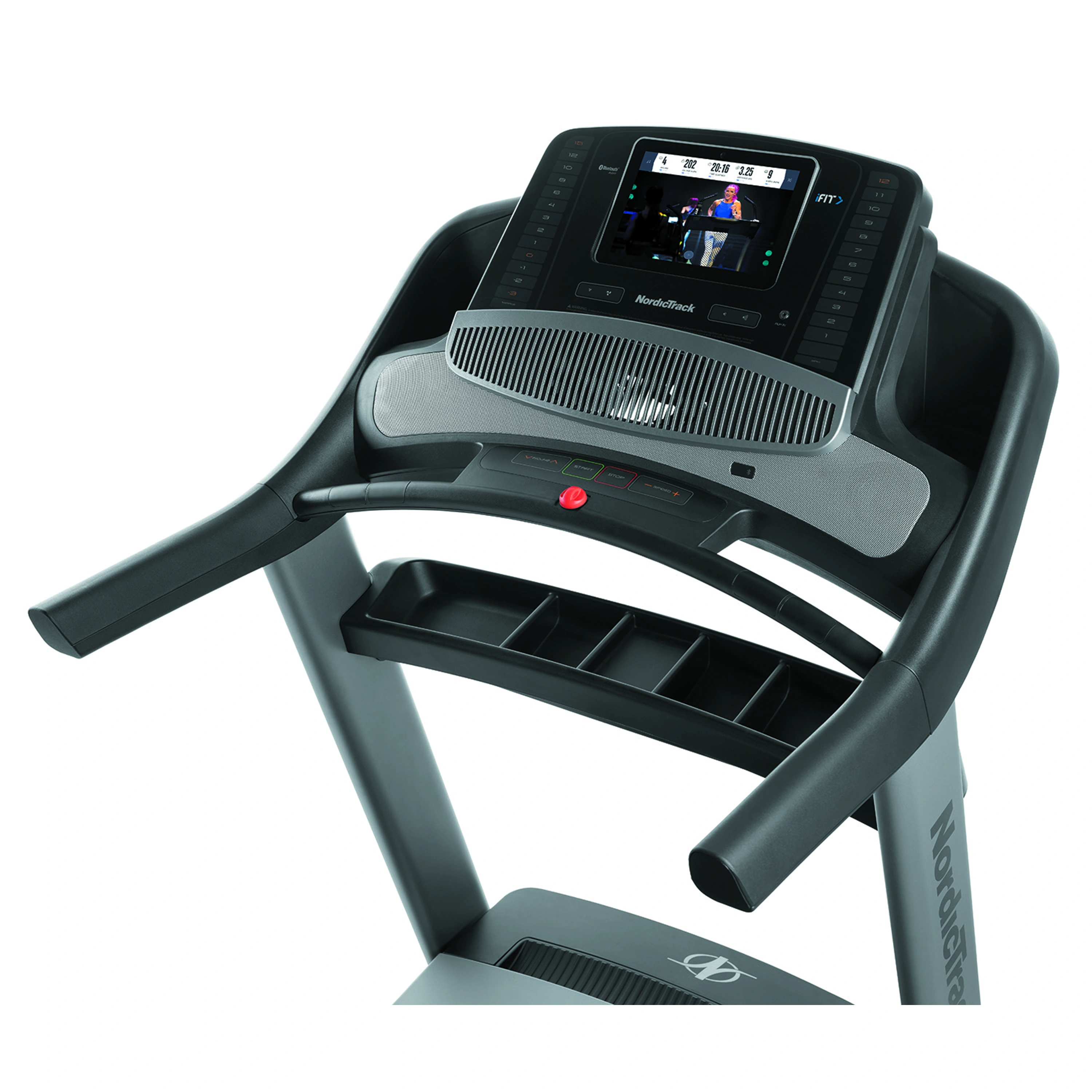 Trénink na běžeckém trenažéru NordicTrack Commercial 1750 budete mít pod kontrolou prostřednictvím tréninkového počítače s 10“ grafickým dotykovým displejem, který přehledně zobrazuje všechny nezbytné informace ohledně času, vzdálenosti, rychlosti, sklonu a spotřeby kalorií. Pro měření tepové frekvence lze poté stroj dovybavit i bluetooth hrudním pásem. Programová nabídka disponuje přednastavenými programy a kompatibilní aplikací iFit, která je zabudovaná přímo v počítačové konzoli. S nepostradatelnou aplikací iFit budete z pohodlí domova schopni cvičit s trenérem, rozšířit si tréninkové plány přes systém Google MAPS nebo se při cvičení prostě pokochat pohádkovými výhledy.