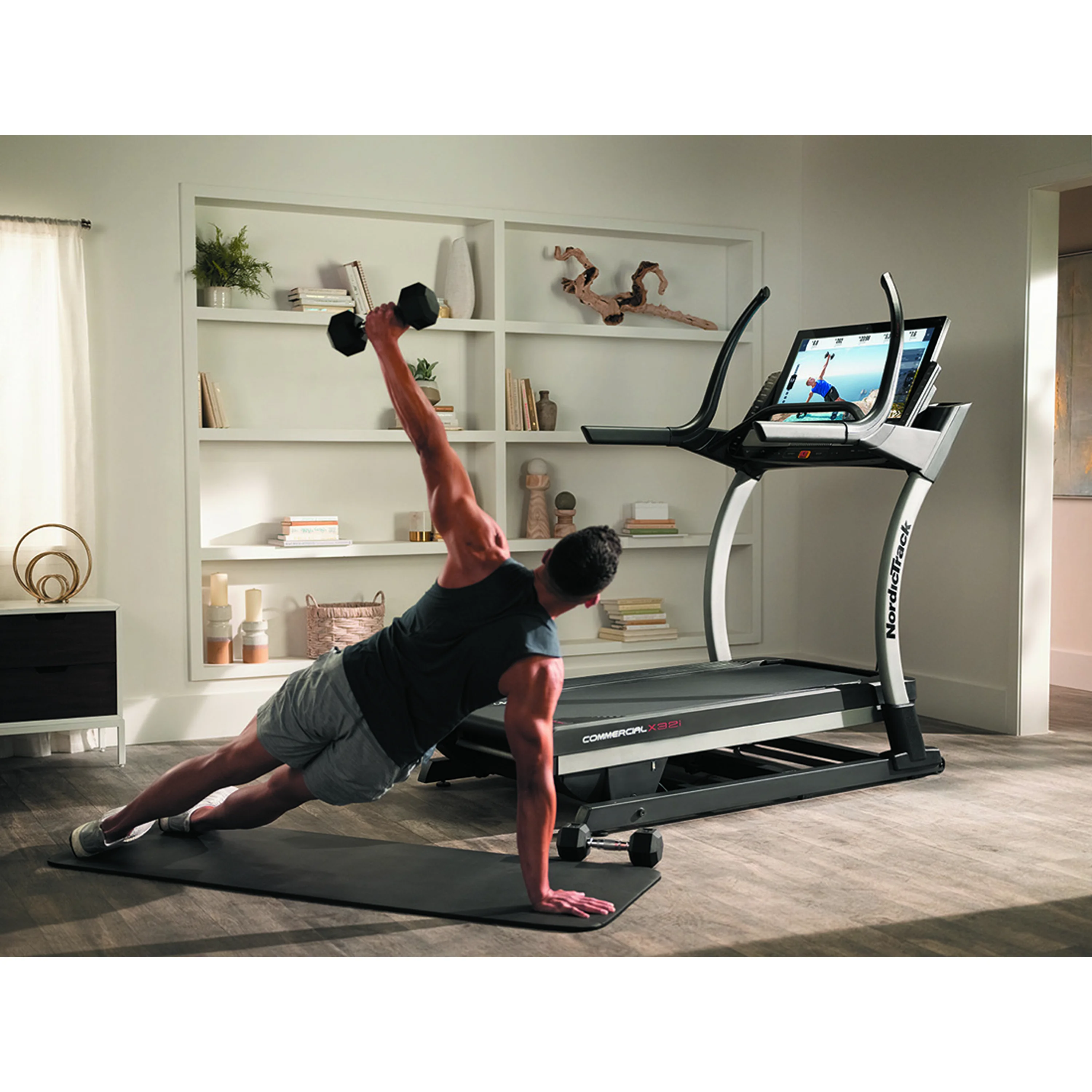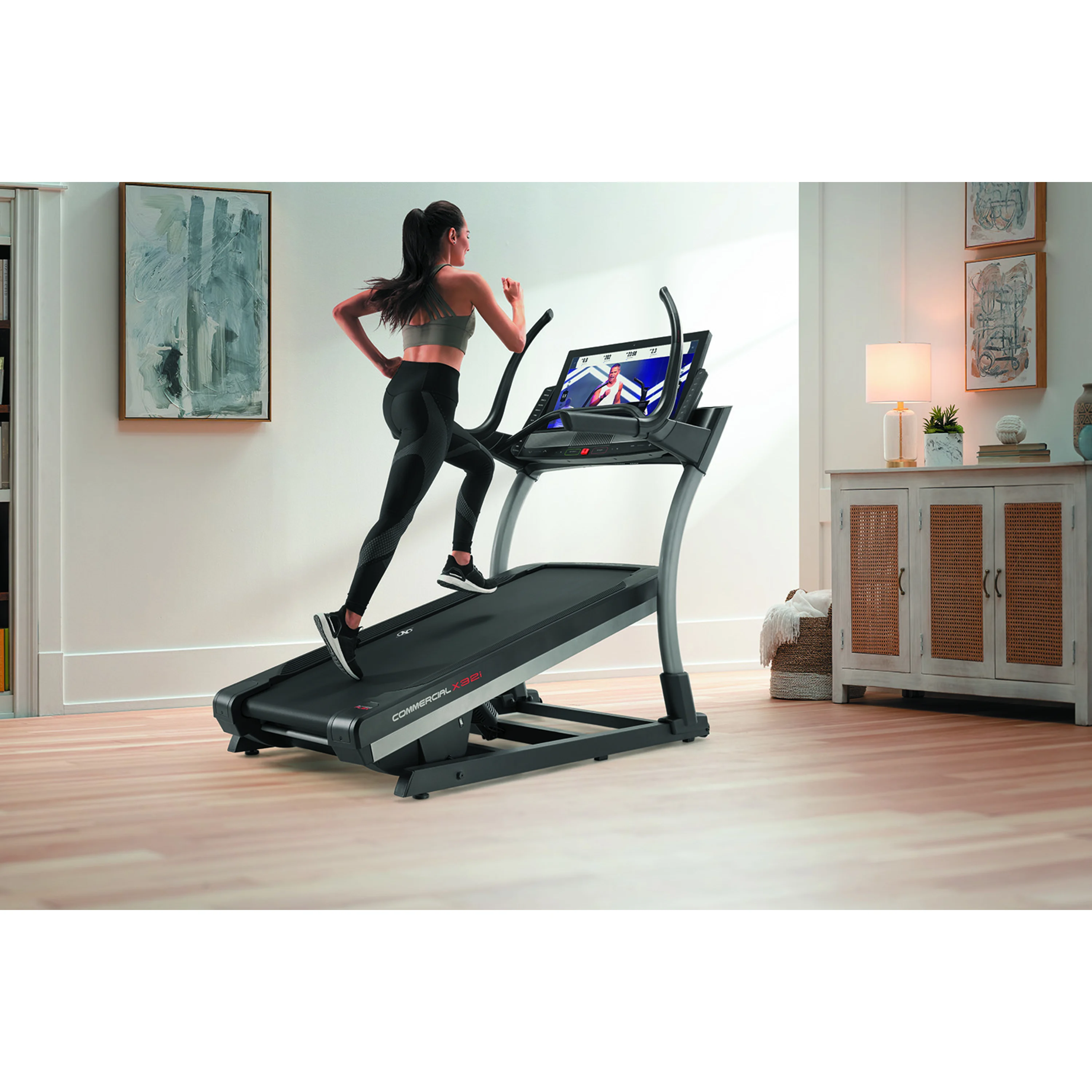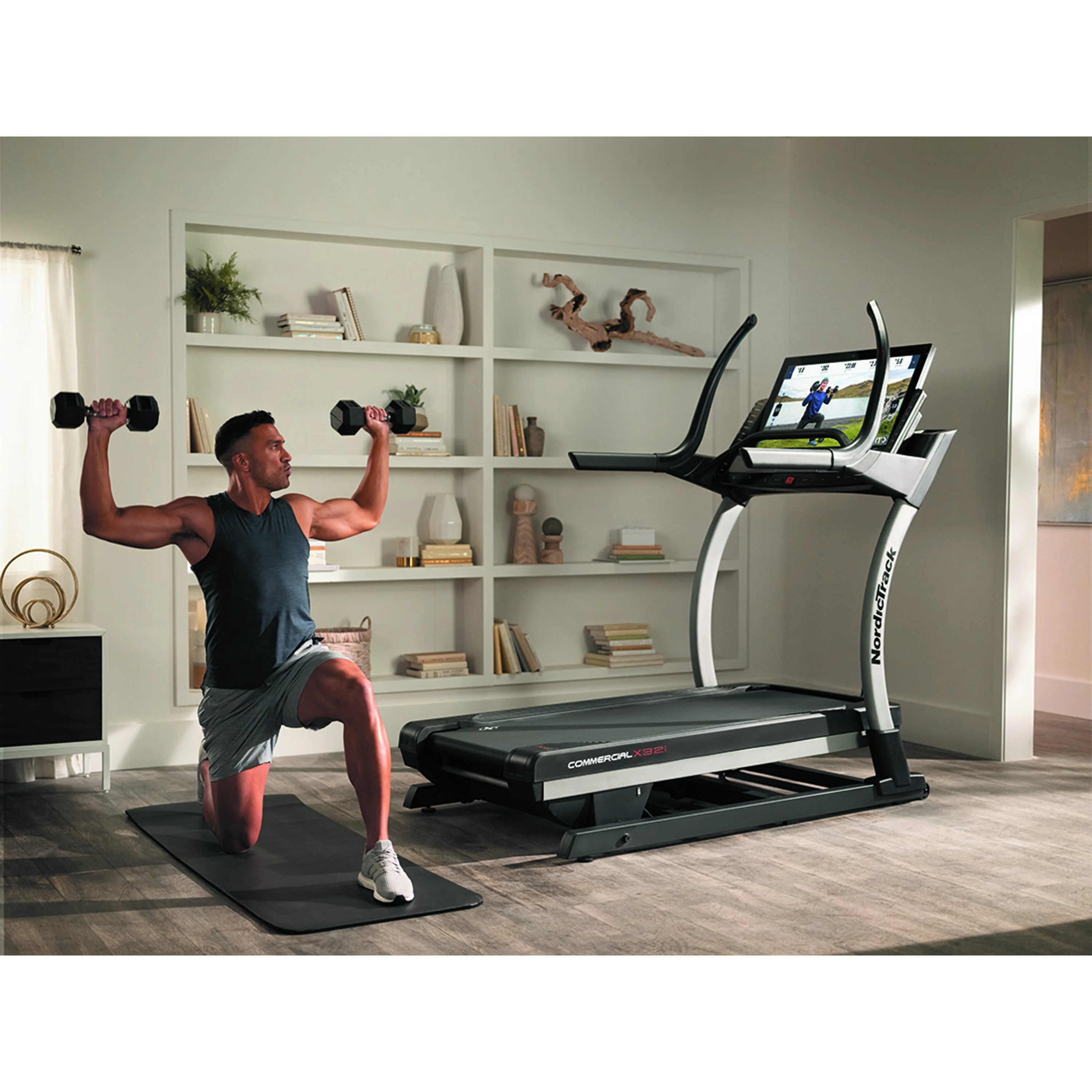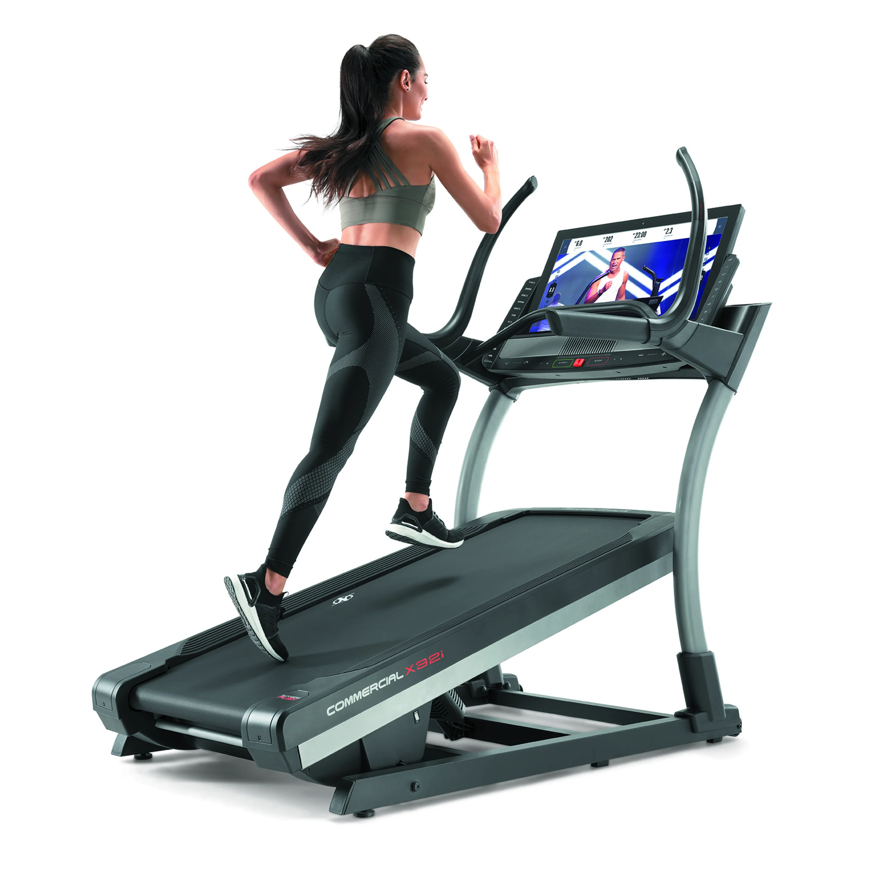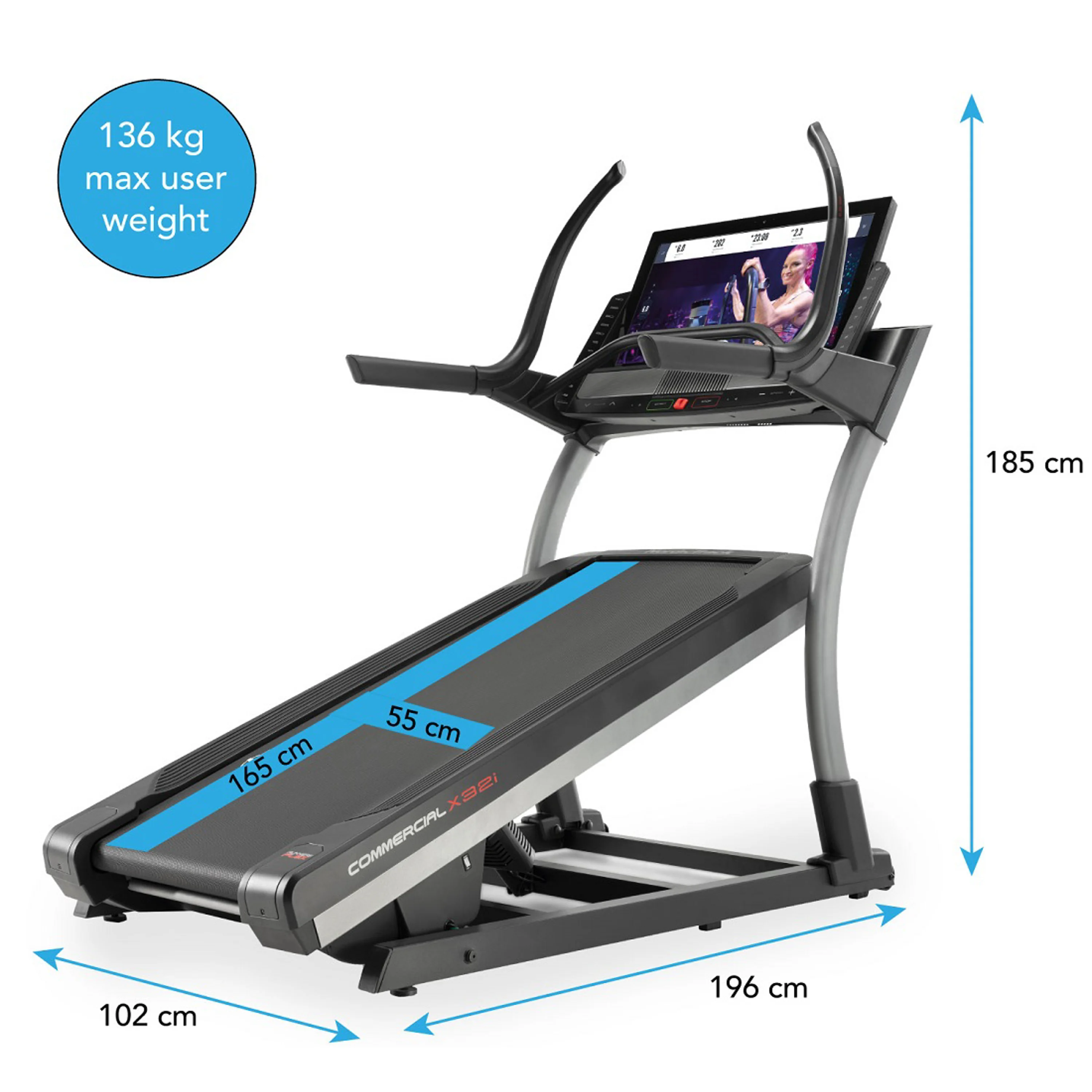 NORDICTRACK Incline Trainer X32i 2021 je běžecký trenažér nejen pro domácí fitness, ale i pro lehce komerční provozy. Bude vhodný pro pravidelný trénink začínajících sportovců, pokročilejších běžců, ale i pro vášnivé sportovce. Stroj poskytuje kombinaci kvalitní mechaniky a masivního rámu s nosností až do 136 kg váhy cvičence. Motor s trvalým výkonem 4,25 HP (3,17 kW), běžecká plocha o velikosti 55 x 165 cm, elektronicky nastavitelná rychlost do max 22 km/h stejně jako elektornicky regulovaný sklon v rozmezí od -6 % + 40 %, nabídne každému maximální komfort při běhání. Rychlost i sklon plochy můžete nastavit krokově nebo už přednastavenými tlačítky na panelu PC.