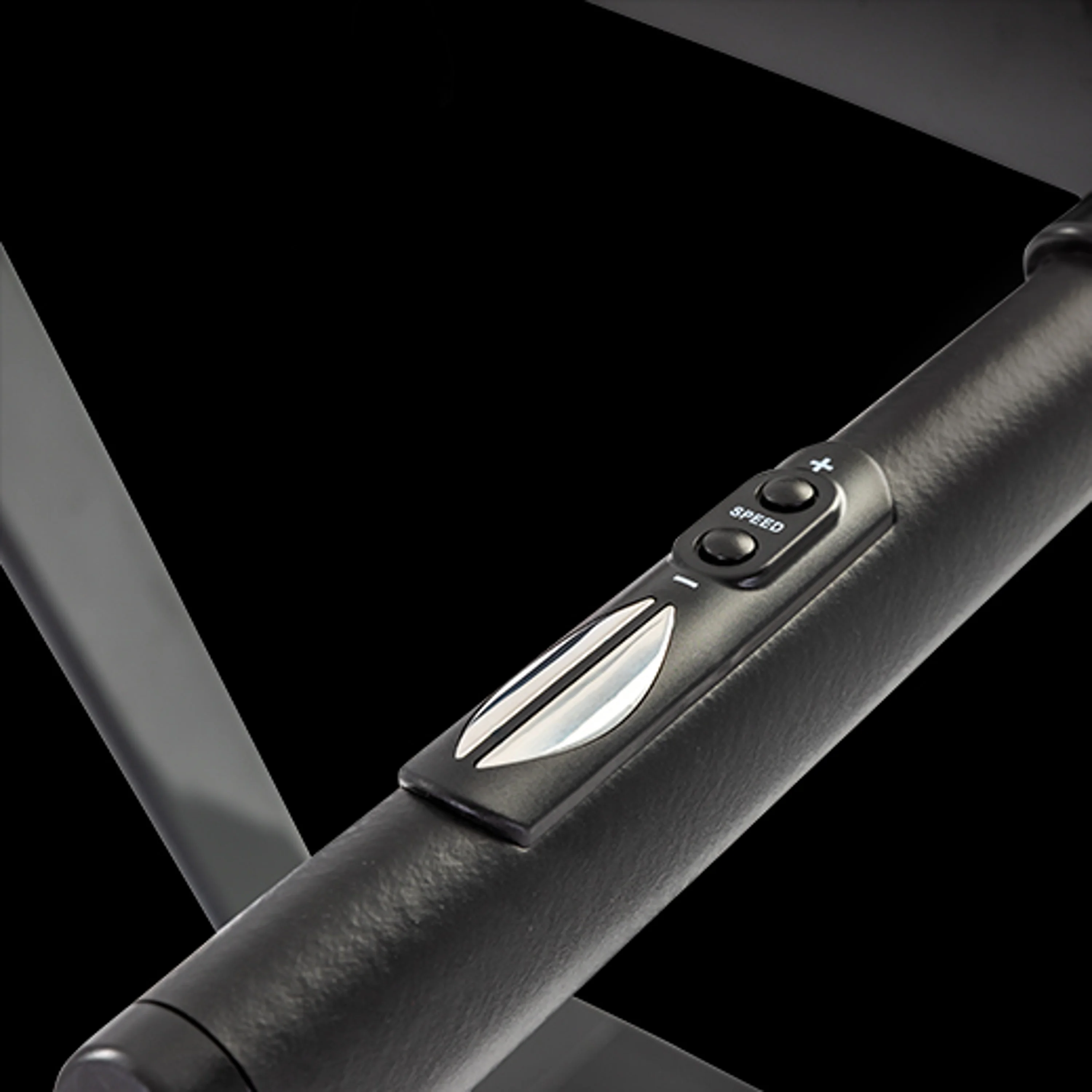 Pro úspora místa je možné stroj velmi jednoduše složit do úsporné svislé polohy a uklidit např. za skříň. Nemusíte tak mít obavy, že by vám stroj zabíral moc místa v případě, kdy zrovna neběháte. Pro jednoduché přemisťování po místnosti je pás vybaven transportními kolečky. Vyrovnávače nerovností zajistí stabilitu stroje na každém povrchu.