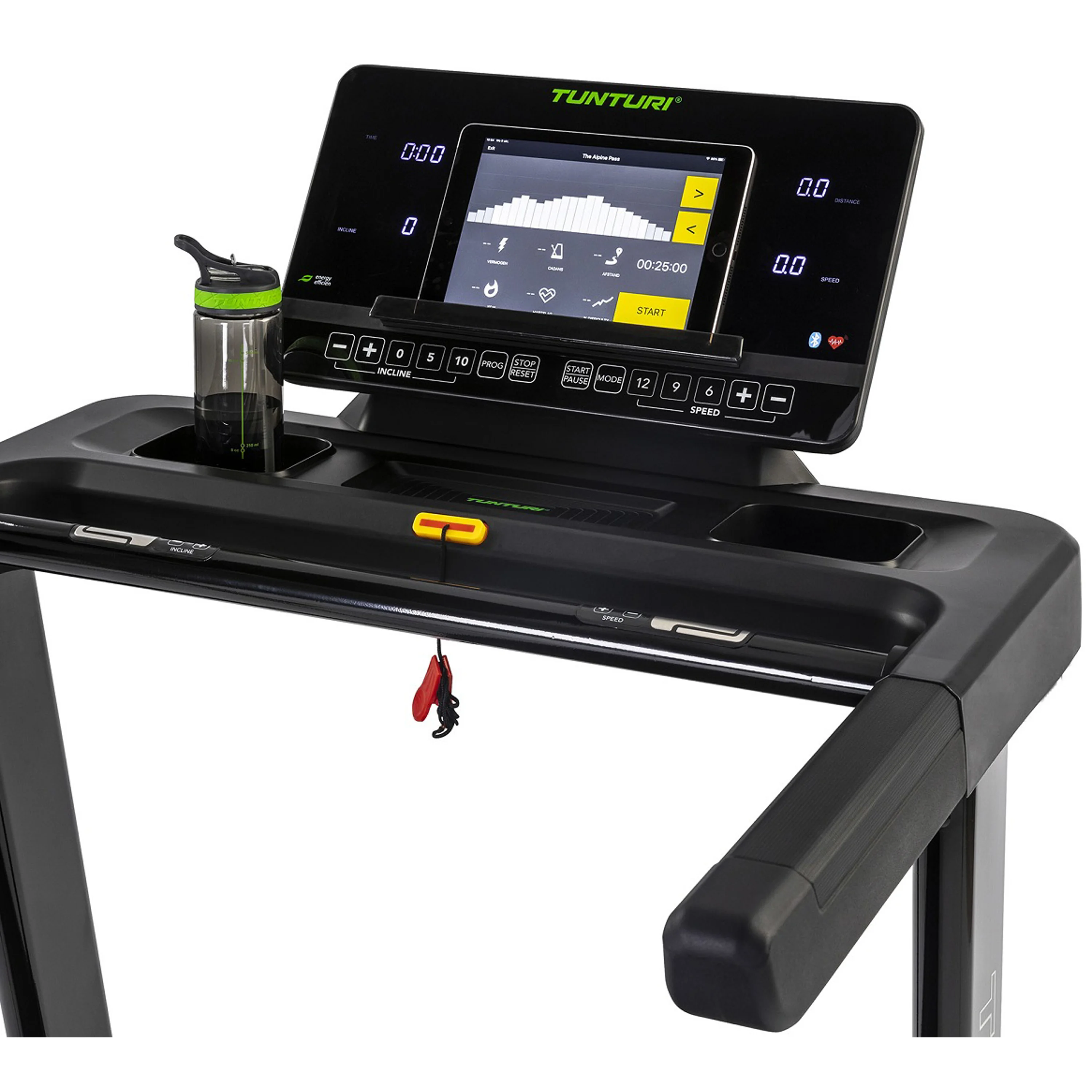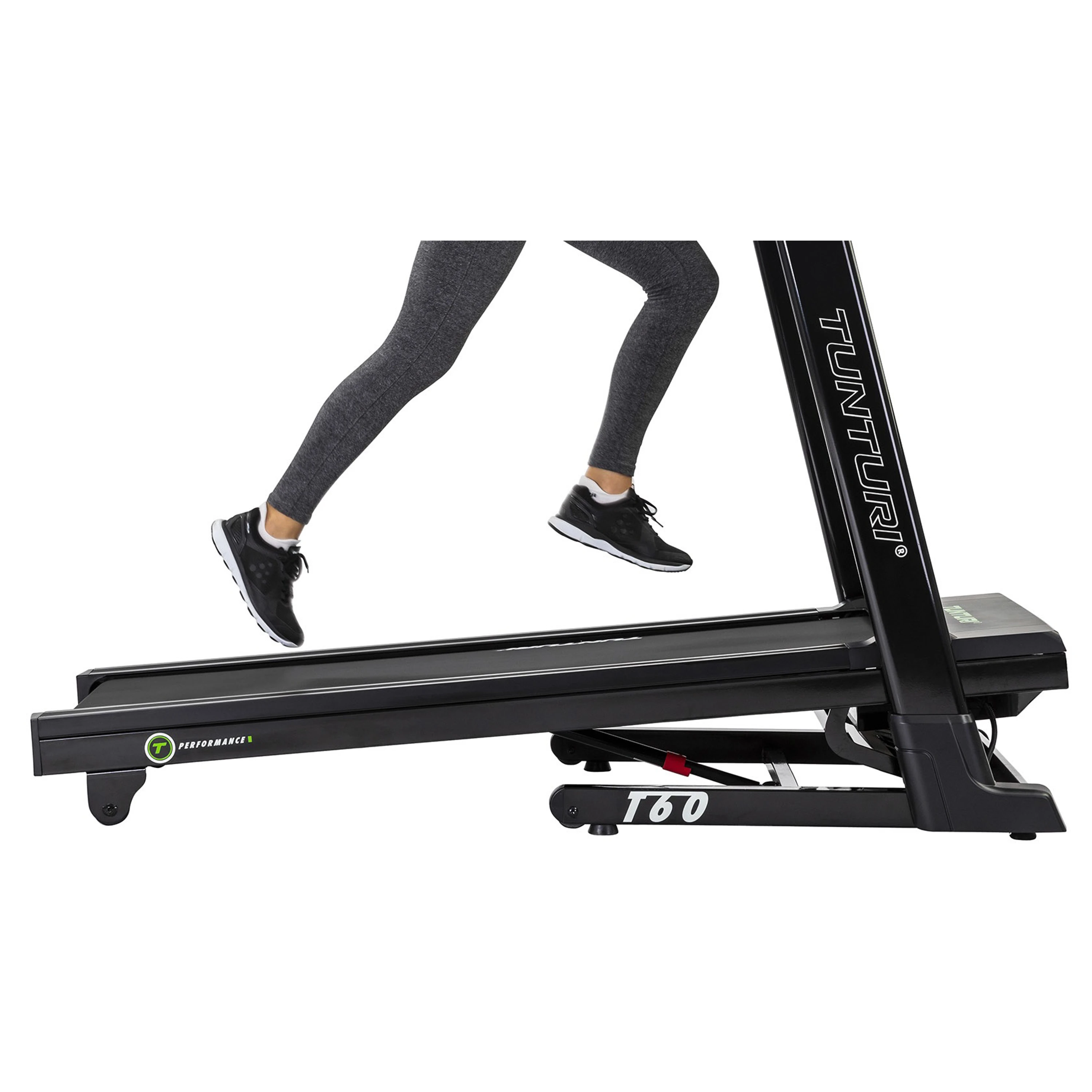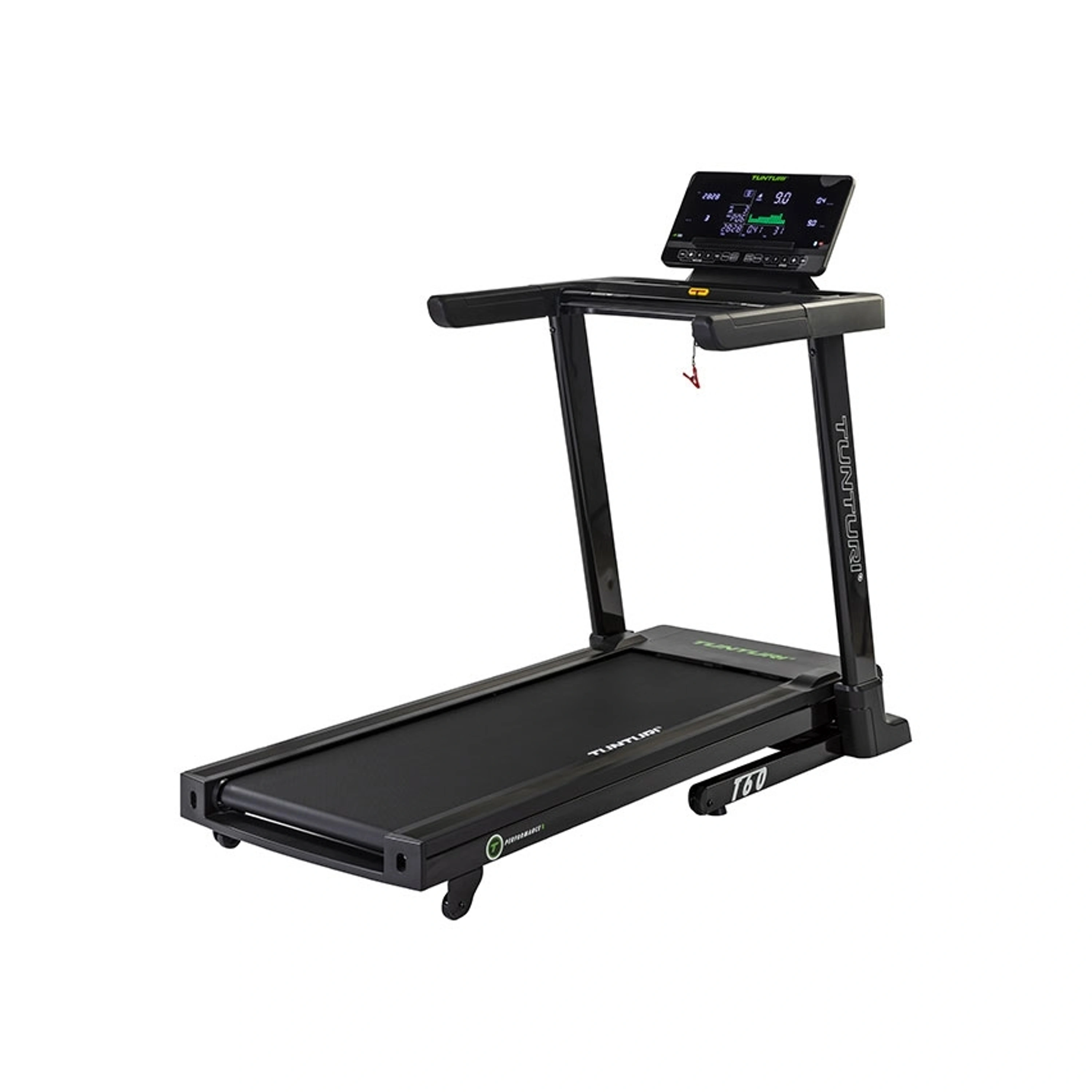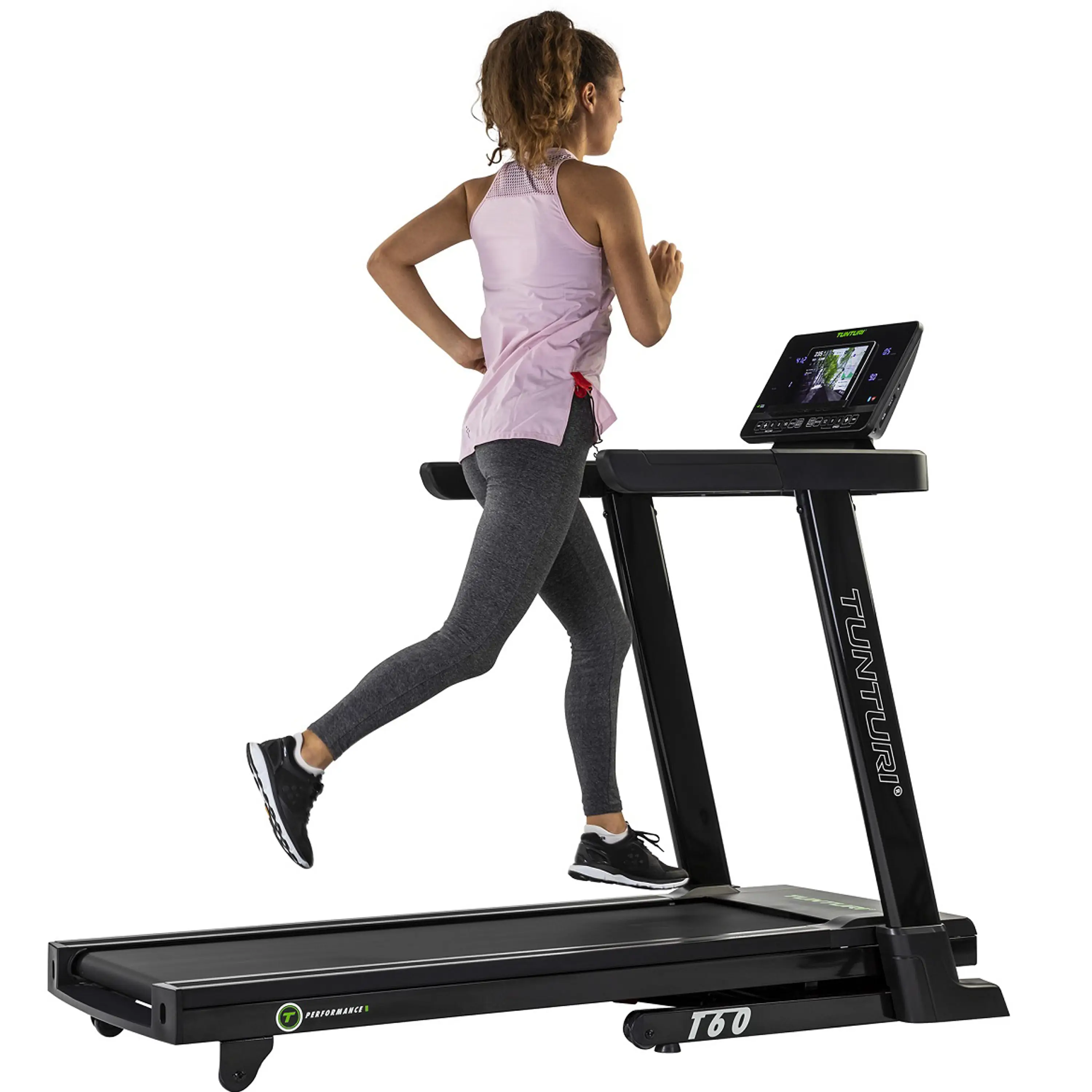 TUNTURI T60 Performance kvalitní běžecký pás od světoznámého výrobce domácích fitness strojů. Silný motor má trvalý výkon 3,67 kW (5 HP) a vysoký záběrový moment, ideální pro milovníky velké rychlosti. Motor je izolován velkým krytem pro eliminaci vibrací během běhu, intuitivní systém chlazení zaručí dlouhodobý provoz bez nebezpečí přehřátí. Rychlost v rozmezí 0,8-20 km/hod a je elektronicky nastavitelná, stejně jako sklon běžecké plochy, a to až do 15 %. Běžecký trenažér tak jistě uspokojí jak začínající běžce, tak i zkušené sportovce s vysokým nárokem na pohyb. Nosnost stroje 135 kg a běžecká plocha s velkorysým rozměrem 140 x 50 cm a celková hmotnost stroje 87 kg zaručí dlouhou životnost při pravidelném používání v domácích podmínkách.