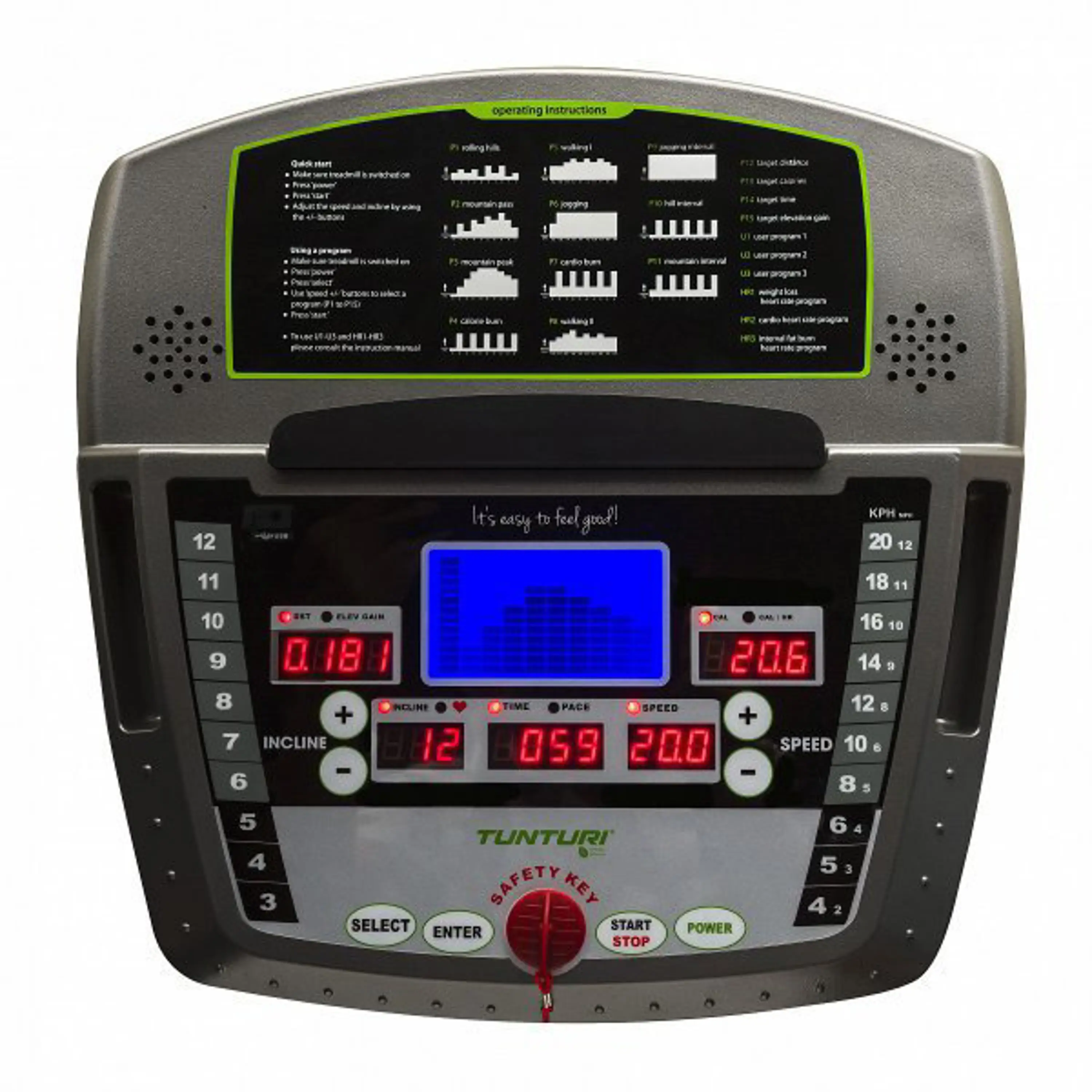 - přímé klávesy k ovládání rychlosti (2,3,4 km/h), sklonu (3,4,5 %)