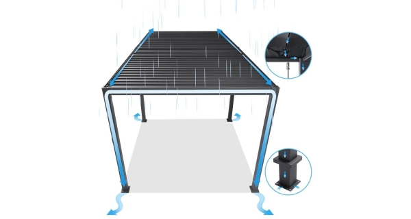 Tato volně stojící pergola promění vaši terasu nebo zahradu na moderní odpočinkovou zónu, vhodnou pro relaxaci i společenská setkání. Nosnost střechy je až 50 kg, tedy cca 30-40 cm sněhu.