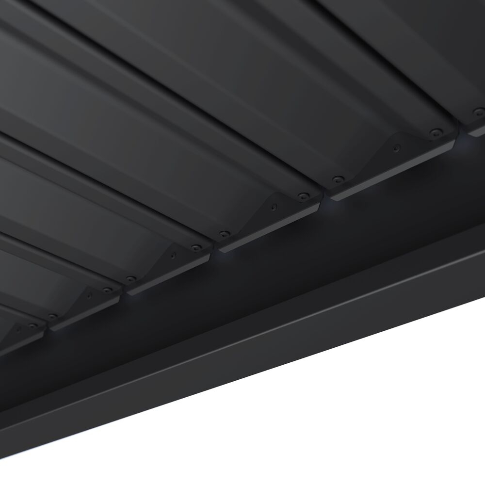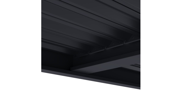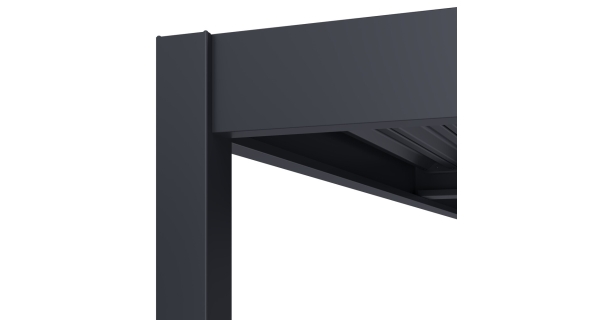 Velmi pevná a stabilní konstrukce v antracitové barvě a v matné povrchové úpravě se hodí do každého prostoru, není zapotřebí vrtat do stěny. Sloupky a trámy jsou vyrobené z vysoce kvalitního hliníku, který je ošetřen práškovou barvou. Lamely jsou z pozinkované oceli, která byla následně ošetřena práškovou barvou, což zaručuje odolnost vůči povětrnostním vlivům.