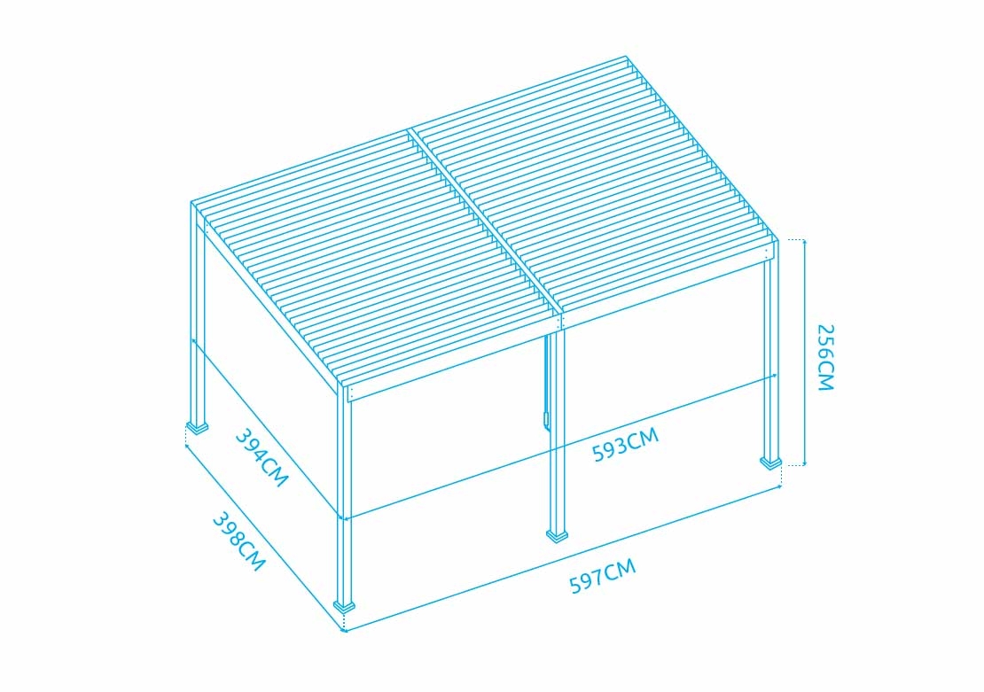 Lamely jsou rozděleny na 2 zóny a každou tuto část je možné ovládat zvlášť. 50 nastavitelných otočných lamel vás ochrání nejen před sluncem, ale i před deštěm. Lamely lze otáčet od 0°, kdy docílíte úplně uzavřené střechy až do 135°, díky čemuž získáte skvělou mobilitu a možnost zastínit slunce z jakékoliv strany.