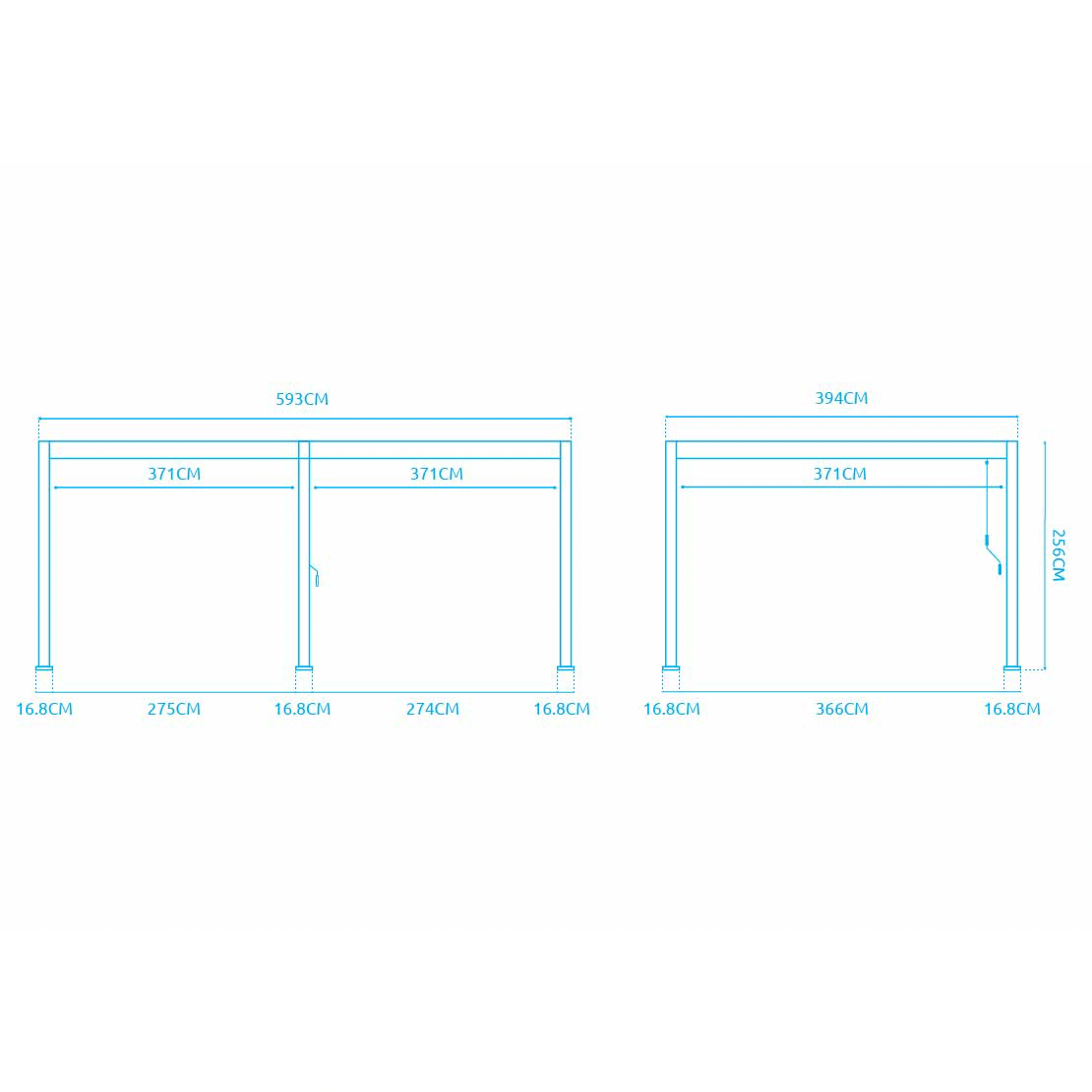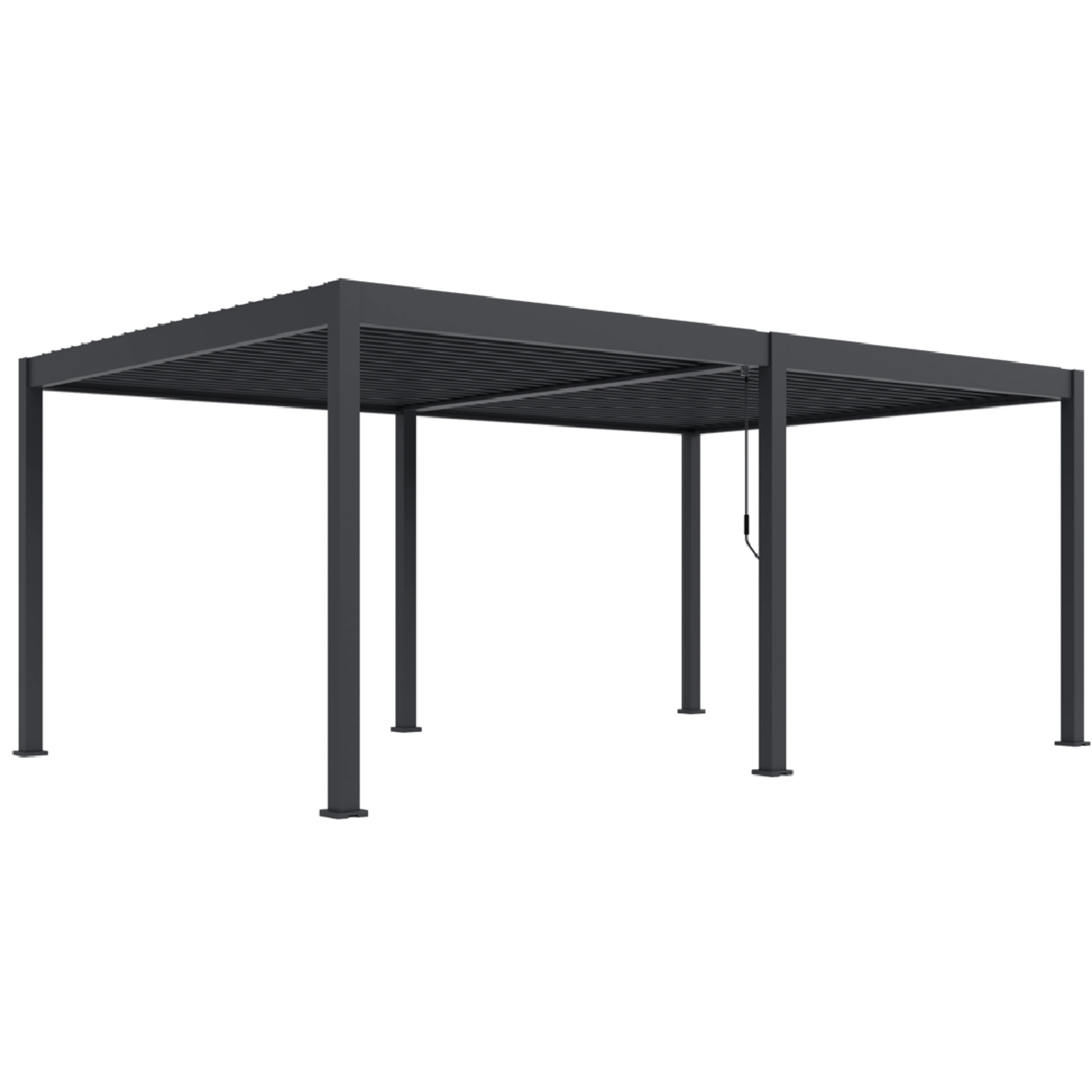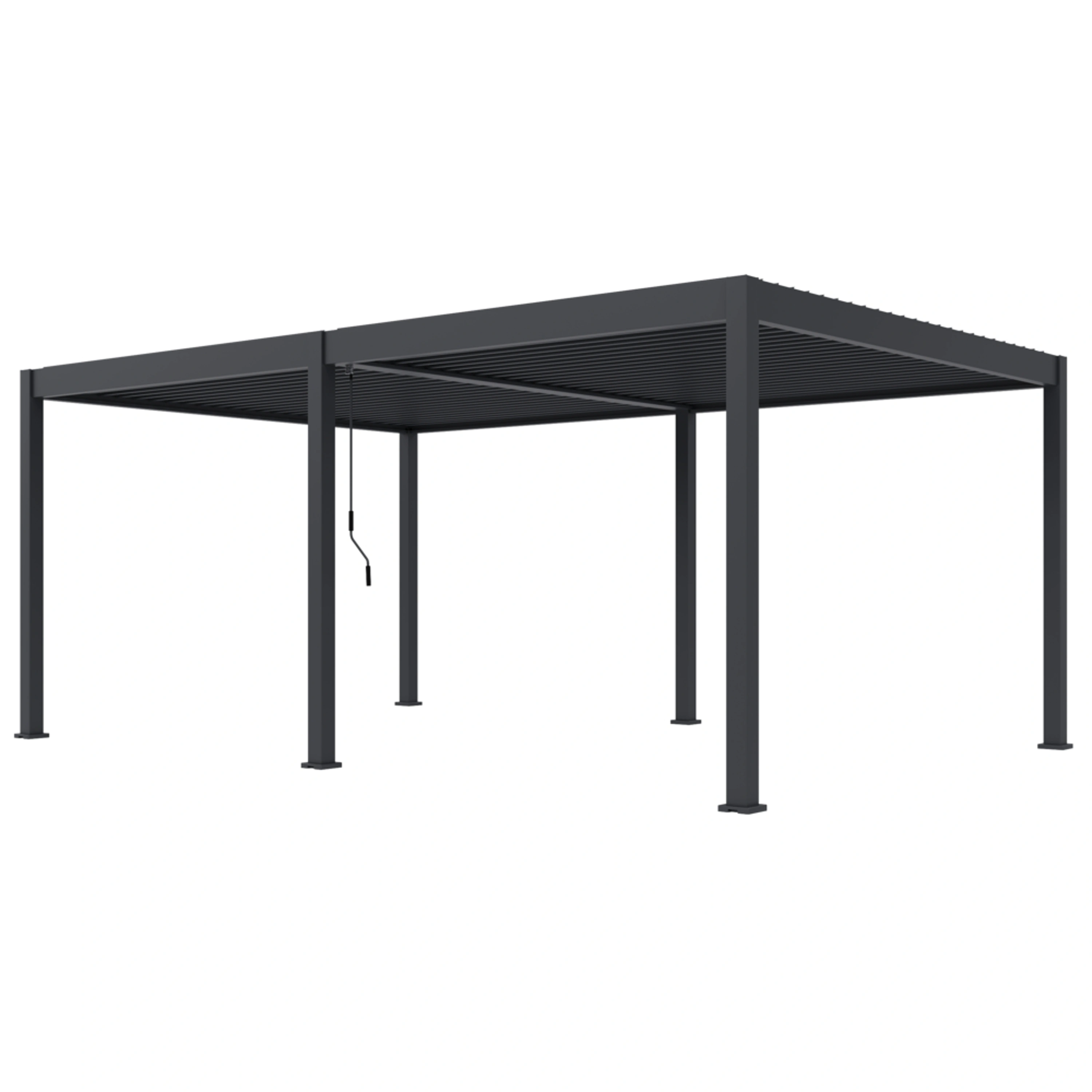 Tato volně stojící pergola promění vaši terasu nebo zahradu na moderní odpočinkovou zónu, vhodnou pro relaxaci i společenská setkání. Nosnost střechy je až 50 kg, tedy cca 30-40 cm sněhu.
