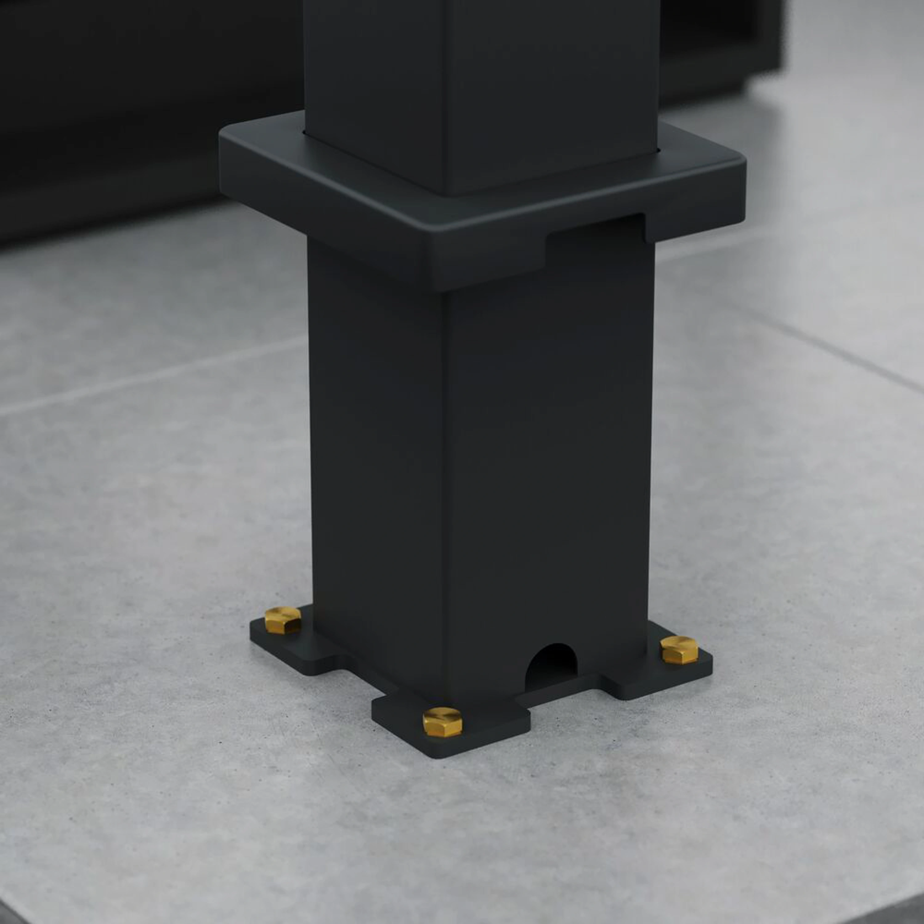 Robustní sloupek má rozměry 116x116 mm, při instalaci je zapotřebí počítat s patkou sloupku o rozměrech 160x160 mm. Patka je z 8 mm silné oceli a je navíc zakryta hliníkovým krytem (165x165 mm) s integrovaným drenážním systémem. Vyvýšený hliníkový profil s přidanou horní lištou ukrývá lamely tak, že z bočního pohledu nejsou viditelné a jsou v jedné linii s profilem.