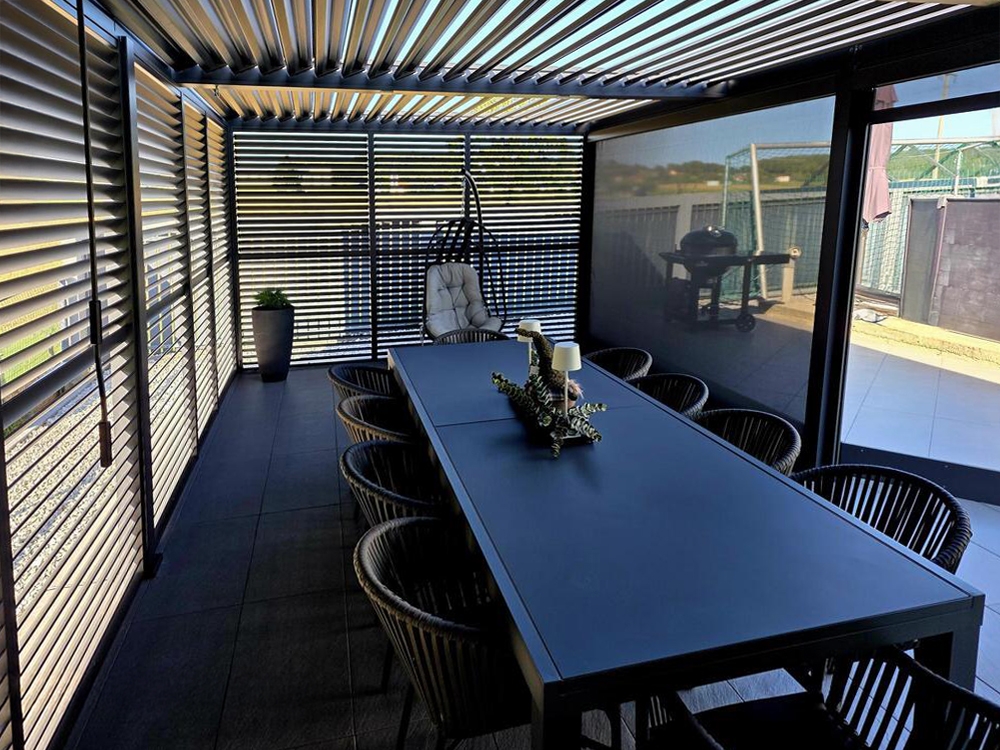 Díky inovativnímu designu lamel, které lze naklápět a regulovat, snadno ovládáte světlo a proudění vzduchu – v letních vedrech ochladí prostor podle vašich potřeb, v chladnějších dnech poskytne účinnou ochranu před deštěm a větrem.
