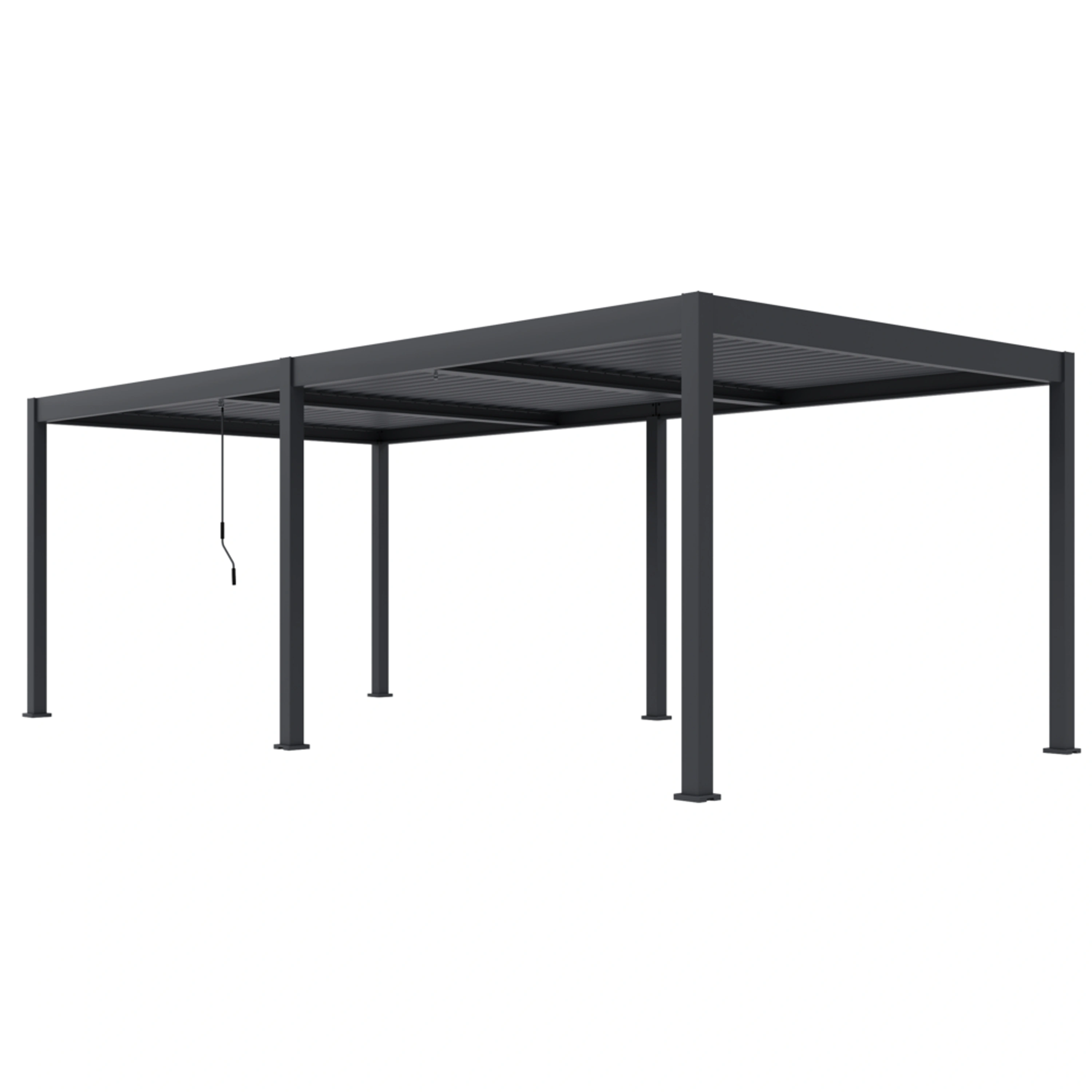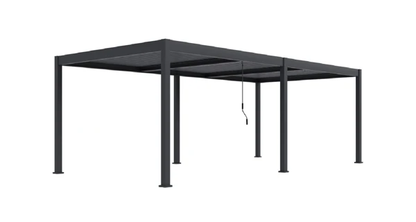 Tato volně stojící pergola promění vaši terasu nebo zahradu na moderní odpočinkovou zónu, vhodnou pro relaxaci i společenská setkání. Nosnost střechy je až 50 kg, tedy cca 30-40 cm sněhu.