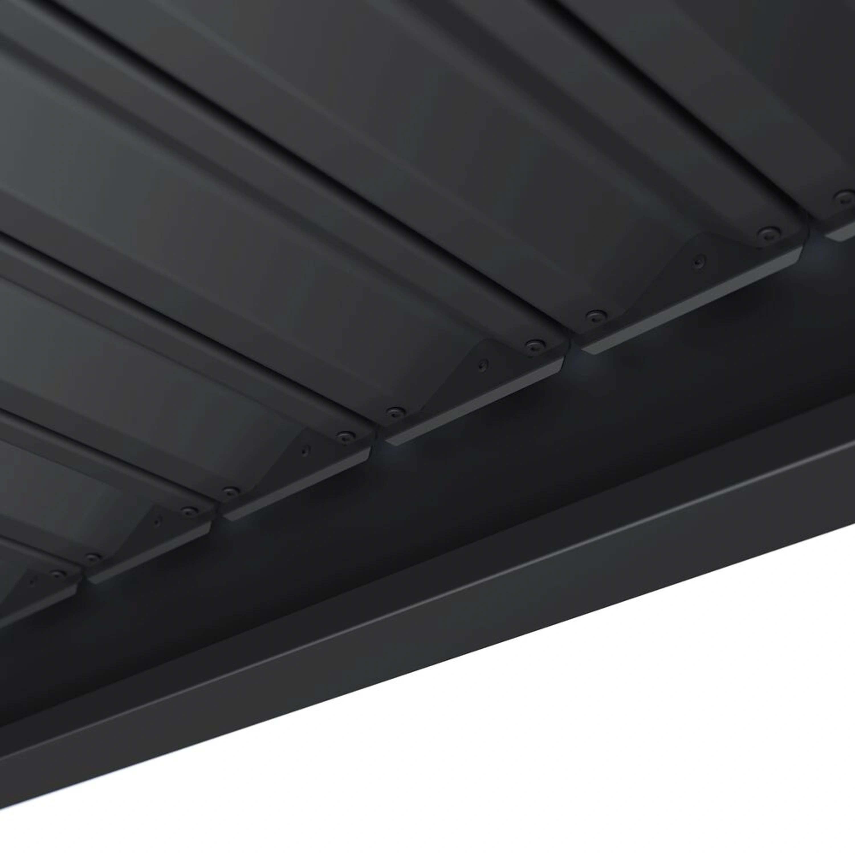 Velmi pevná a stabilní konstrukce v antracitové barvě a v matné povrchové úpravě se hodí do každého prostoru, není zapotřebí vrtat do stěny. Sloupky a trámy jsou vyrobené z vysoce kvalitního hliníku, který je ošetřen práškovou barvou. Lamely jsou z pozinkované oceli, která byla následně ošetřena práškovou barvou, což zaručuje odolnost vůči povětrnostním vlivům.