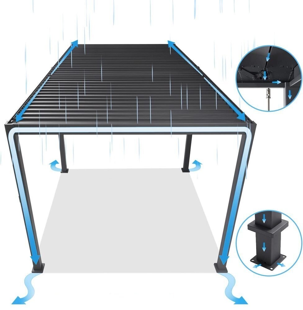 23 nastavitelných otočných lamel vás ochrání nejen před sluncem, ale i před deštěm. Lamely lze otáčet od 0°, kdy docílíte úplně uzavřené střechy až do 135°, díky čemuž získáte skvělou mobilitu a možnost zastínit slunce z jakékoliv strany.