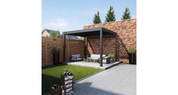 Moderní bioklimatická pergola INTRO NEO z hliníku a oceli v rozměru 3,6x3 metry, navržená pro maximální komfort a elegantní vzhled.