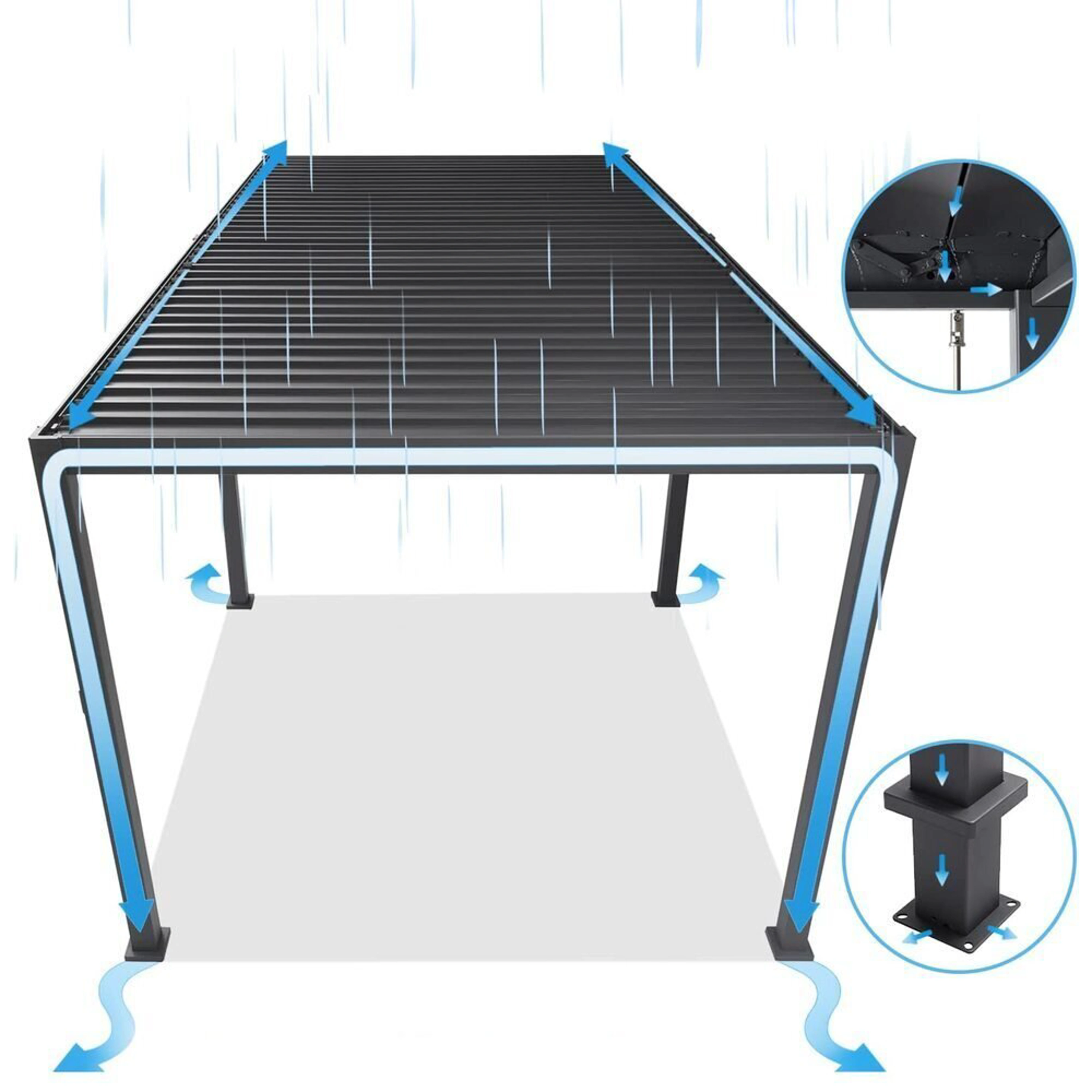 Ke svodu vody dochází unikátním drenážním systémem přímo uvnitř konstrukce. Lamely jsou schopné odvést opravdu velké množství vody až 17 l/ m² za hodinu. V zimních měsících je zapotřebí ponechat lamely ve svislé pozici. I přesto jsou lamely schopné unést 10-15 centimetrovou vrstvu sněhu, což představuje zátěž přibližně 30 kg/ m². Toto zatížení však nemůže být dlouhodobé.