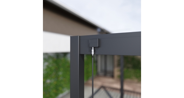 Velmi pevná a stabilní konstrukce v antracitové barvě a v matné povrchové úpravě se hodí do každého prostoru, není zapotřebí vrtat do stěny. Pergola je vyrobena z vysoce kvalitního hliníku, který je ošetřen práškovou barvou, což zaručuje odolnost vůči povětrnostním vlivům.