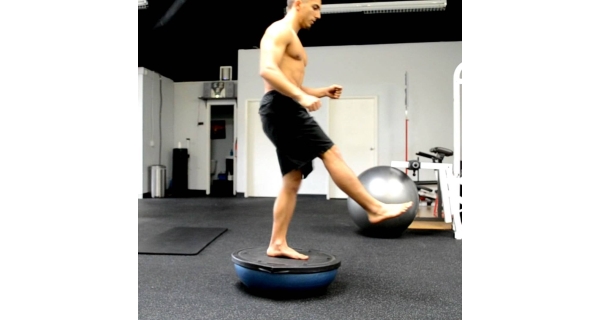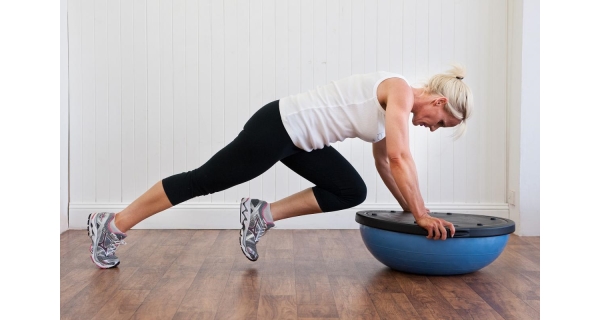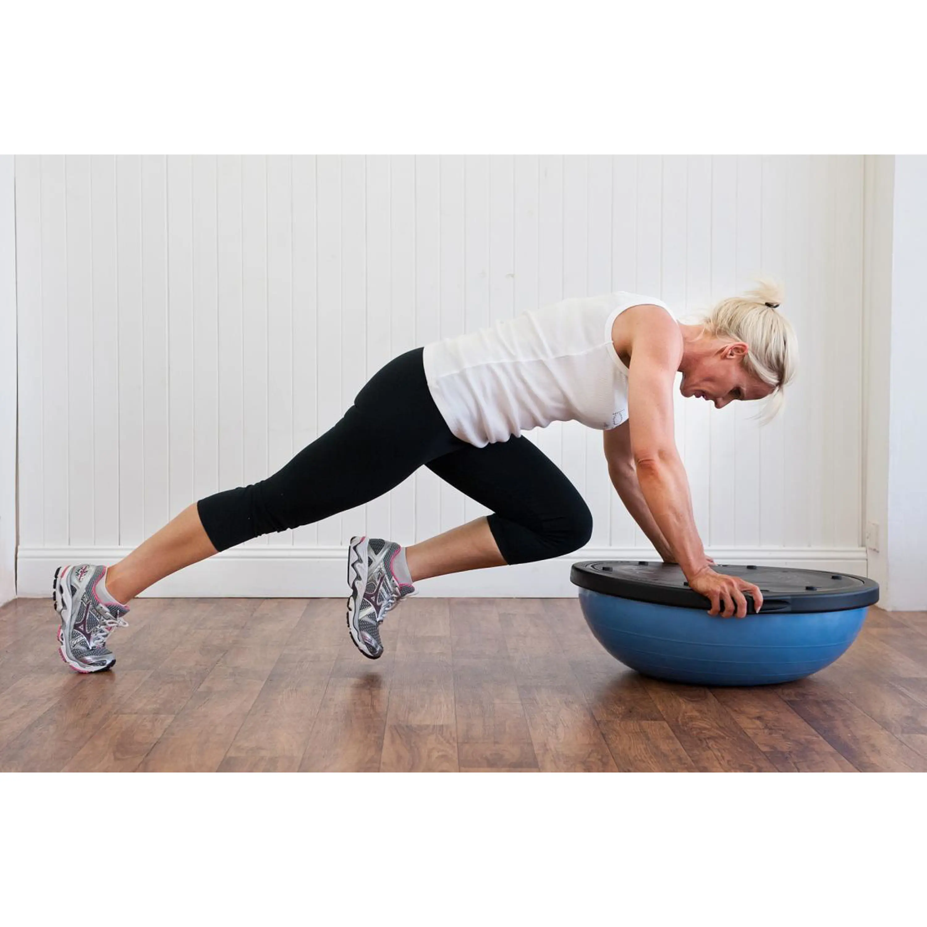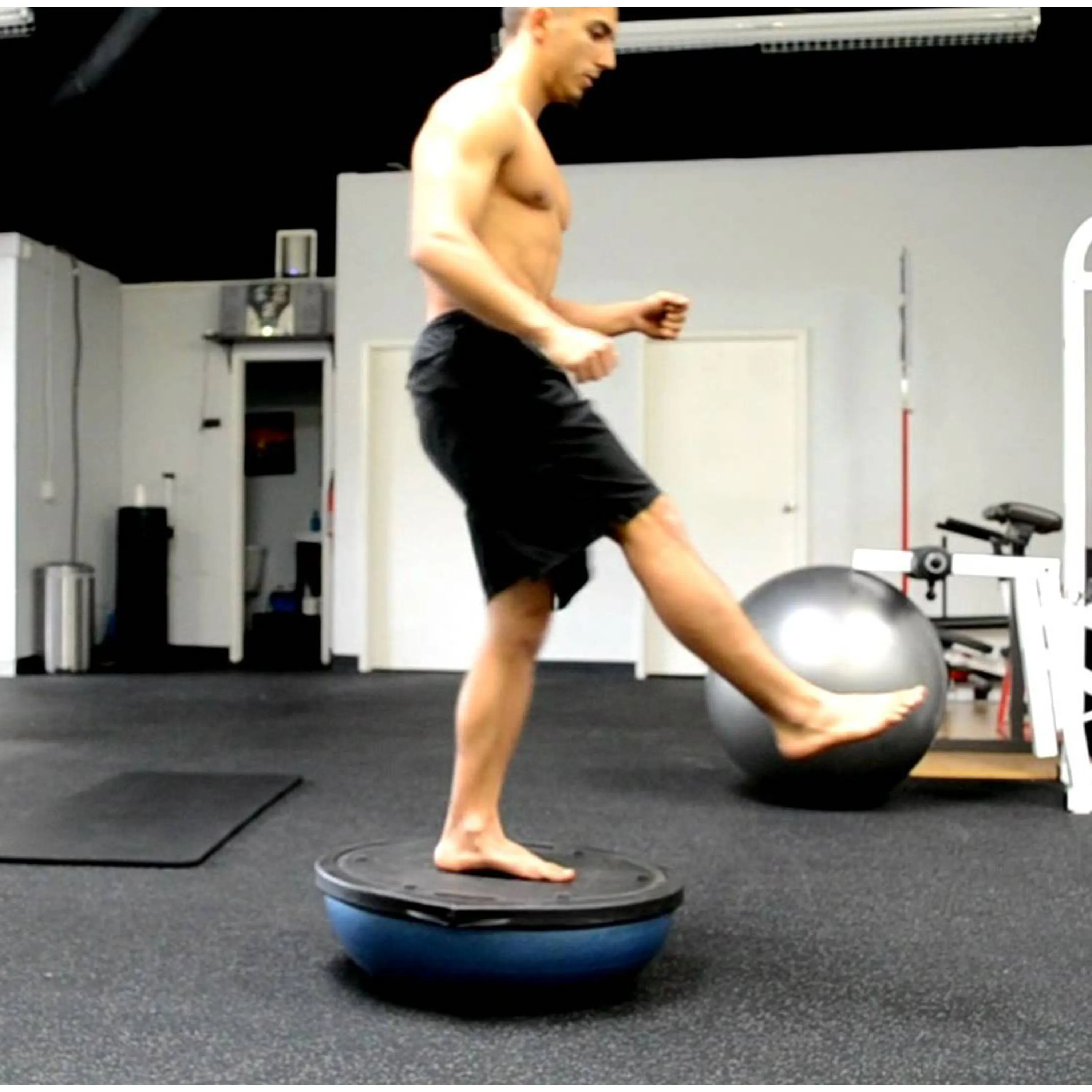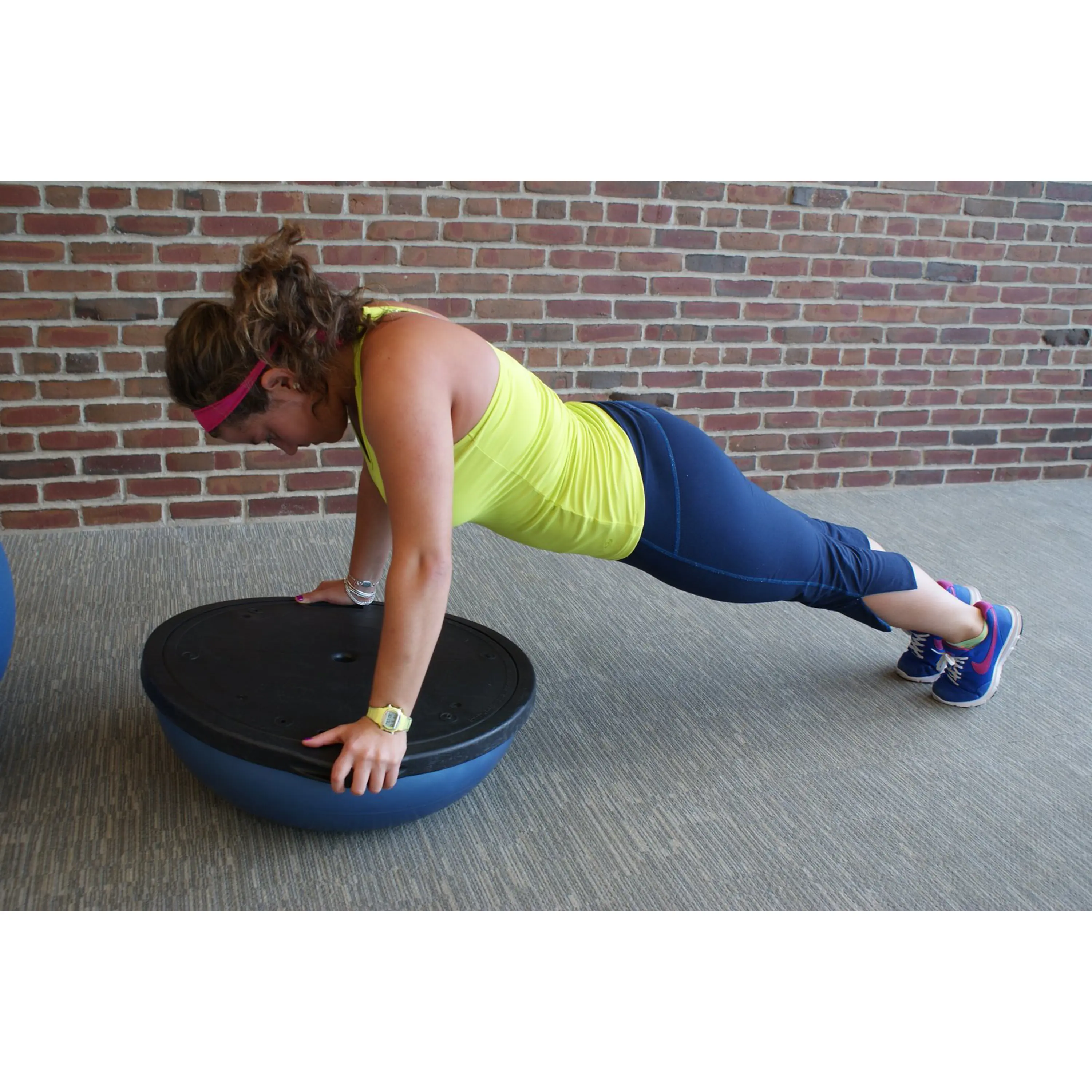Nafukovací balanční podložka HALF BALL s gumovými expandery. Slouží k procvičení spodních i horních svalových partií. Obtížnost cvičení je závislá na nahuštění. Pumpa je součástí výrobku.