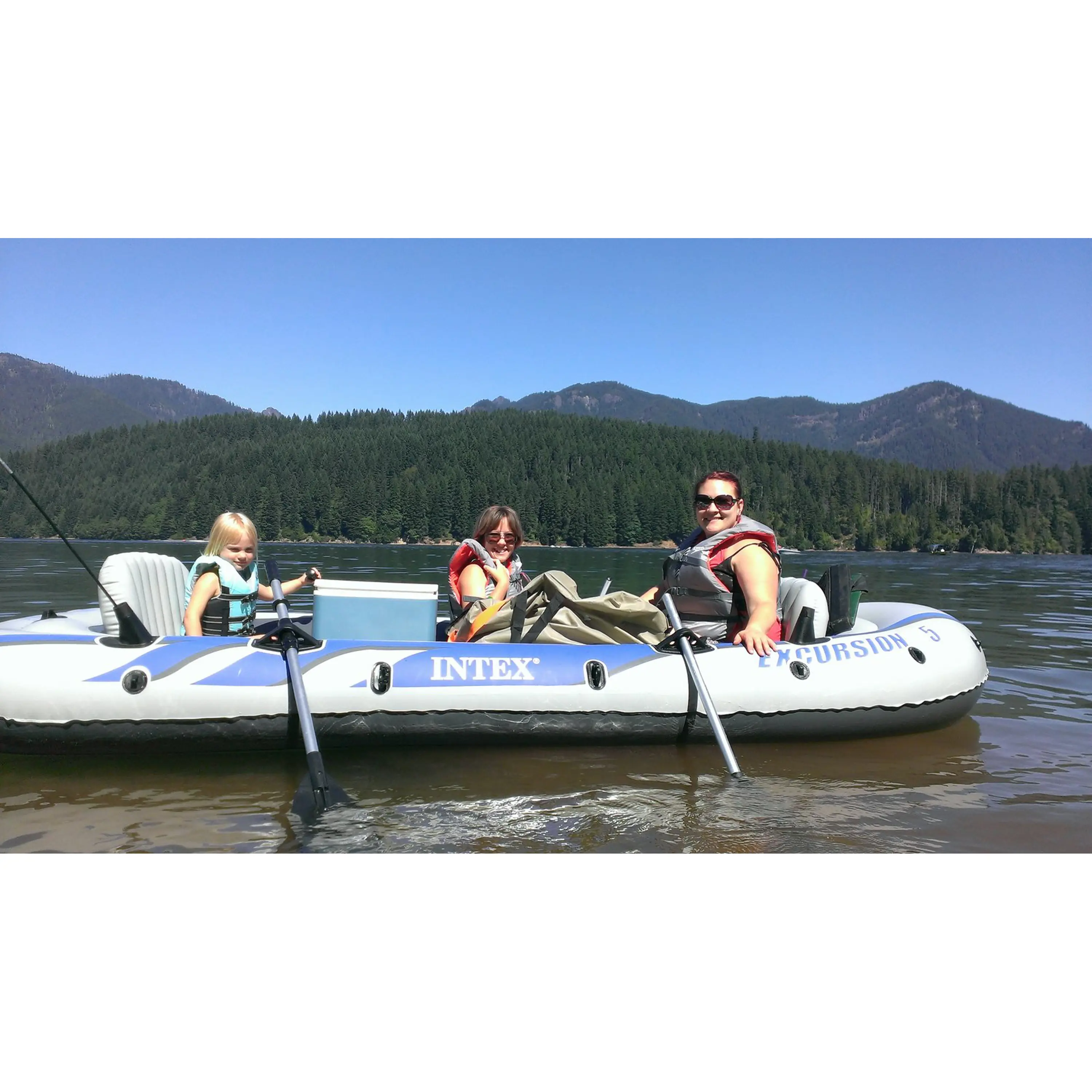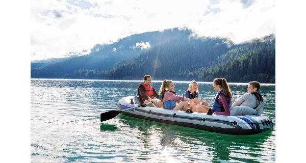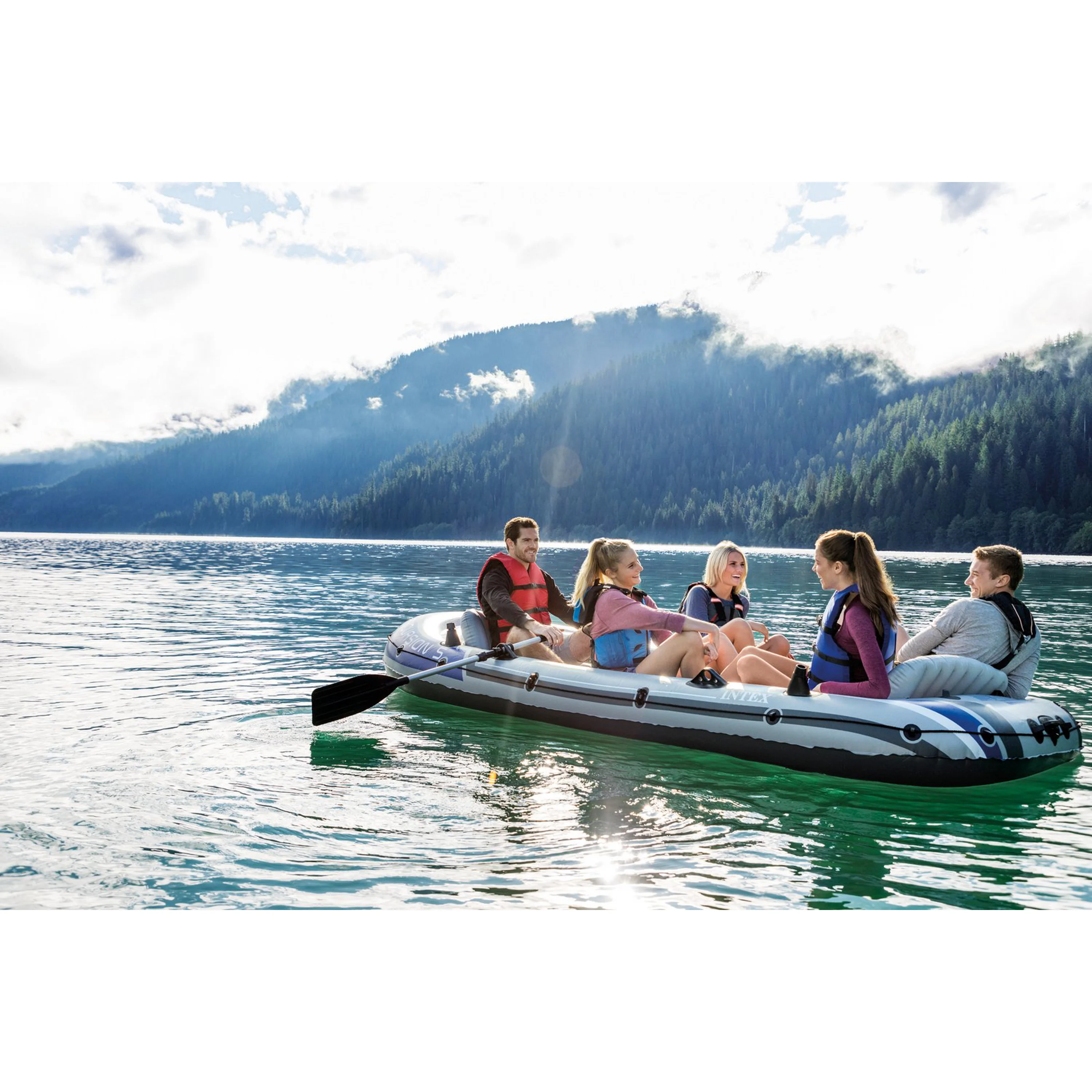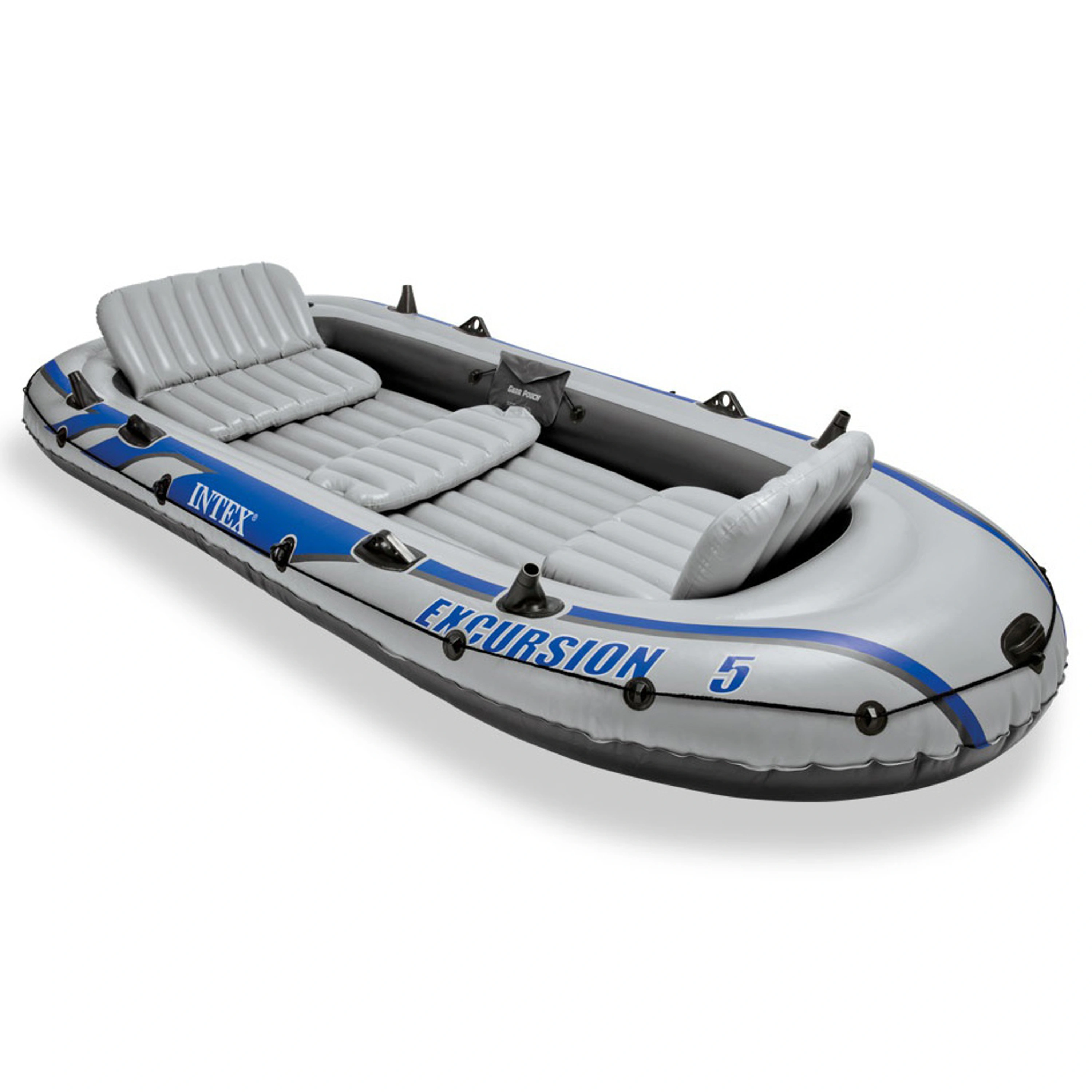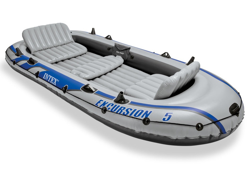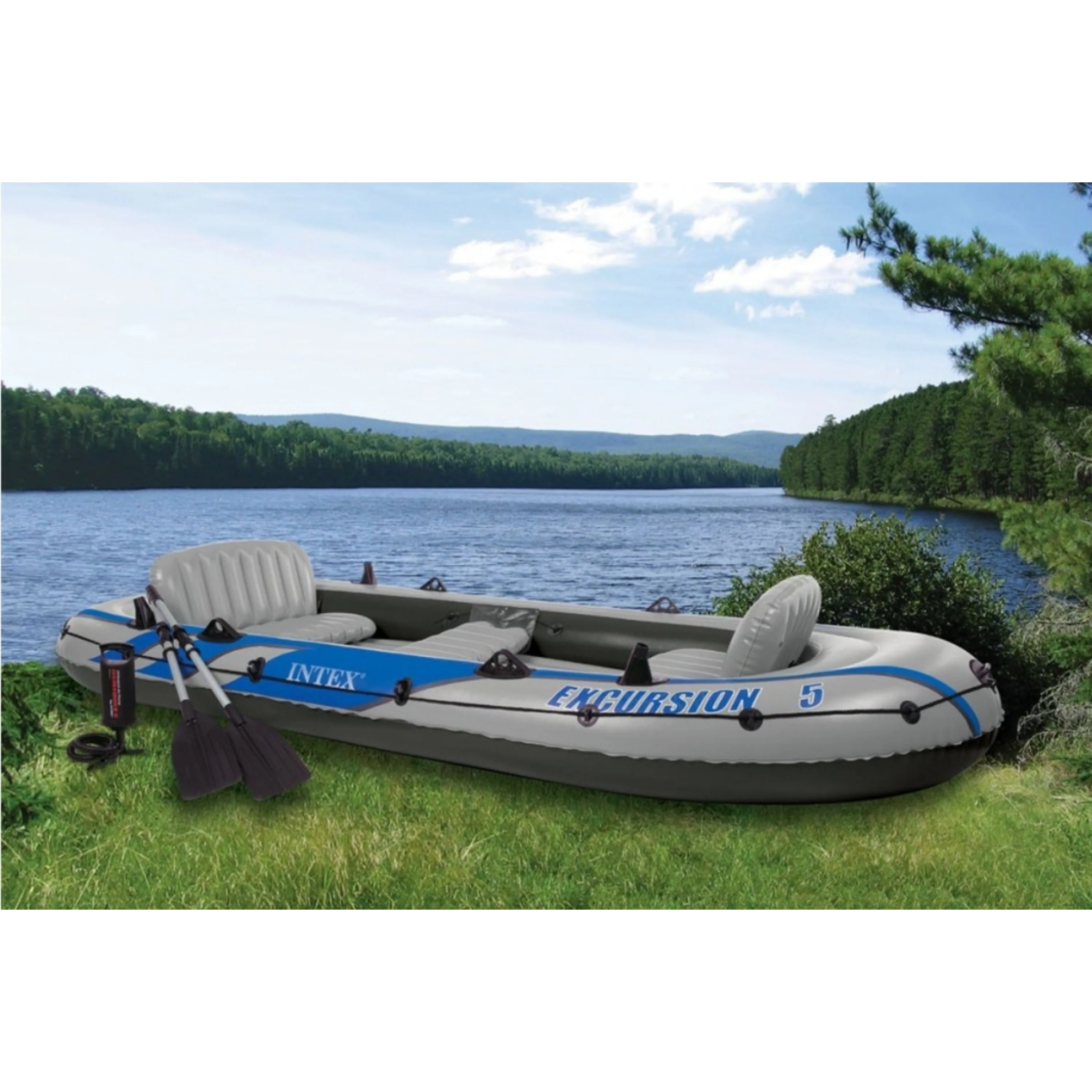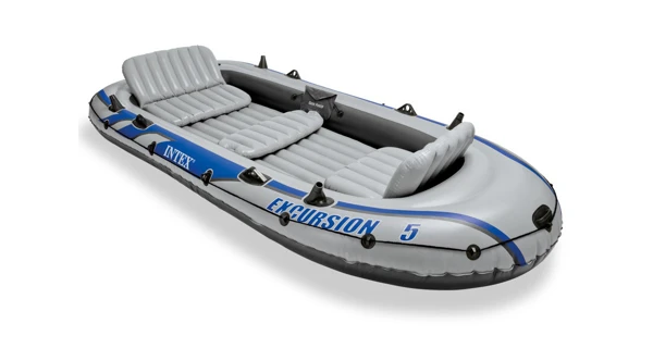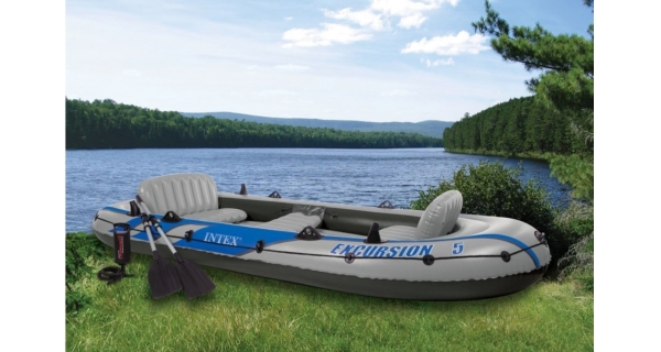 Nafukovací člun Intex Excursion 5 set je vhodný pro rekreaci a rybaření. Člun je vyroben z robustního PVC bez použití ftalátů o síle stěn 0,75 mm. Výborné vlastnosti a kvalitu tohoto nafukovacího člunu potvrzují certifikáty GS, TÜV a NMMA. Model je tvořen 3 vzduchovými komorami a disponuje nízkým profilem, který je vhodný pro jezera a mírné řeky.