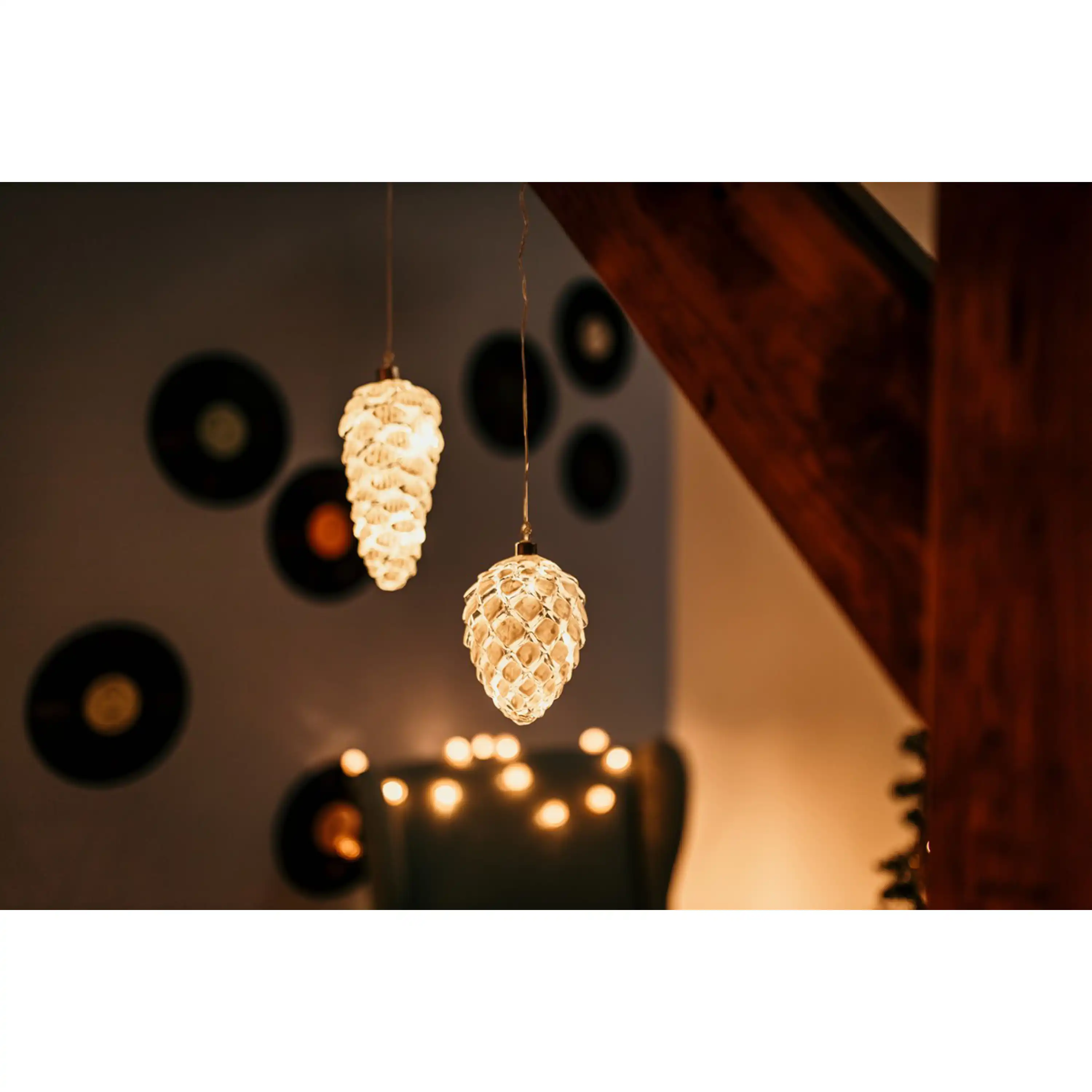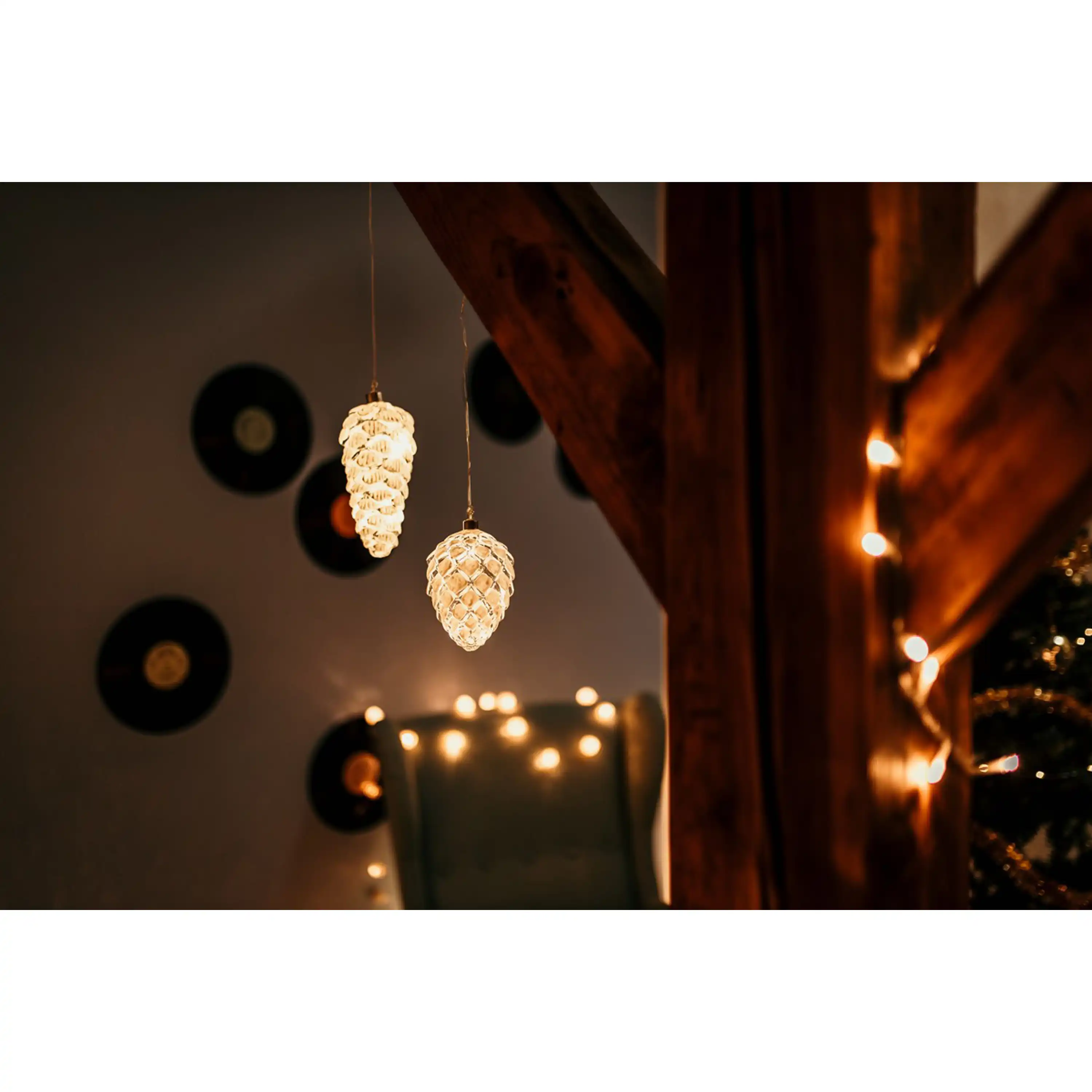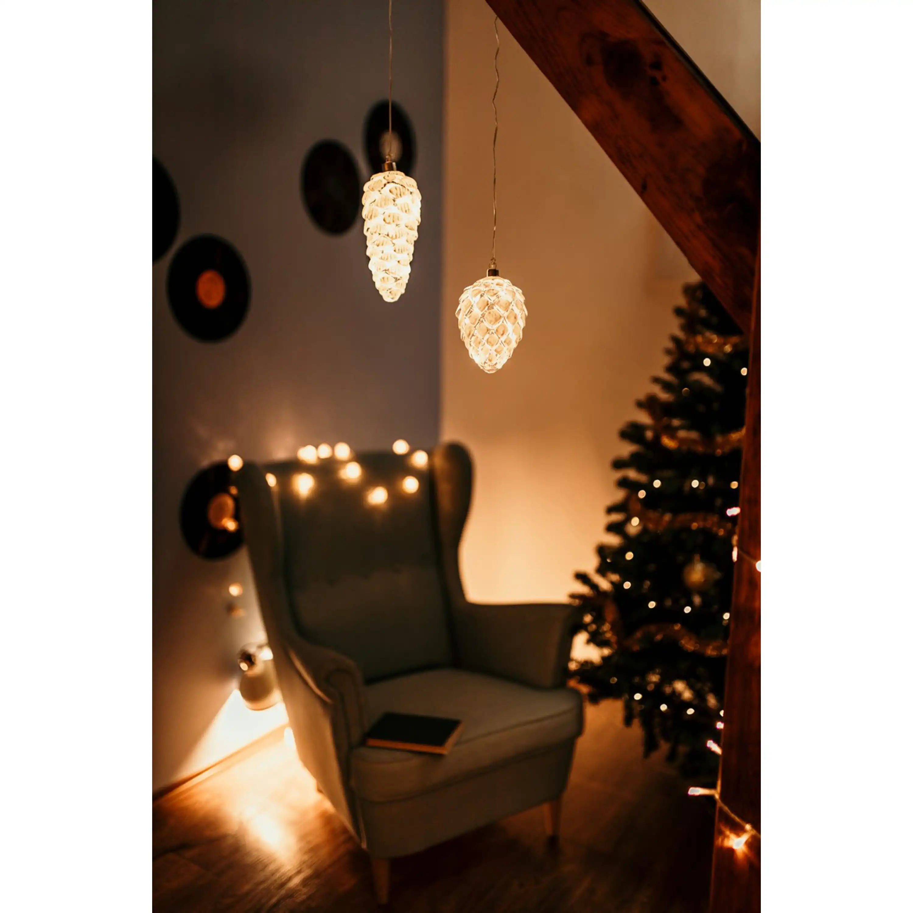 Vánoční ozdoba - závěsná bílá šiška se svítícím LED světlem uvnitř. Tato ozdoba se bude hodit do každého interiéru.