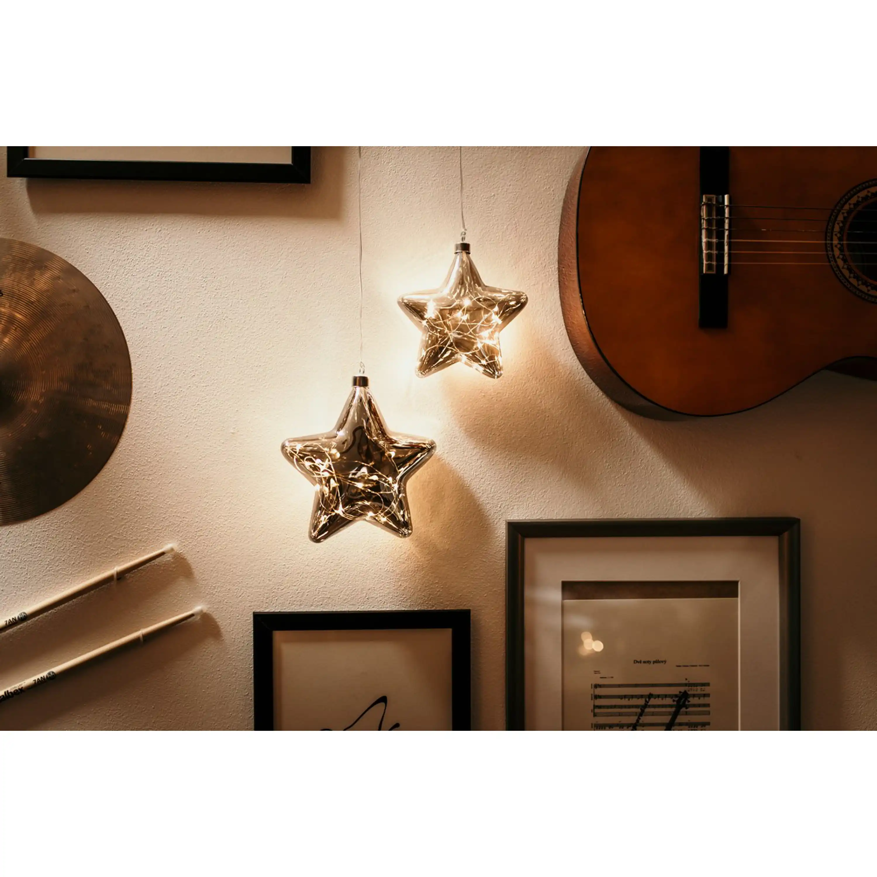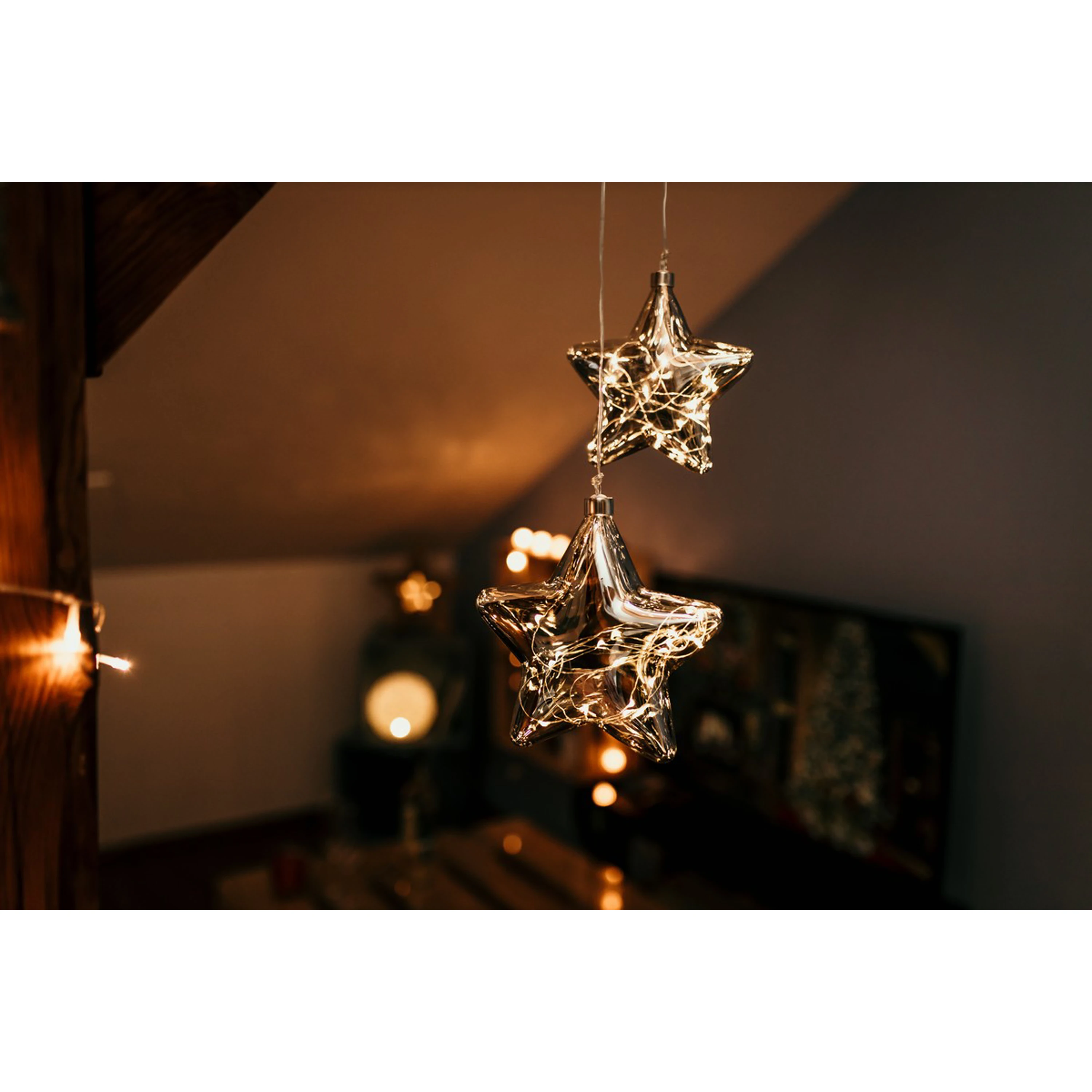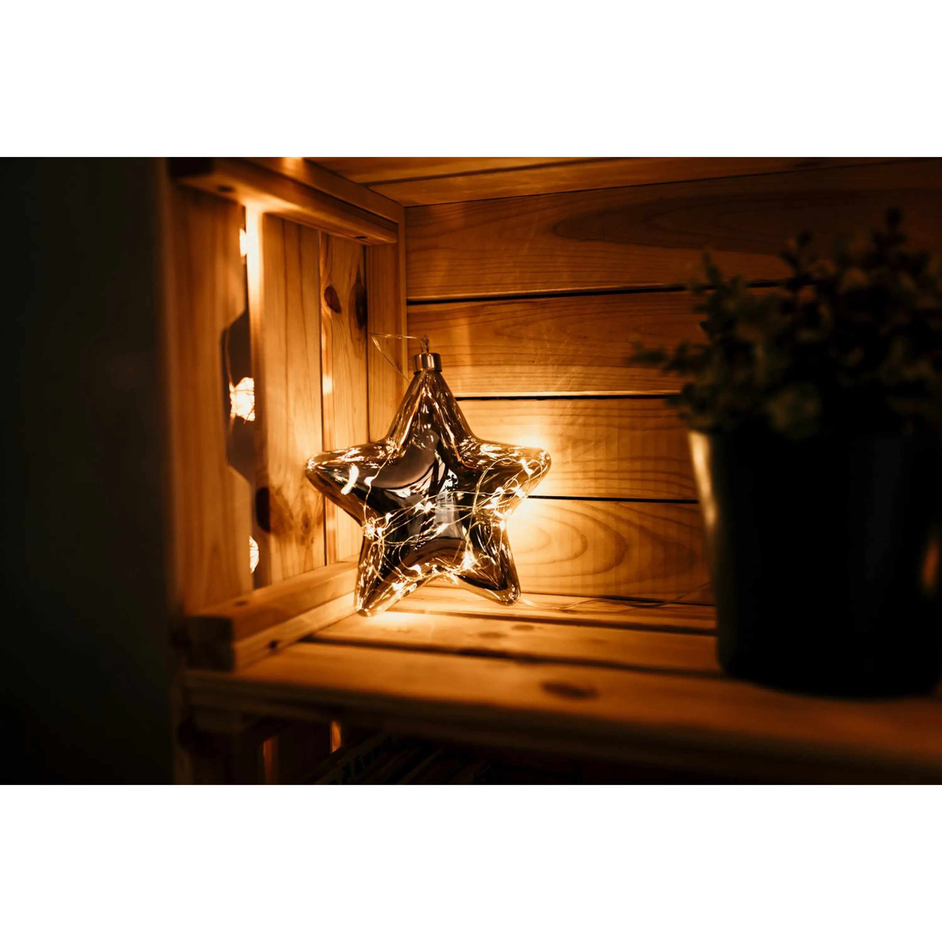 Vánoční ozdoba - závěsná hvězda se svítícím LED drátkem uvnitř. Hvězda nabudí příjemnou vánoční atmosféru a díky teplé bílé barvě ozáří váš interiér.