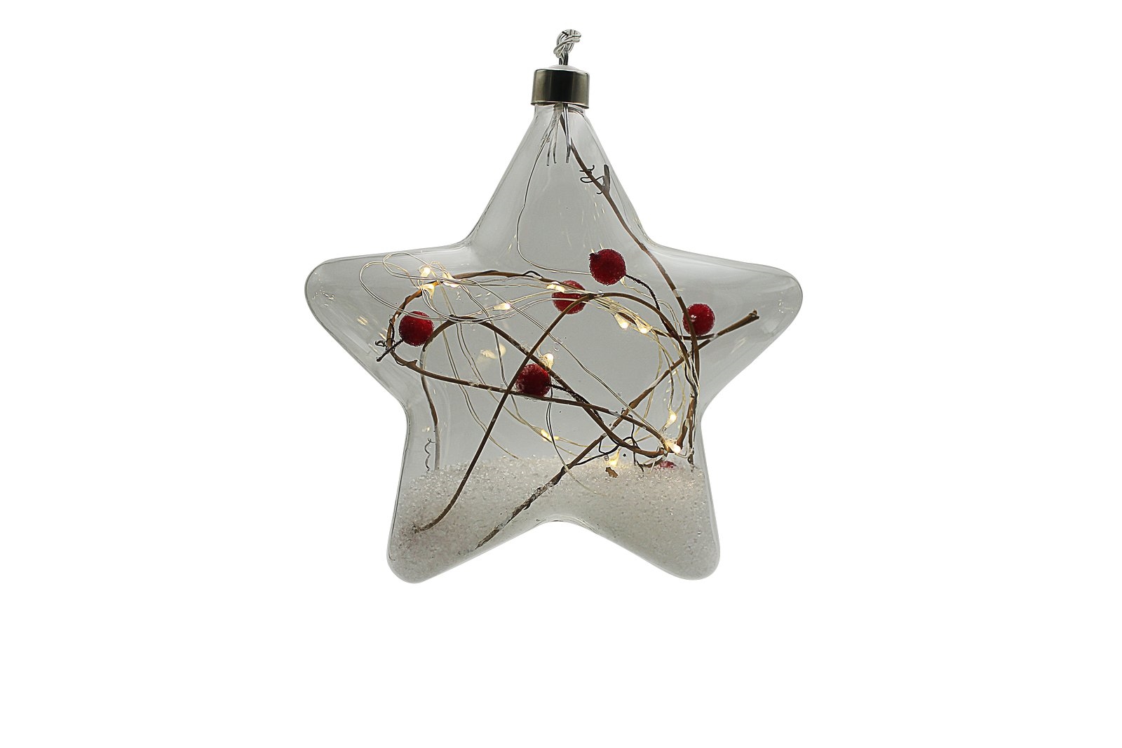 Crystal závěsná hvězda s cesmínou 15 LED | Marimex.cz