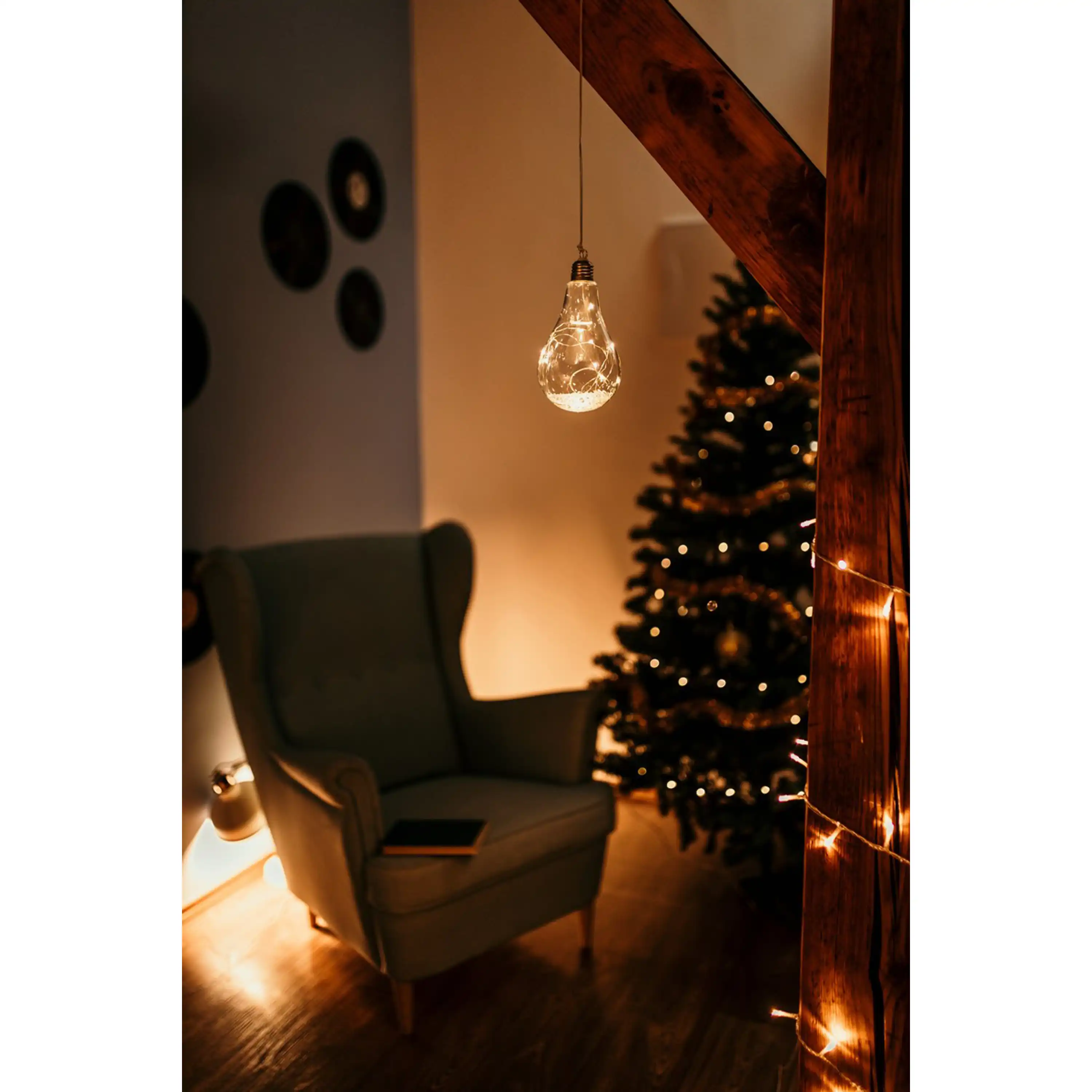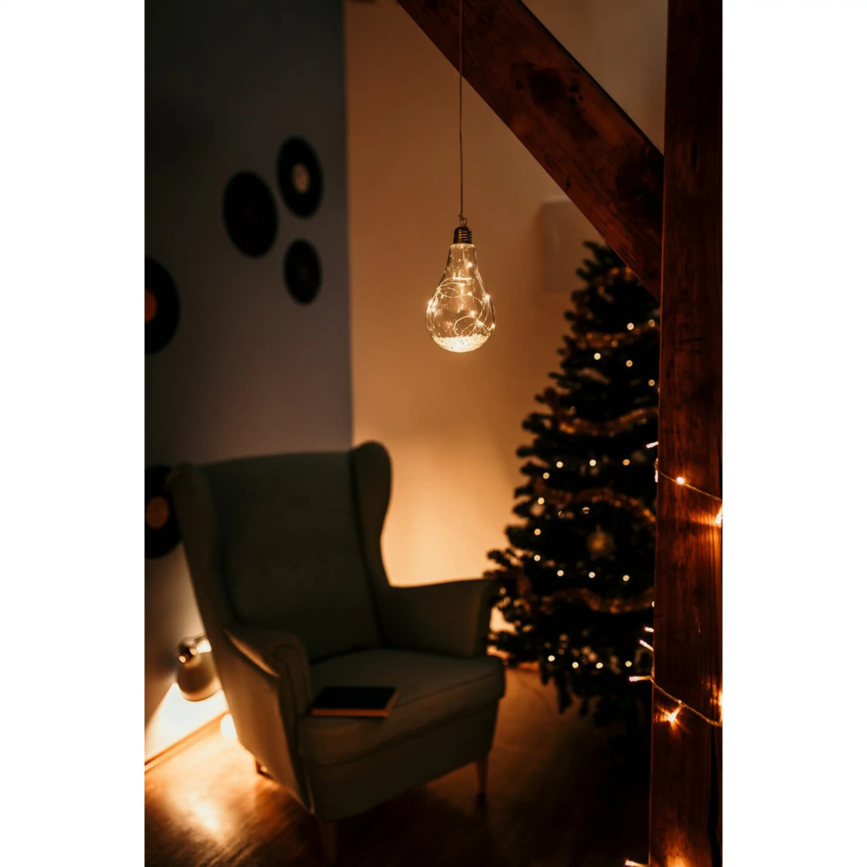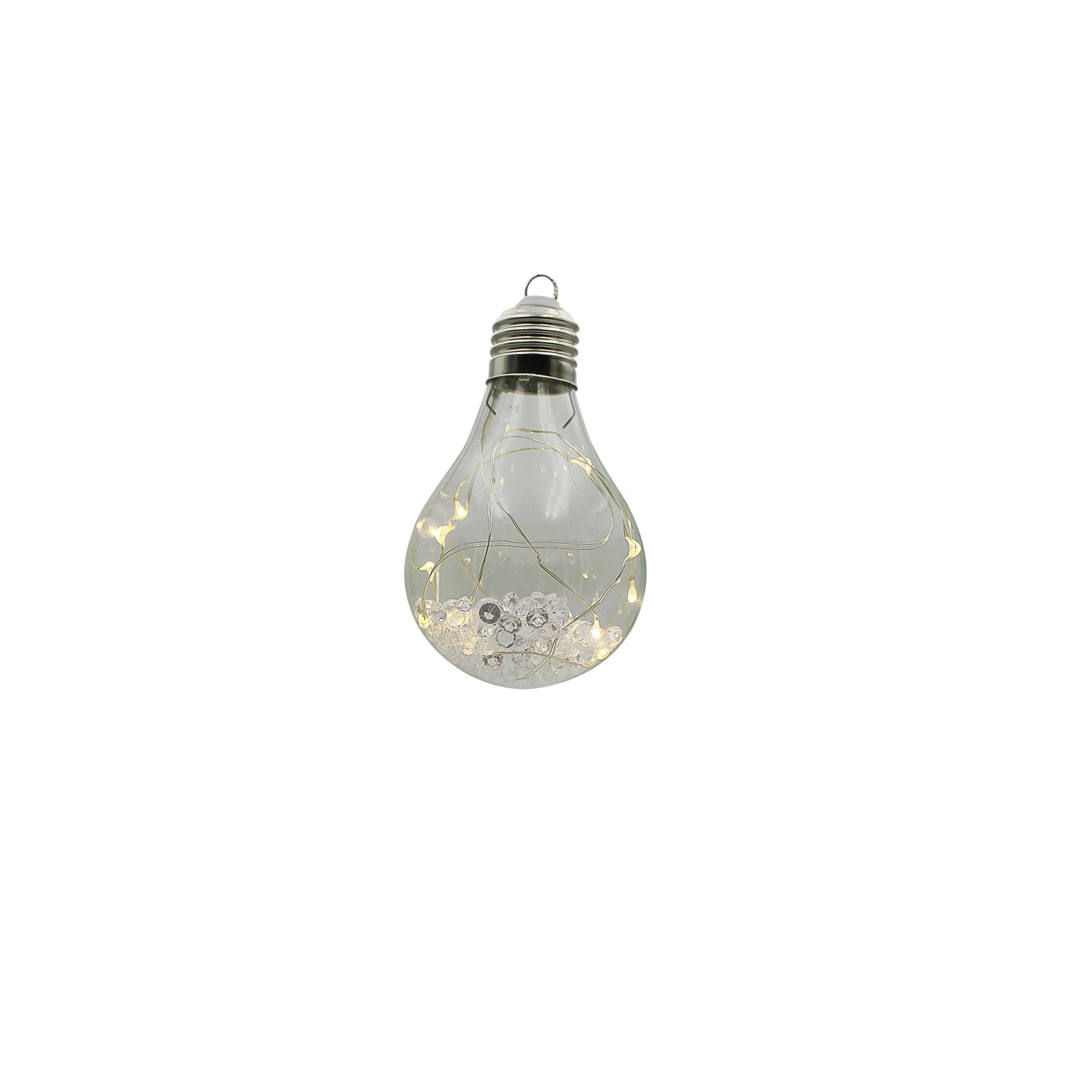 Originální vánoční dekorace ve tvaru žárovky s LED drátkem uvnitř. Žárovka díky teplé bílé barvě ozáří váš interiér a nabudí tak příjemnou vánoční atmosféru.