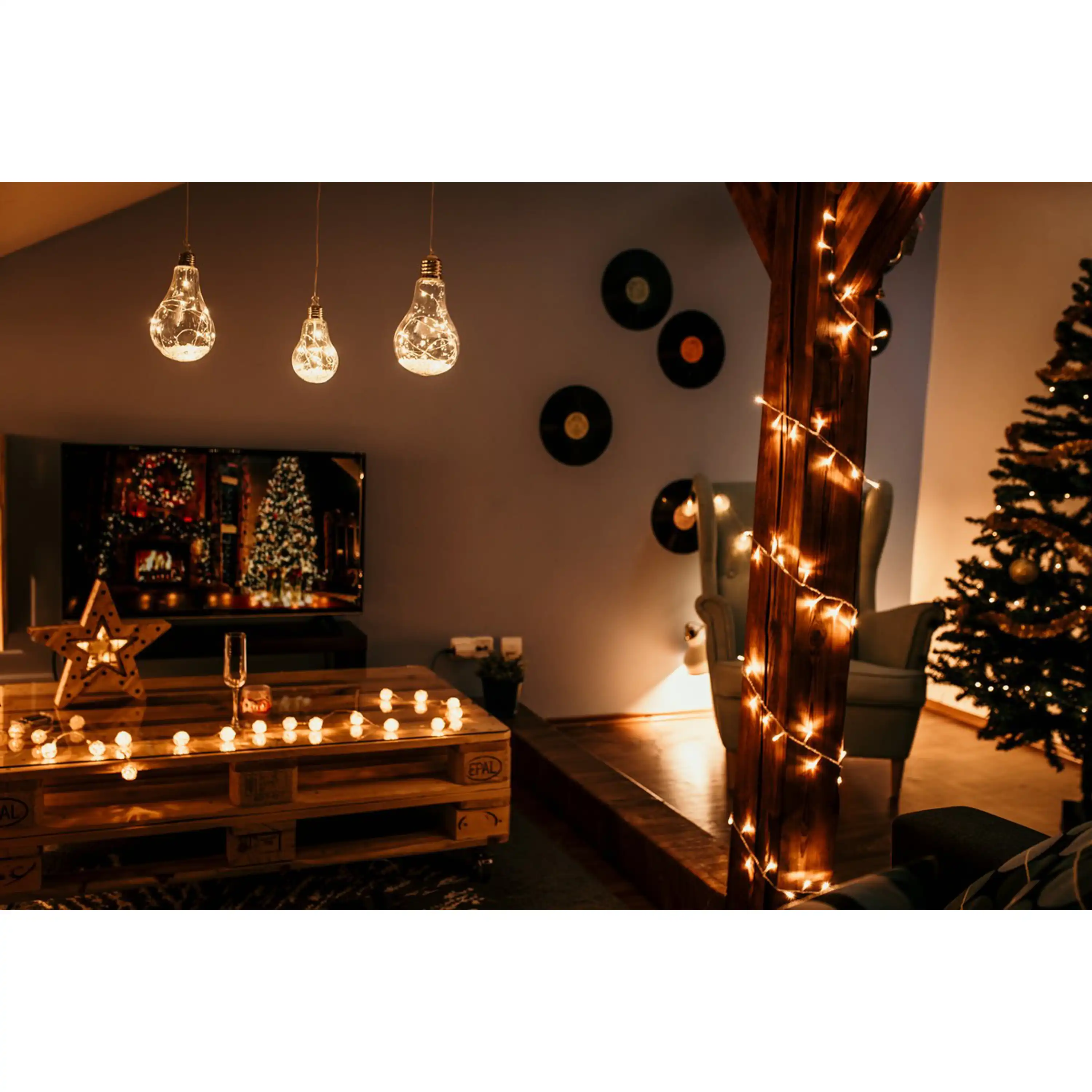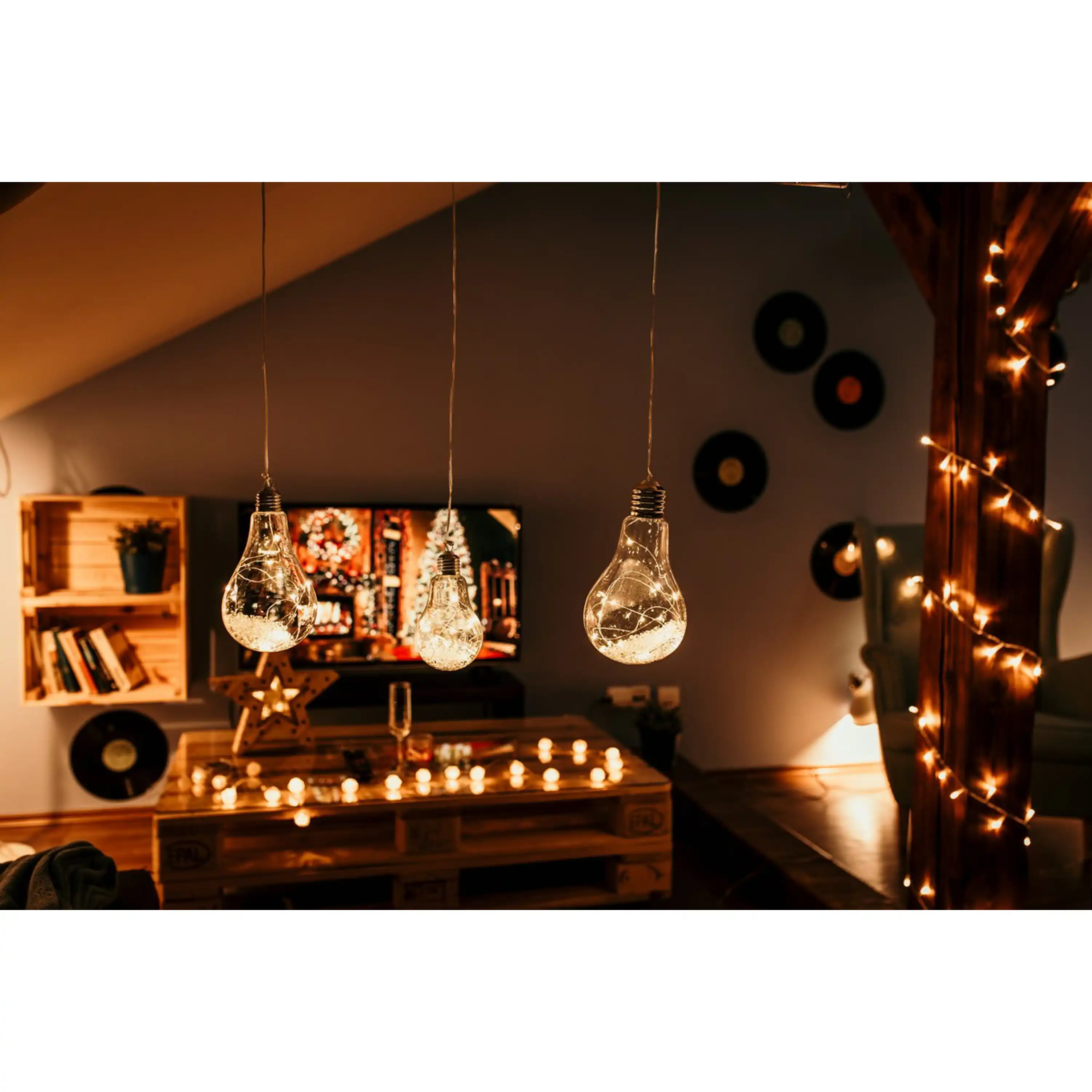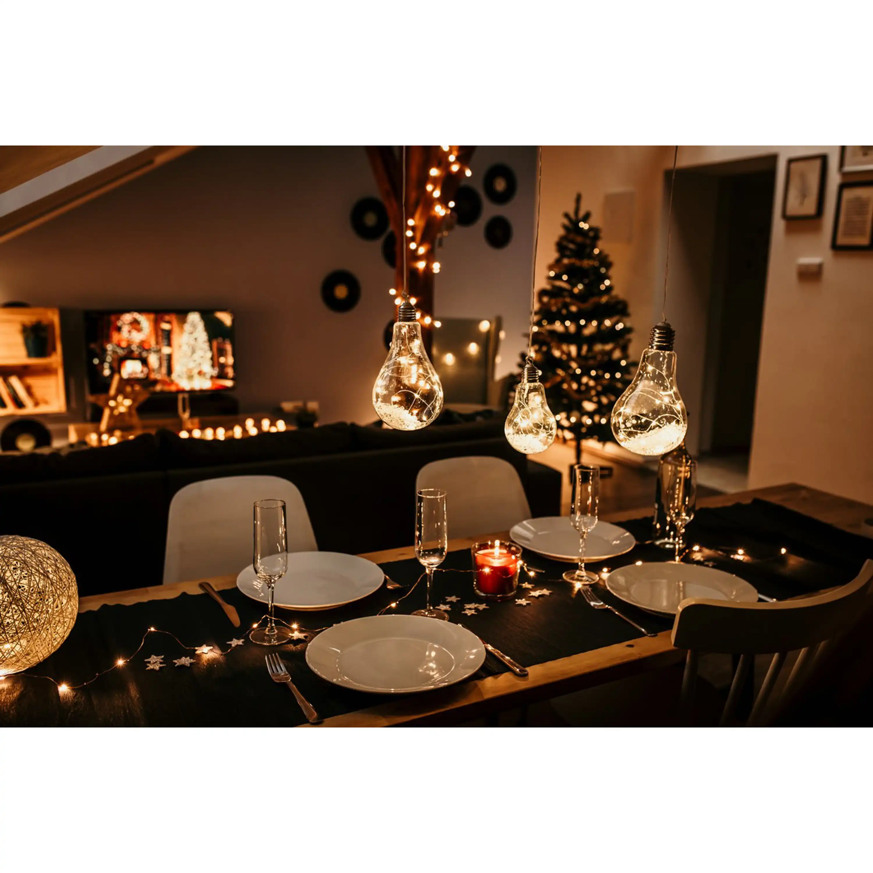 Originální vánoční dekorace ve tvaru žárovky s LED drátkem uvnitř. Žárovka díky teplé bílé barvě ozáří váš interiér a nabudí tak příjemnou vánoční atmosféru.