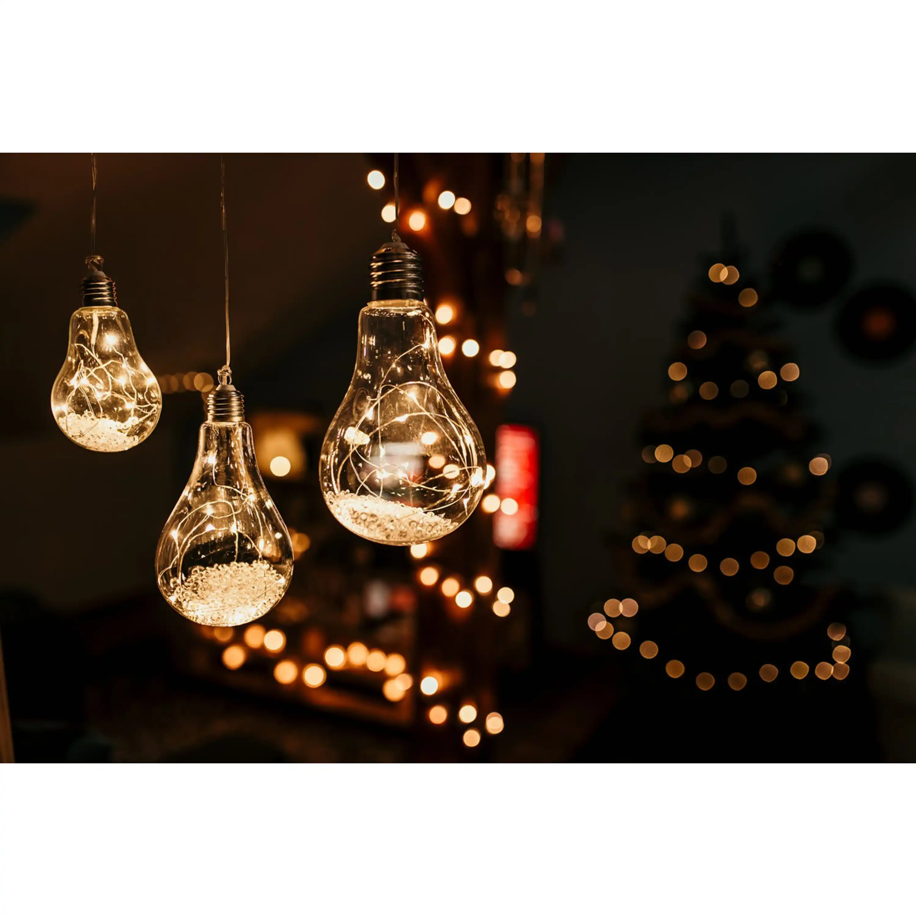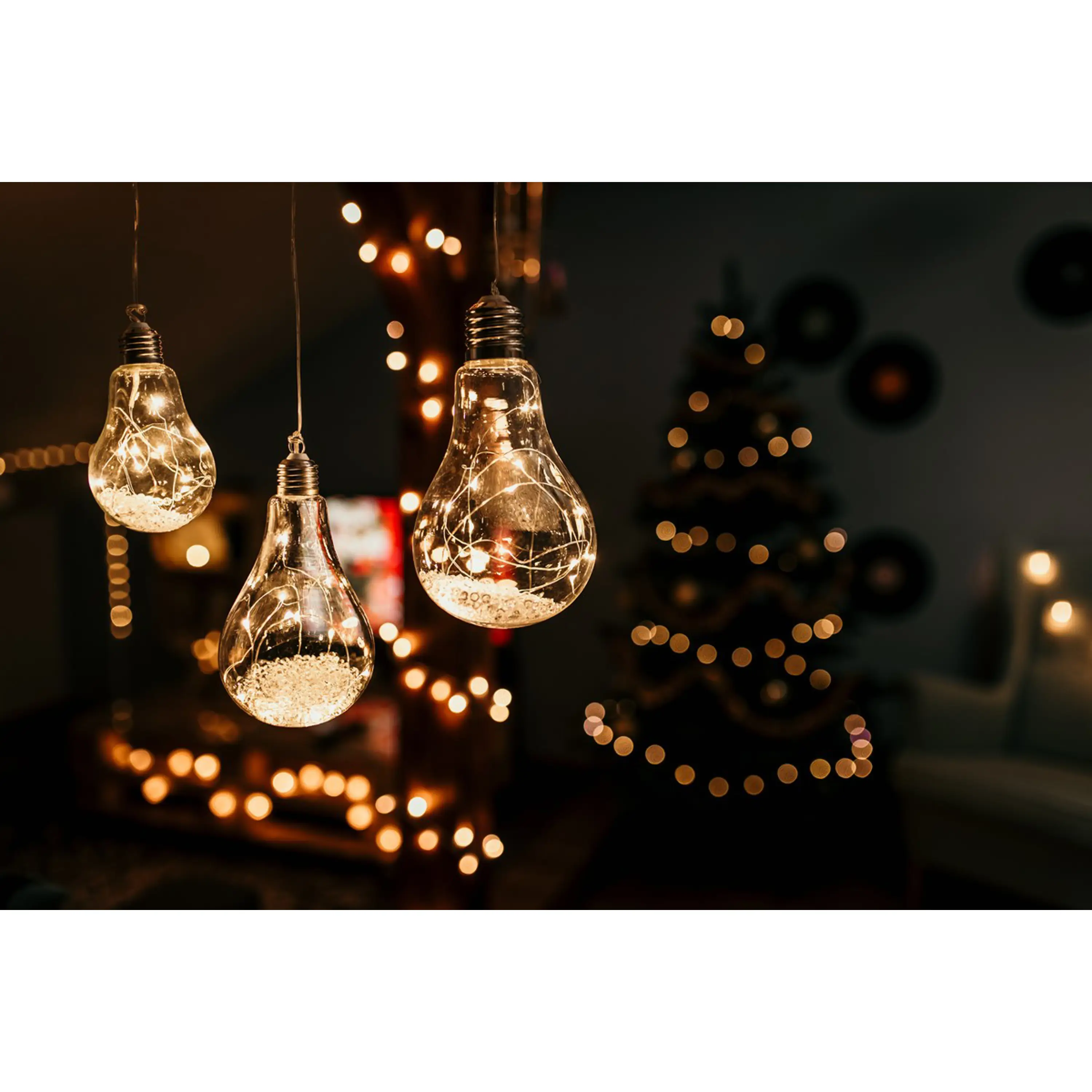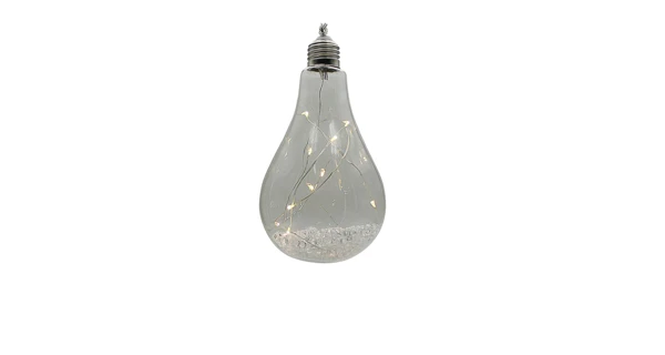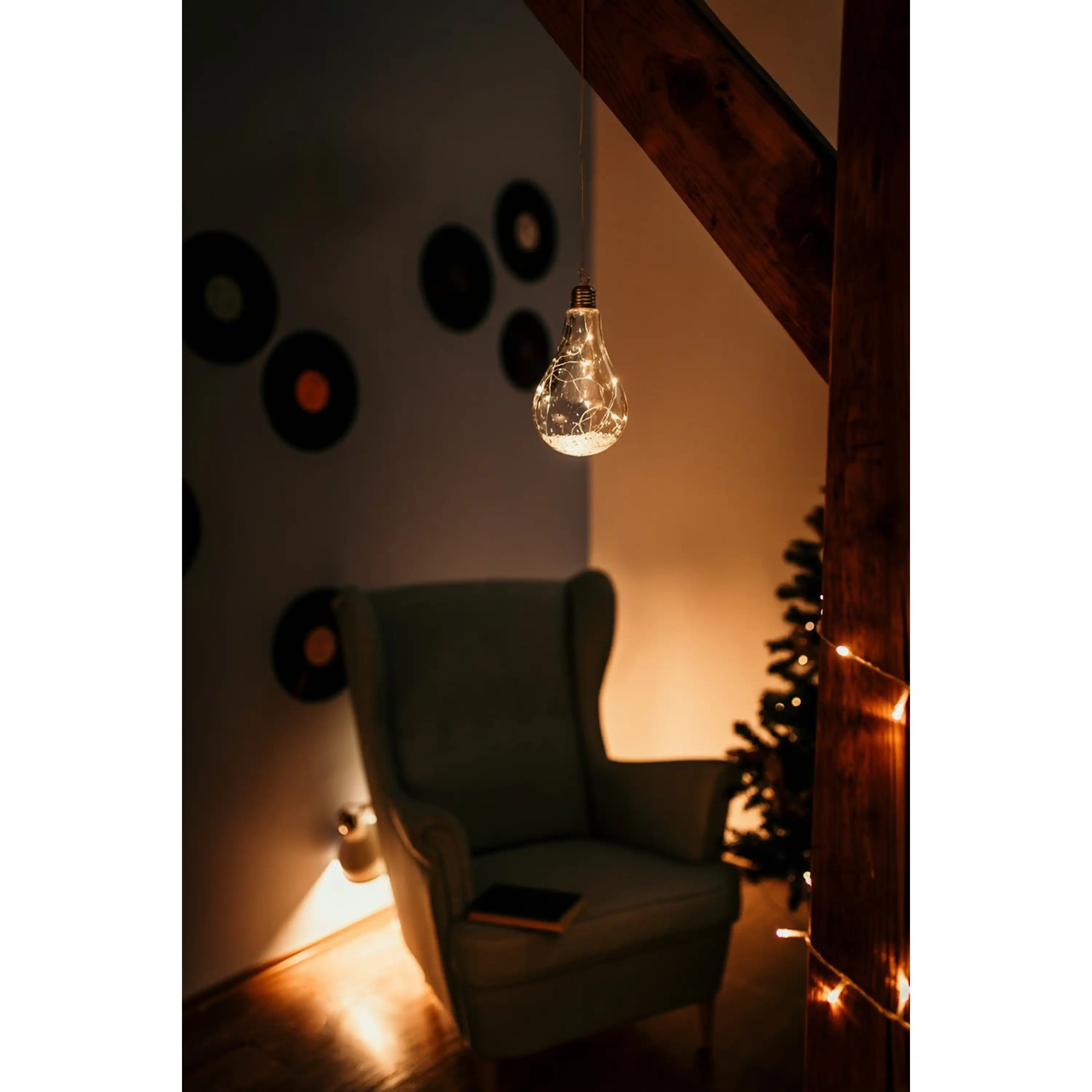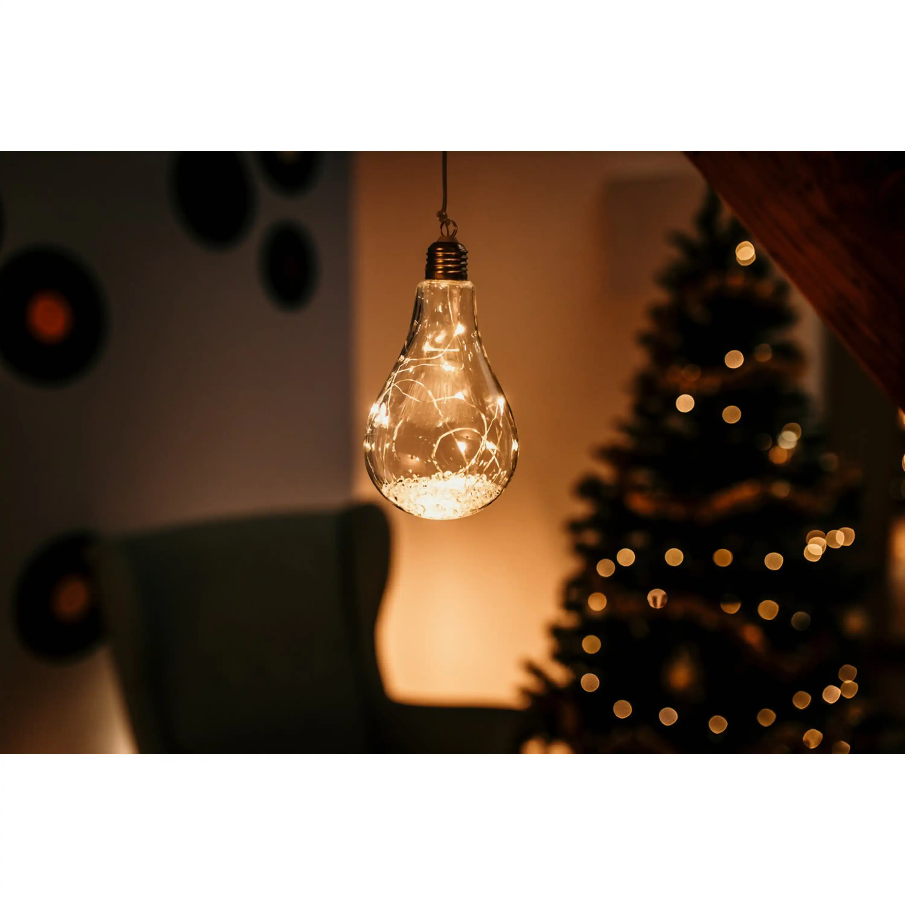 Originální vánoční dekorace ve tvaru žárovky s LED drátkem uvnitř. Žárovka díky teplé bílé barvě ozáří váš interiér a nabudí tak příjemnou vánoční atmosféru.
