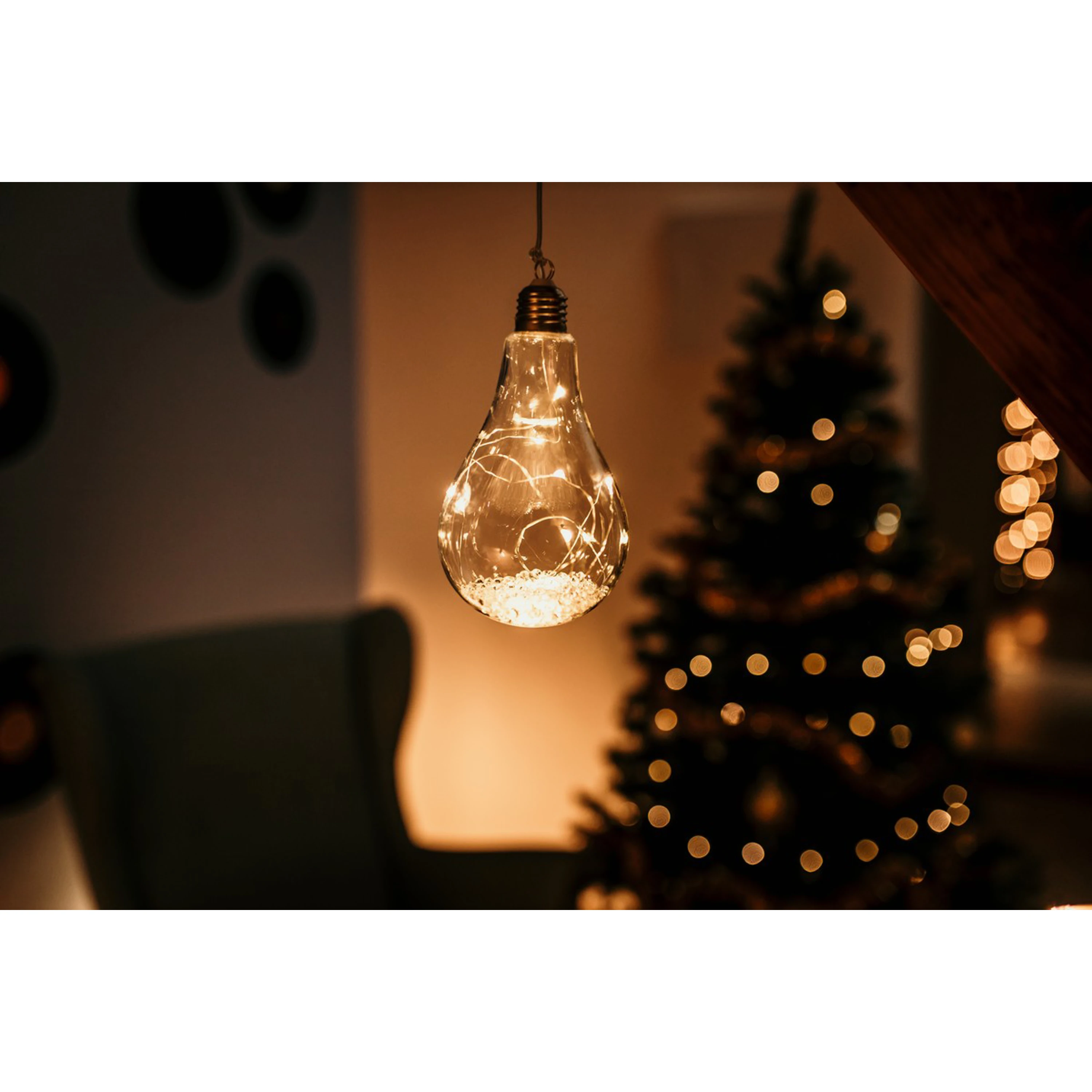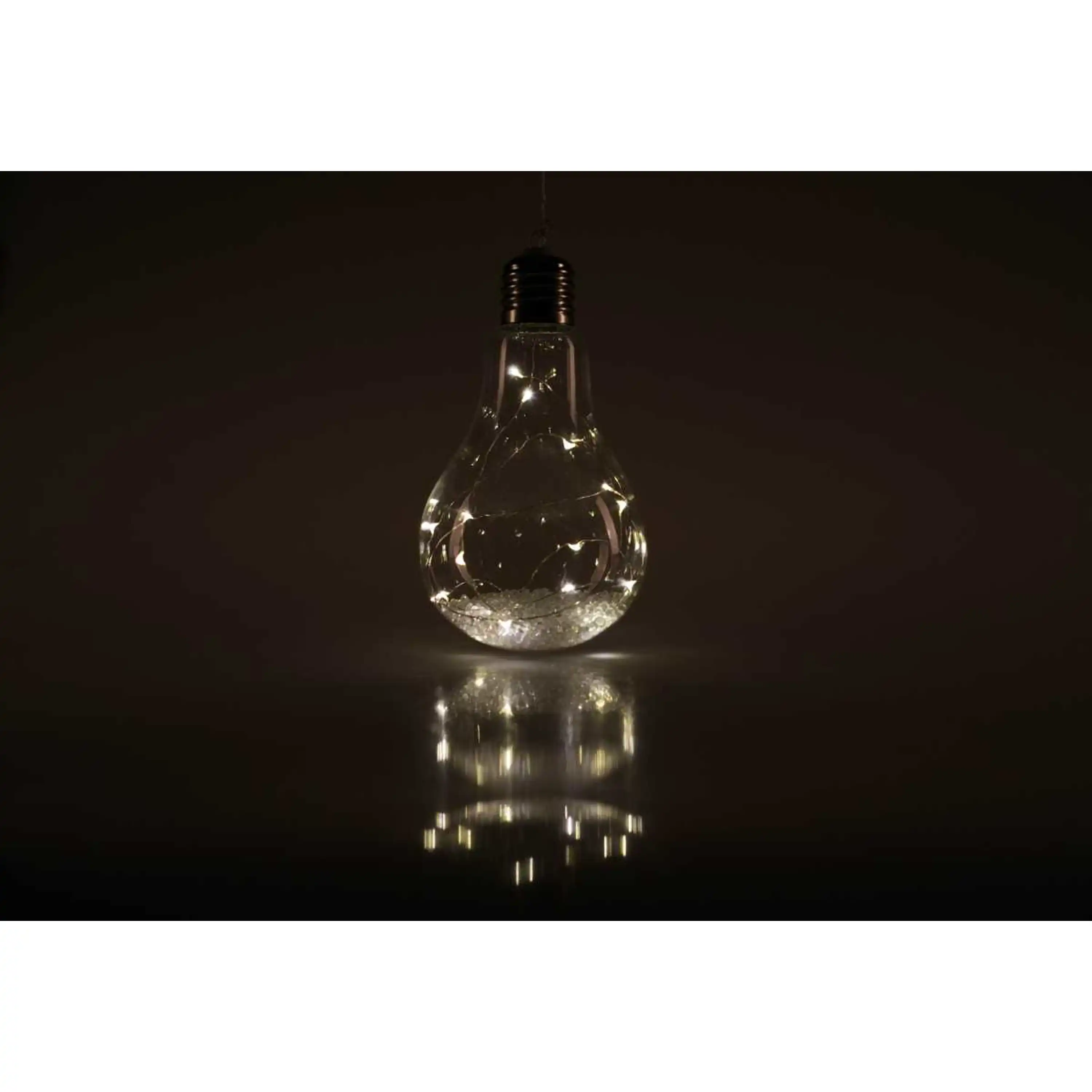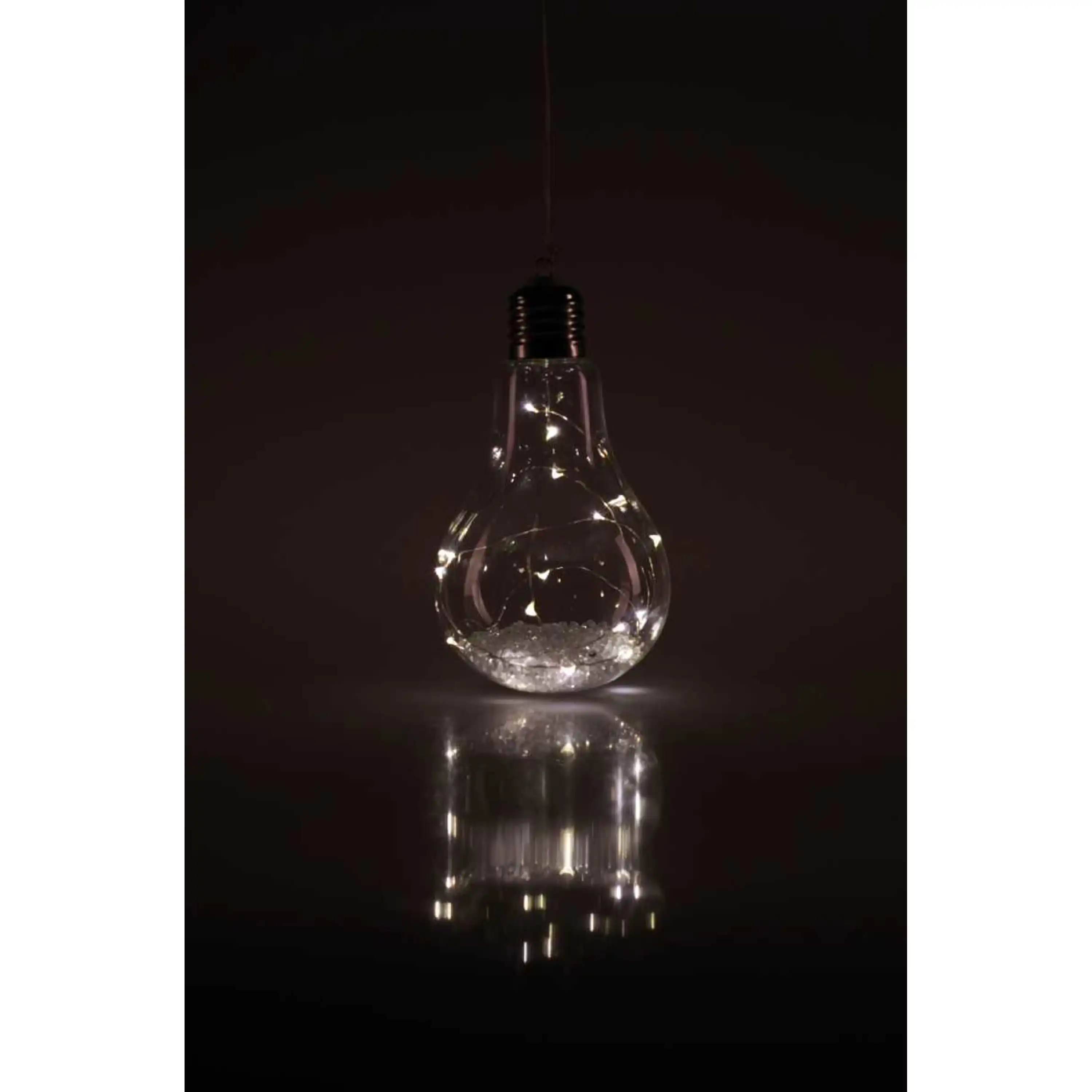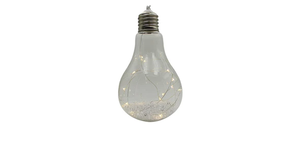 Originální vánoční dekorace ve tvaru žárovky s LED drátkem uvnitř. Žárovka díky teplé bílé barvě ozáří váš interiér a nabudí tak příjemnou vánoční atmosféru.