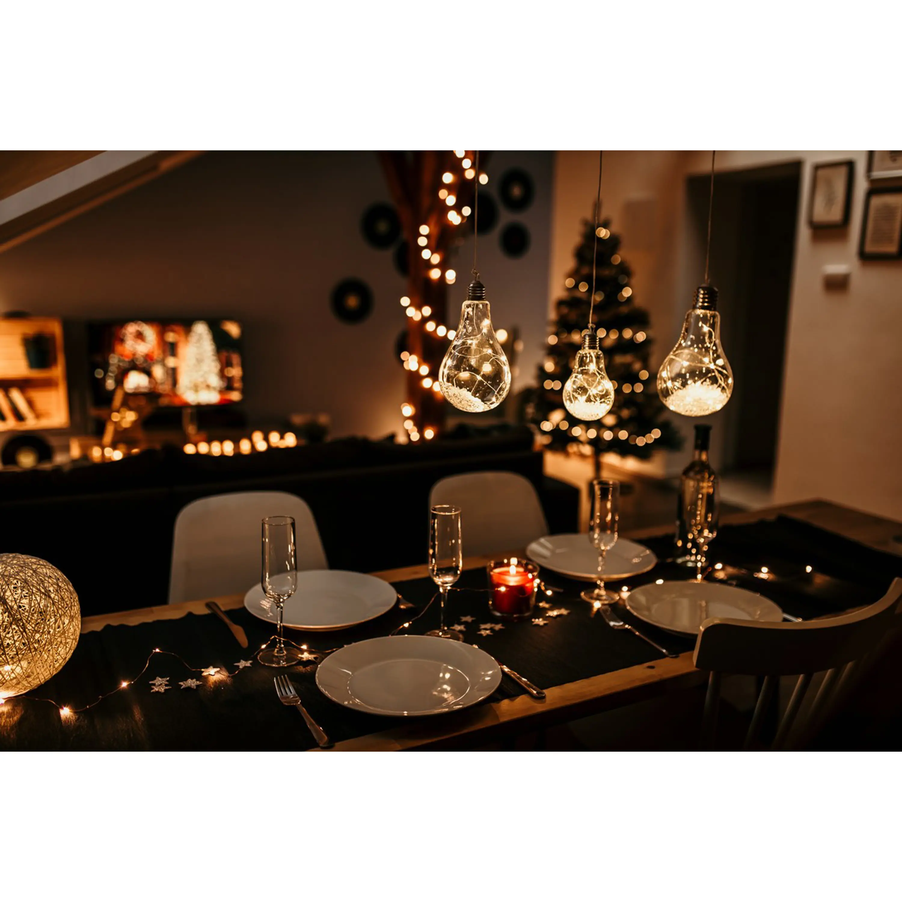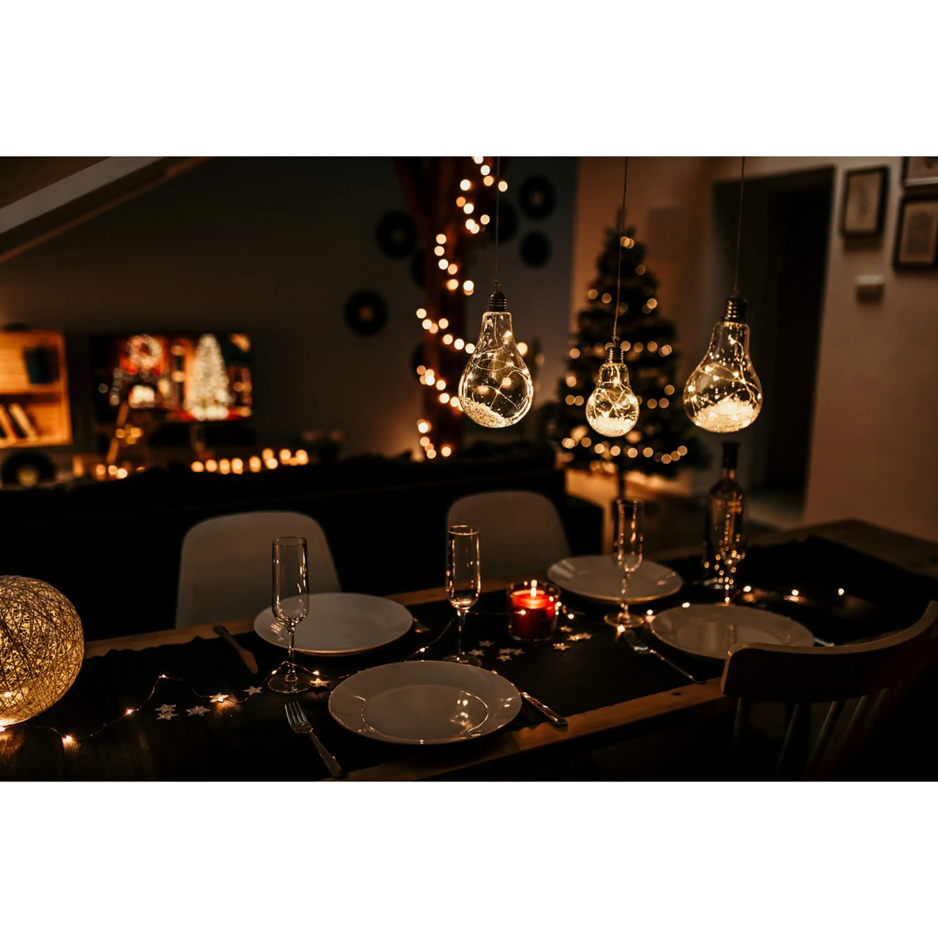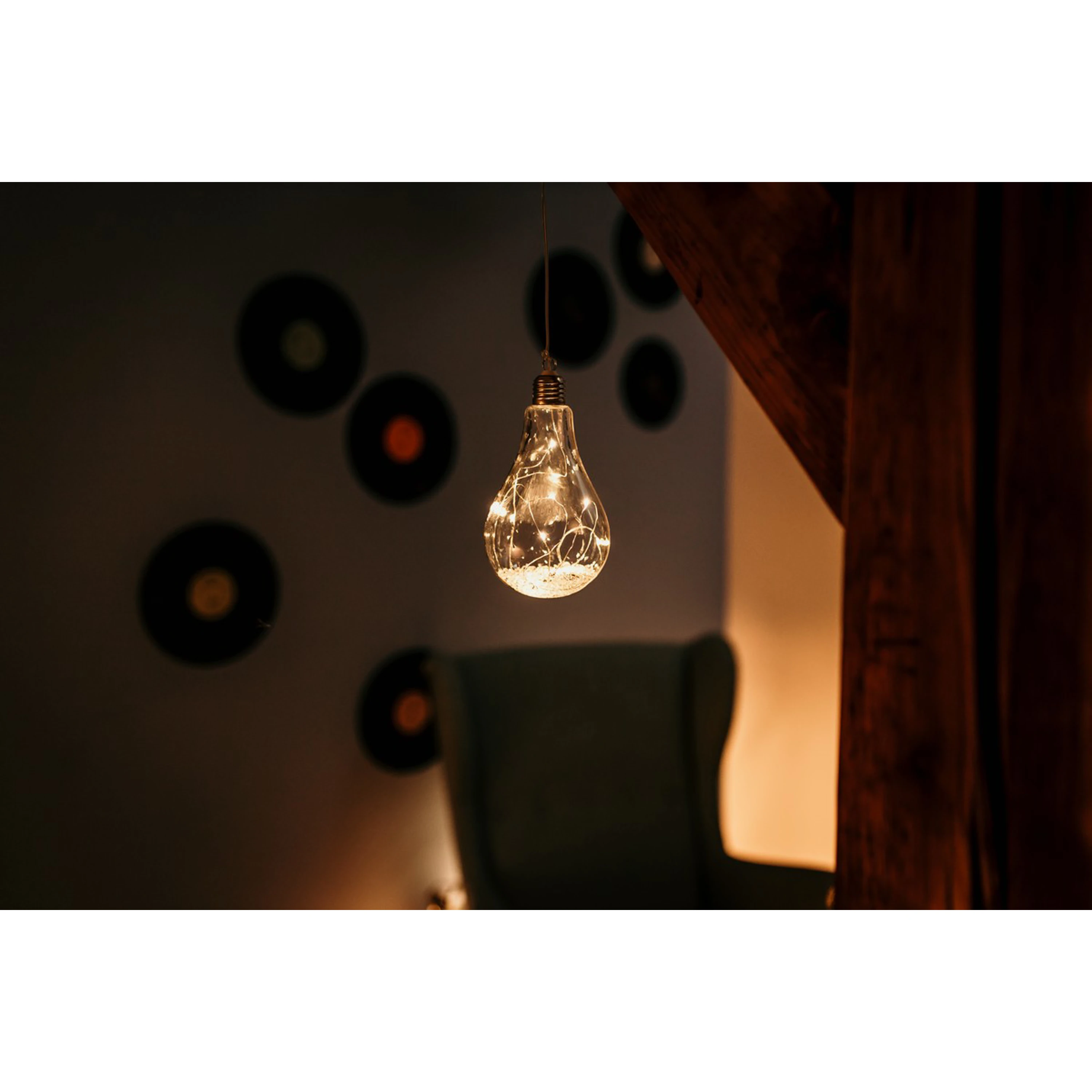 Originální vánoční dekorace ve tvaru žárovky s LED drátkem uvnitř. Žárovka díky teplé bílé barvě ozáří váš interiér a nabudí tak příjemnou vánoční atmosféru.
