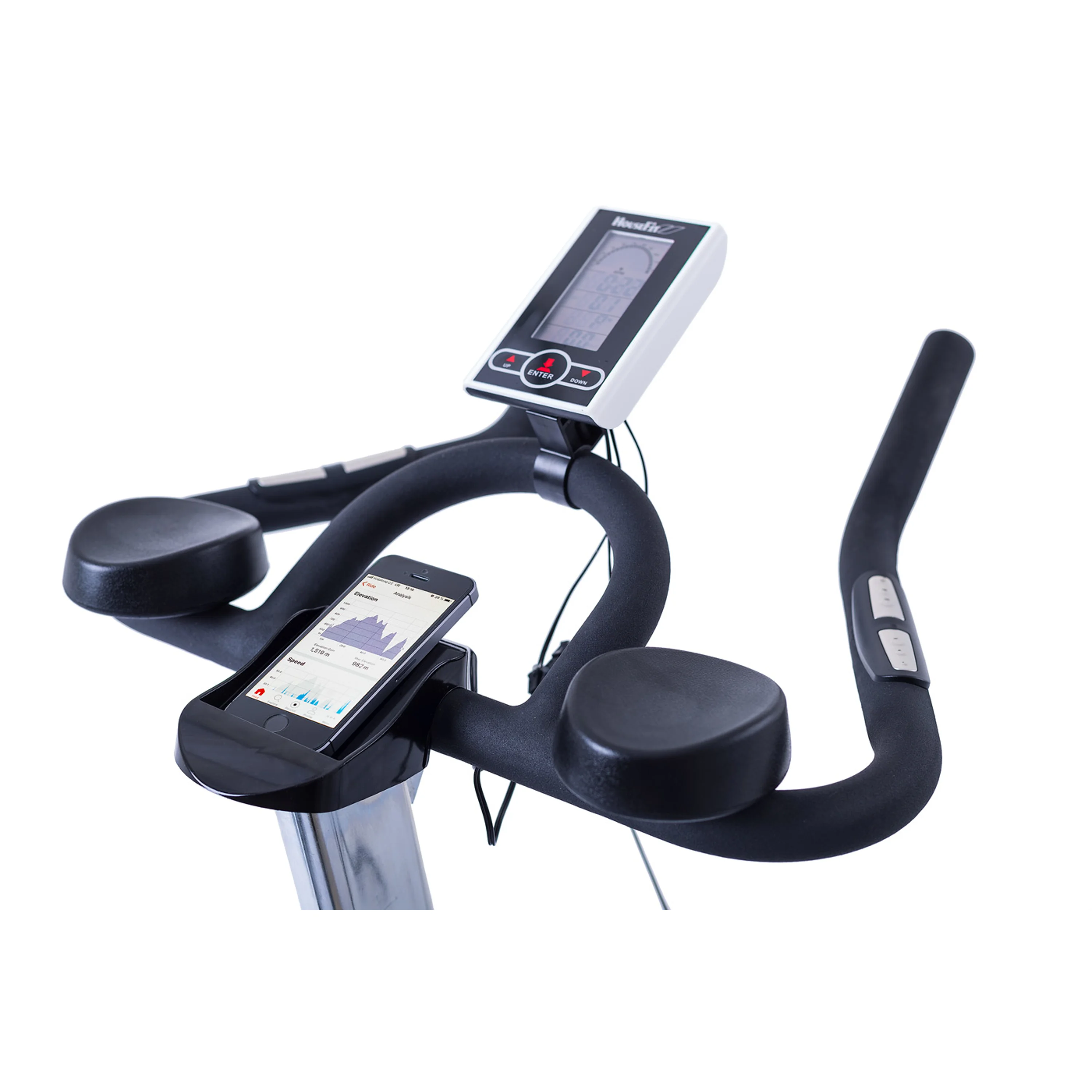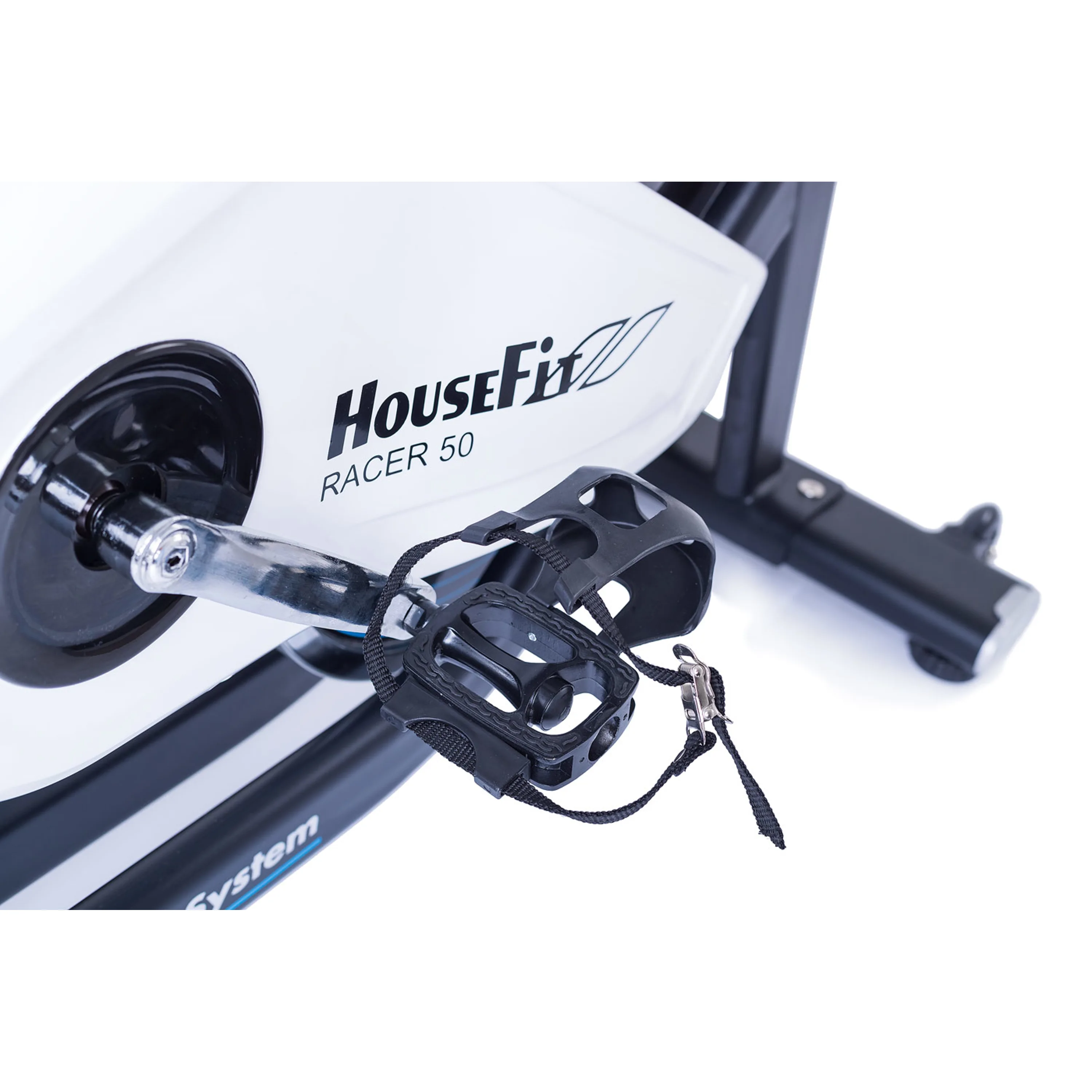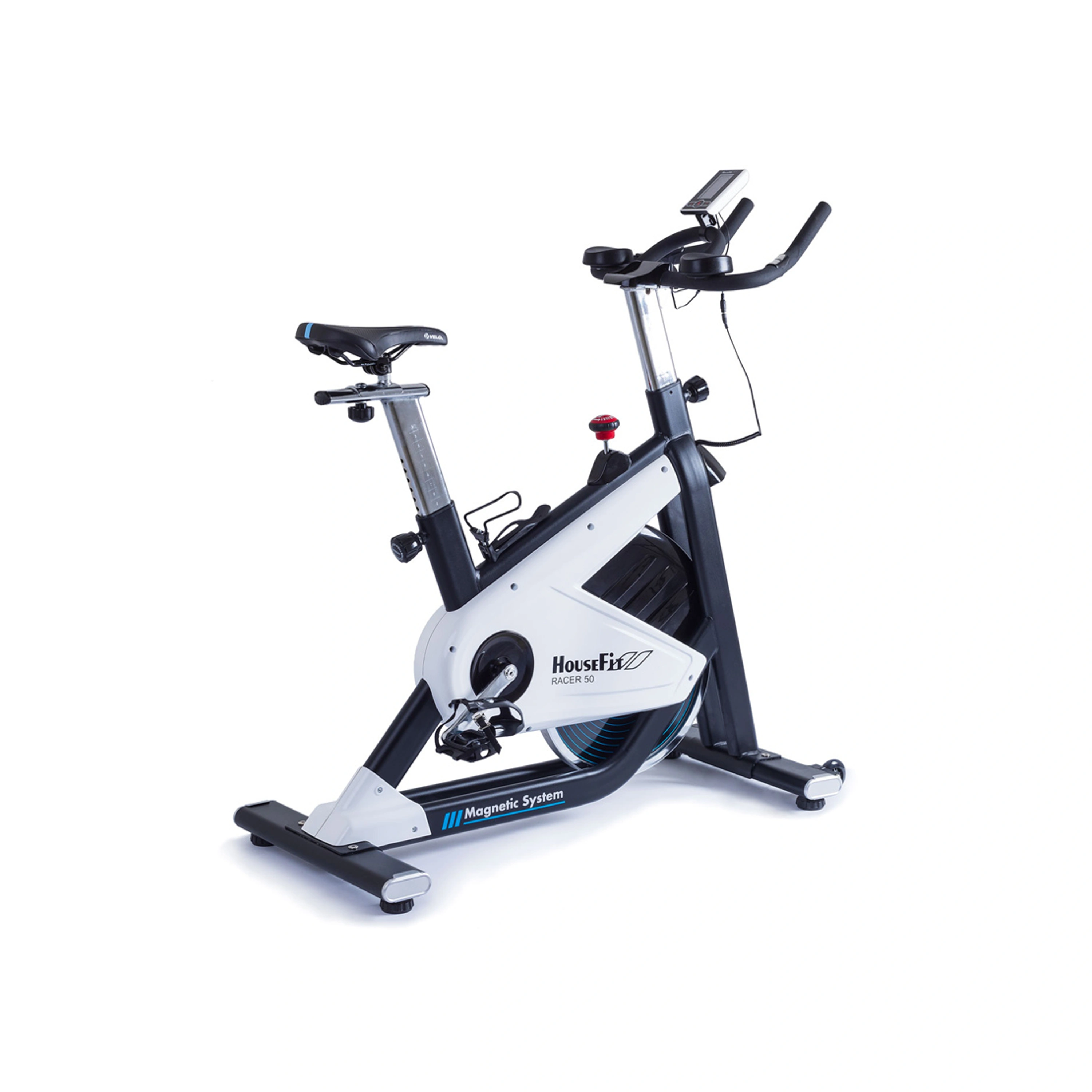 HOUSEFIT RACER 50 má magnetický brzdný systém, který je ovládán manuálním otočným regulátorem s dostatečnou variabilitou odporu. Díky setrvačníku o hmotnosti 14 kg a moderní magnetické brzdě má HOUSEFIT RACER 50 komfortní, plynulý a zcela tichý chod i při náročném tréninku.