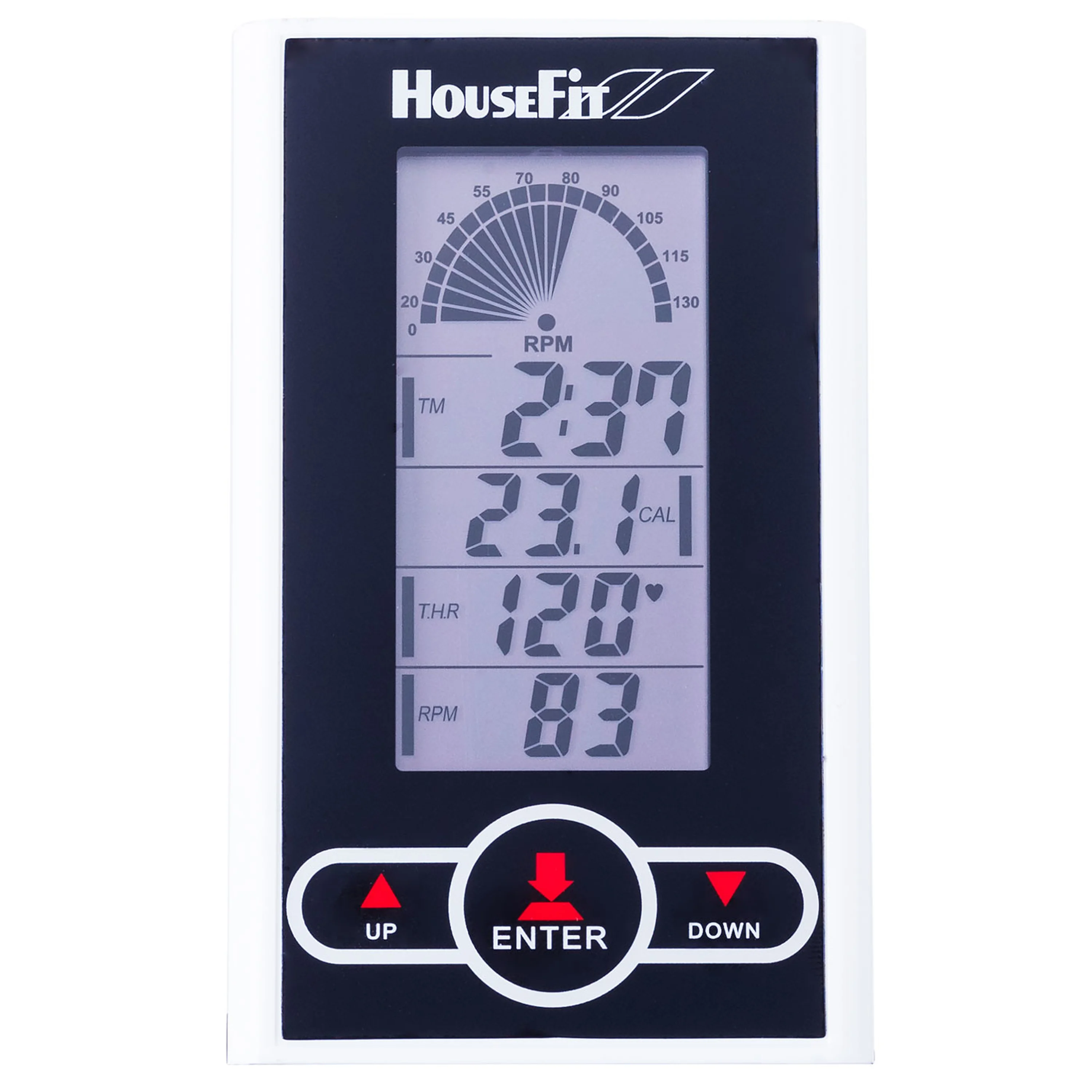 Cyklotrenažér má přehledný LCD displej, který vyobrazuje základní parametry jako je čas, aktuální rychlost, otáčky RPM, ujetá vzdálenost, spálené kalorie a hodnotu tepové frekvence.