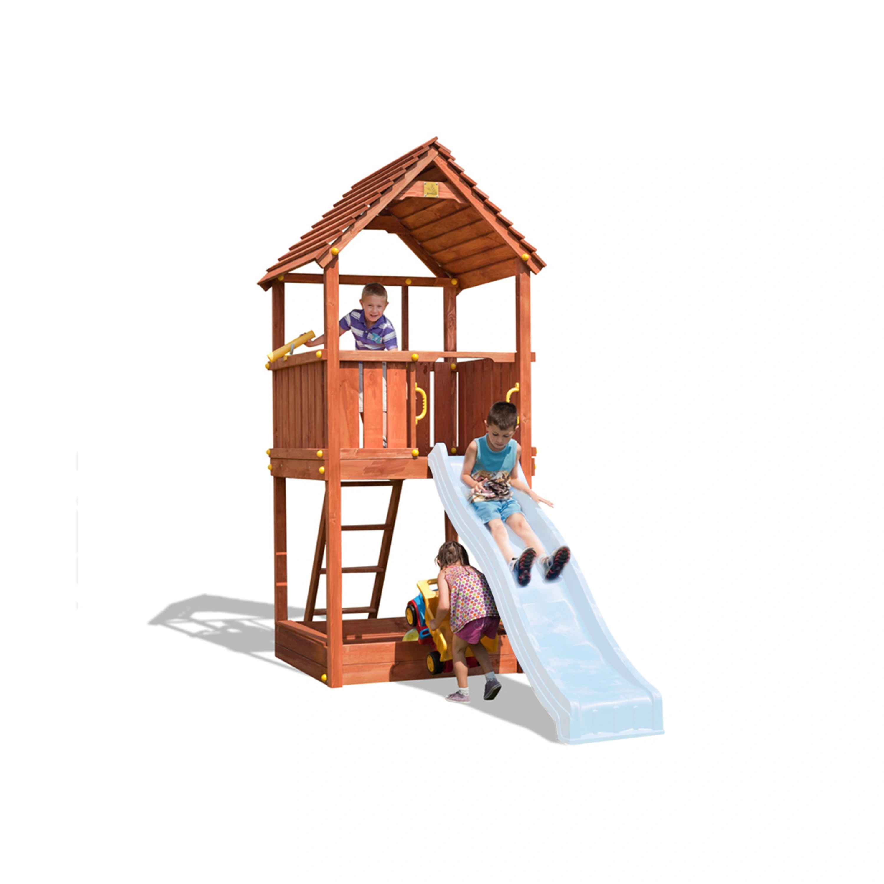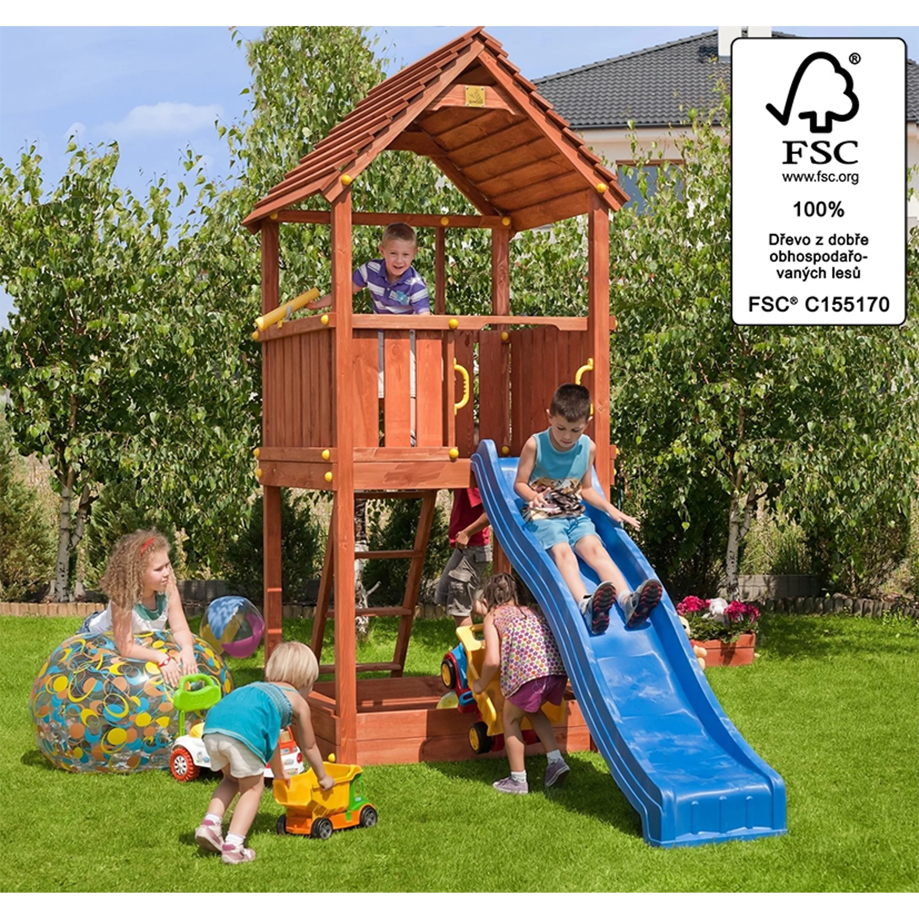 herní věže a je možné napojit i skluzavku. Děti si užijí spoustu zábavy a pohybu, nejen při lezení na věž po žebříku a poté při parádním sklouznutí po