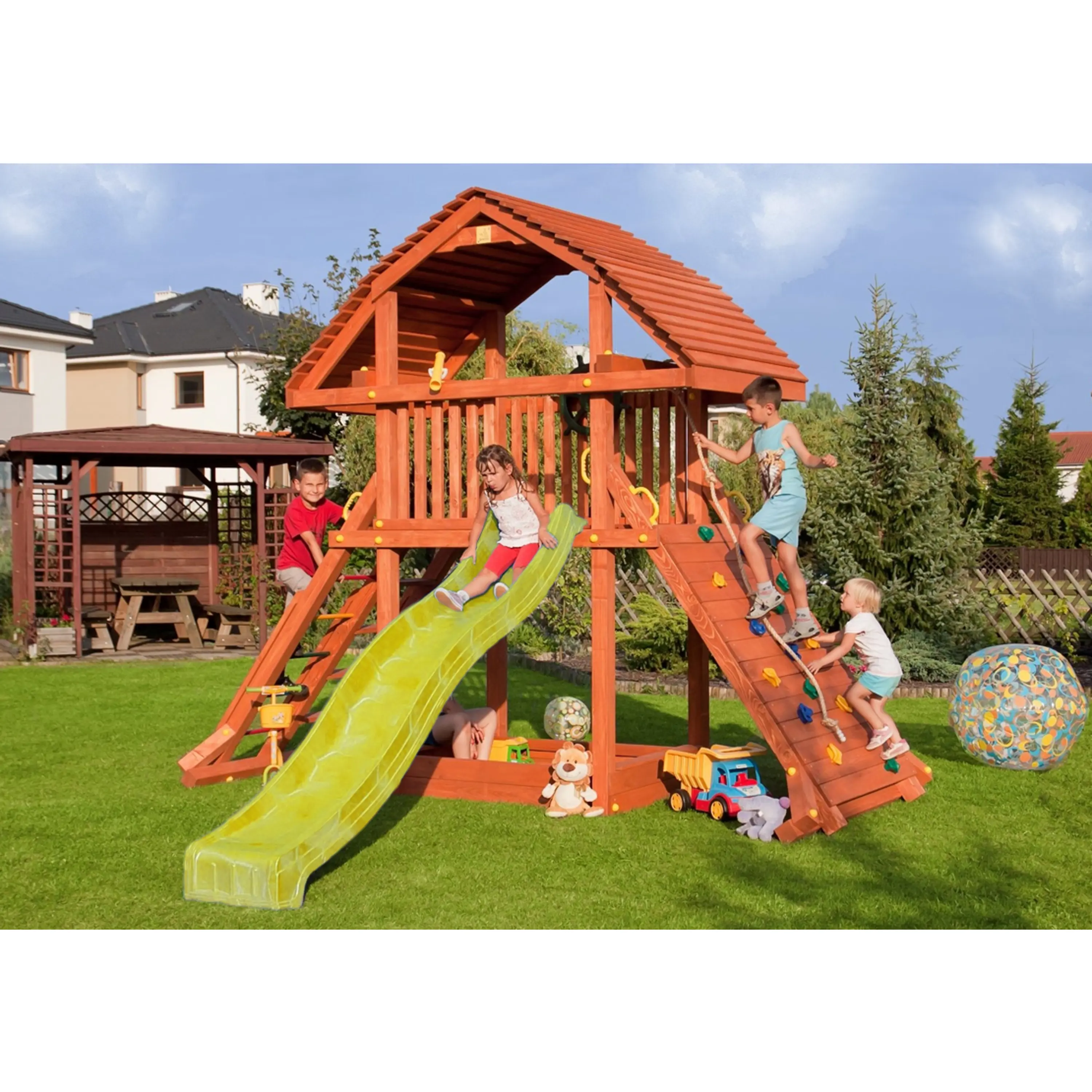 - Dřevěné části hřiště jsou z borovicového dřeva