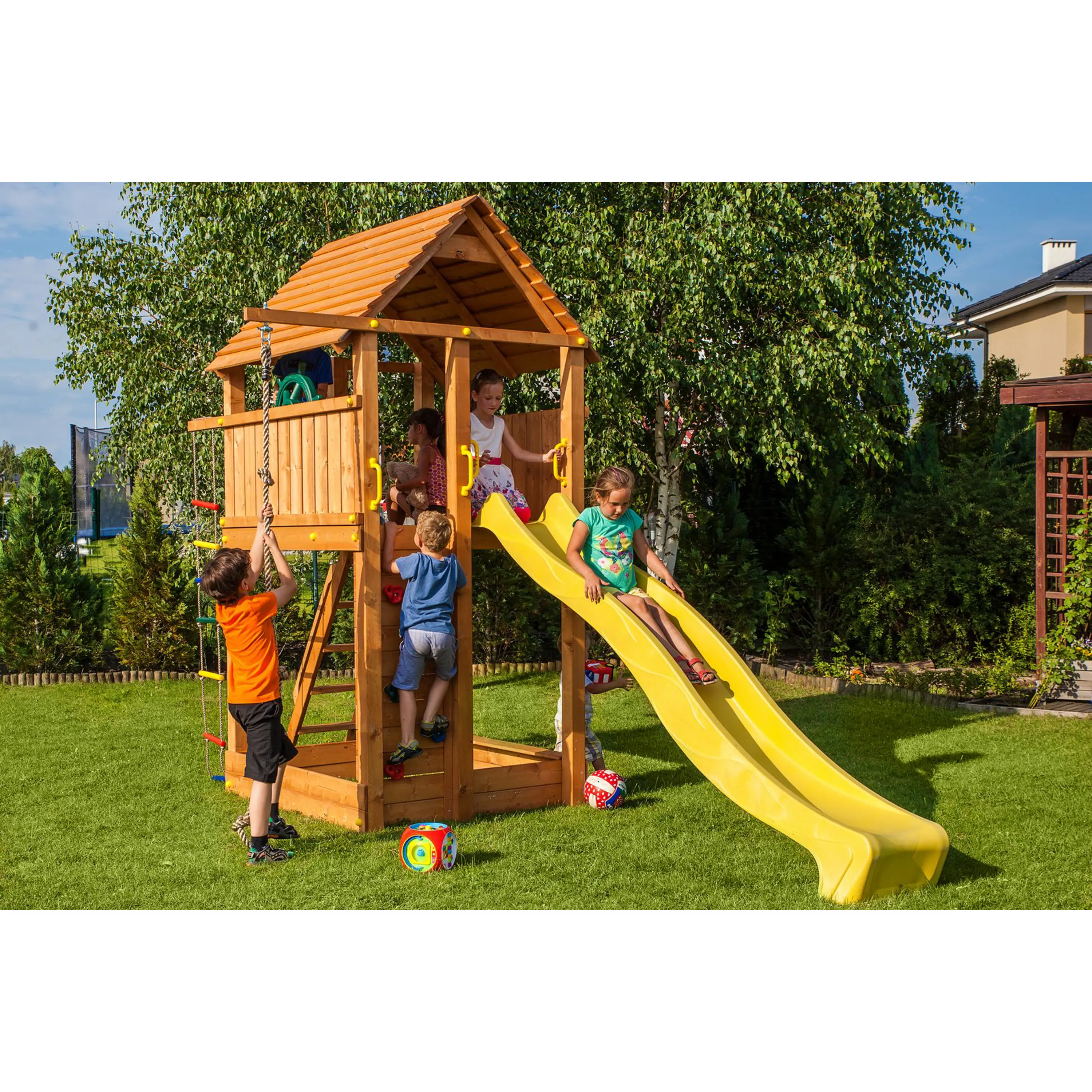 Bezstarostné užívání je pro nás prioritou, proto všechna dětská hřiště prošla náročnými testy jakosti i bezpečnosti a splňují normy EN 71 Bezpečnosti hraček.