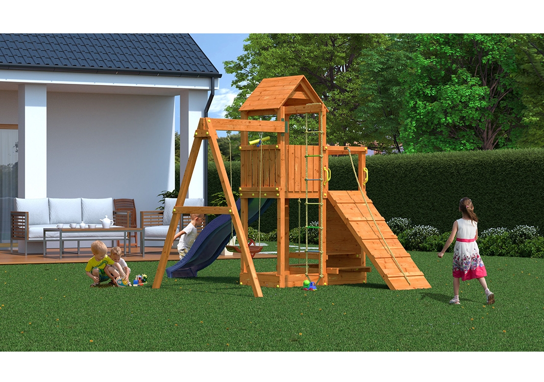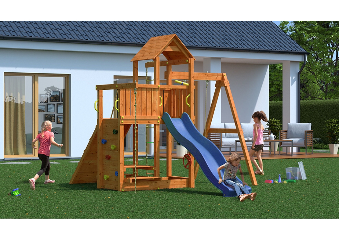 Pro radovánky a zábavu Vašich dětí je dětské hřiště MARIMEX PLAY 009 jako stvořené. Na hlavní věž budou moci děti vylézt pomocí žebříku nebo jako správní horolezci přes horolezeckou stěnu.