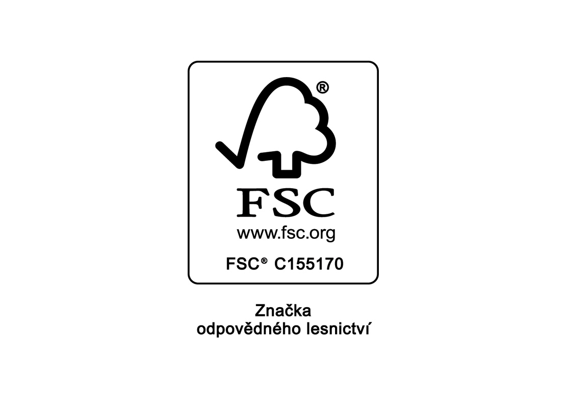 Produkt disponuje certifikátem FSC®, který zaručuje, že při výrobě bylo šetrně zacházeno s přírodními zdroji. Organizace Forest Stewardship Council obecně podporuje ekologické, sociálně prospěšné a ekonomicky životaschopné obhospodařování lesů.