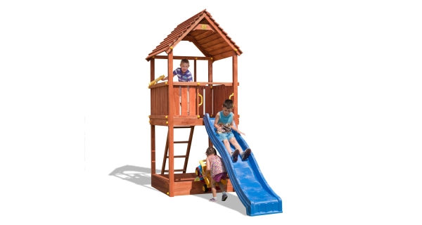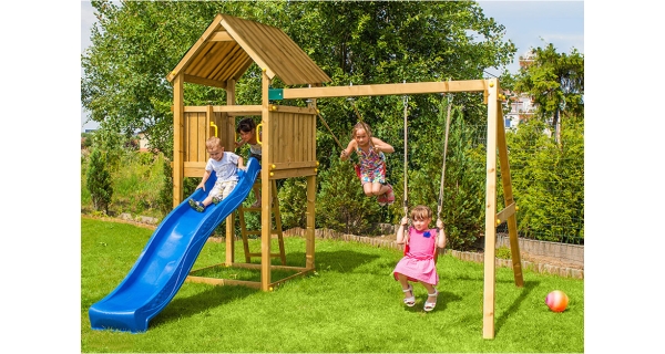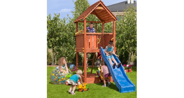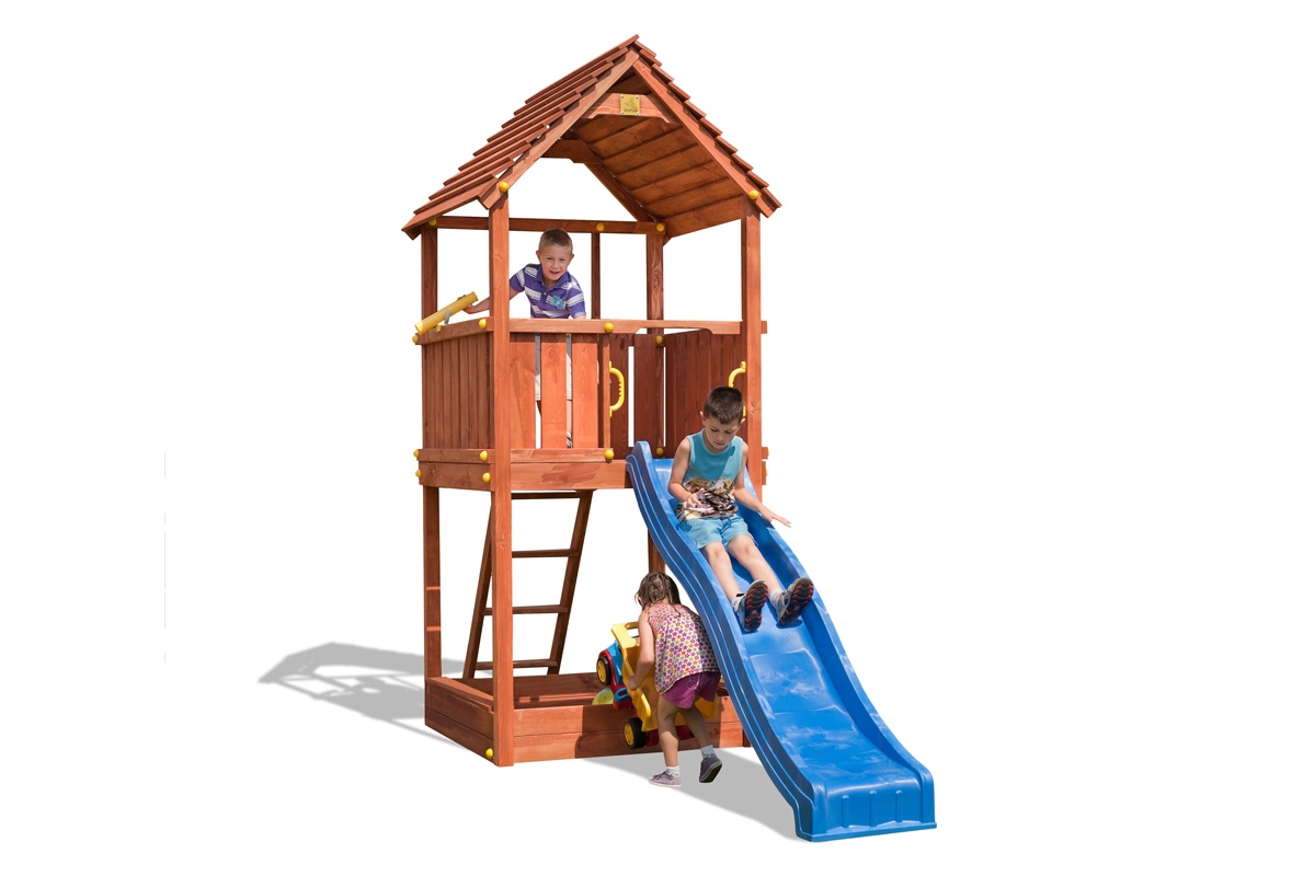 Dětské hřiště MARIMEX PLAY 001 se skvěle hodí do každé zahrady. Skládá se z dřevěné herní věže a skluzavky. Děti si užijí spoustu zábavy a pohybu, nejen při lezení na věž po žebříku a poté při parádním sklouznutí po skluzavce, ale také při hraní s doplňky, které věž obsahuje. Je totiž vybavena dalekohledem. Pro klidné a bezpečné sklouznutí Vašich dětí jsou u skluzavky instalovány madla. Pod věží děti naleznou další prostor na hraní. Je zde pískoviště s dvěma sedáky. Pádu dětí zabraňuje zábradlí, které je okolo celé věže. Pro ochranu dětí před sluncem má věž originální dřevěnou střechou. Hřiště je připevněno do země pomocí kotev, které brání převrácení a pádu věže. Dětské hřiště splňuje normy EN 71 Bezpečnosti hraček. Dřevěný materiál je opracován tak, aby snižoval riziko zranění dětí. Zároveň je impregnován pro dlouhou životnost a vysokou odolnost celého hřiště.