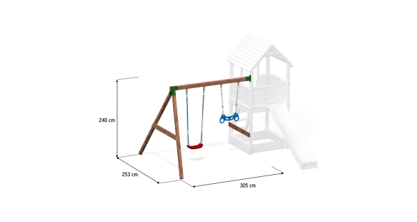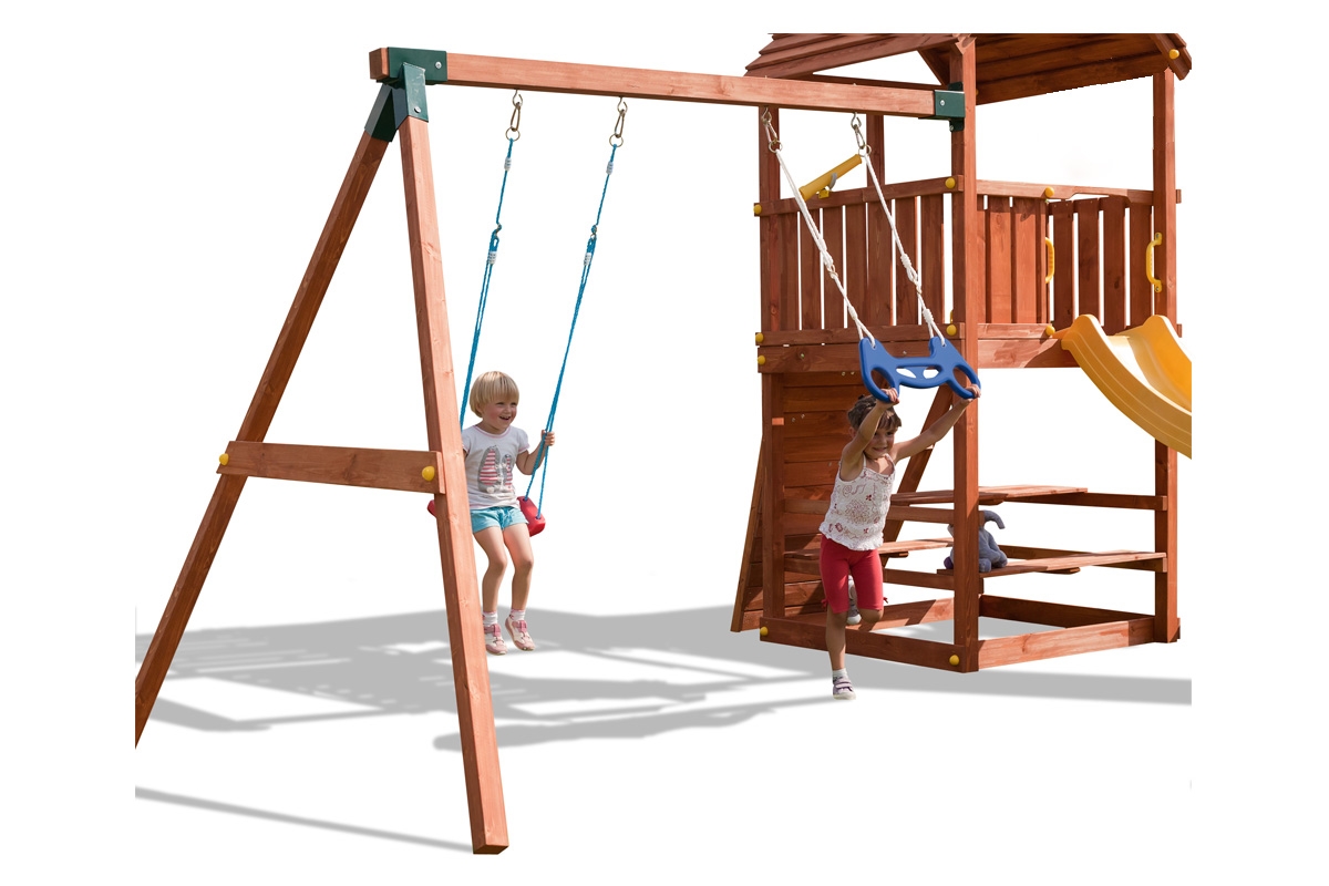 Dopřejte svým dětem o zábavu navíc. Pořiďte k dětskému hřišti houpačku, která je kompatibilní se všemi věžemi a domky Marimex Play. V základní sadě je červené, modré nebo trapézové sedátko. Sedátko se dá zaměnit za jakékoliv jiné z této řady. Houpačka je určena pro max. 2 děti. Hmotnost 1 dítěte je počítána do max. 50 kg. Vyrobeno z borovicového dřeva.