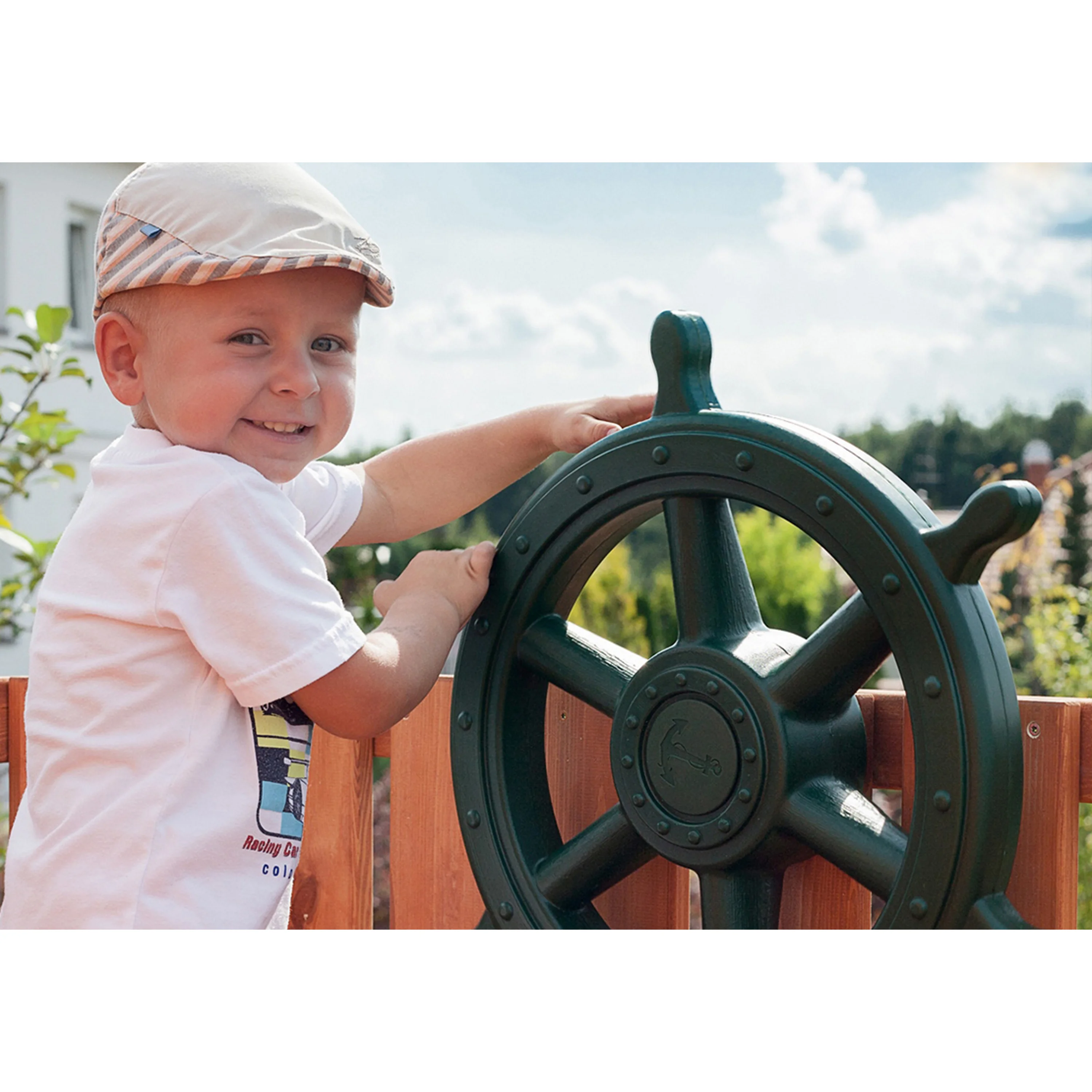 Veškeré komponenty jsou vyrobeny z robustního plastu, odolného kovu a borovicového dřeva, které je povrchově ošetřeno proti nepříznivým vlivům počasí.