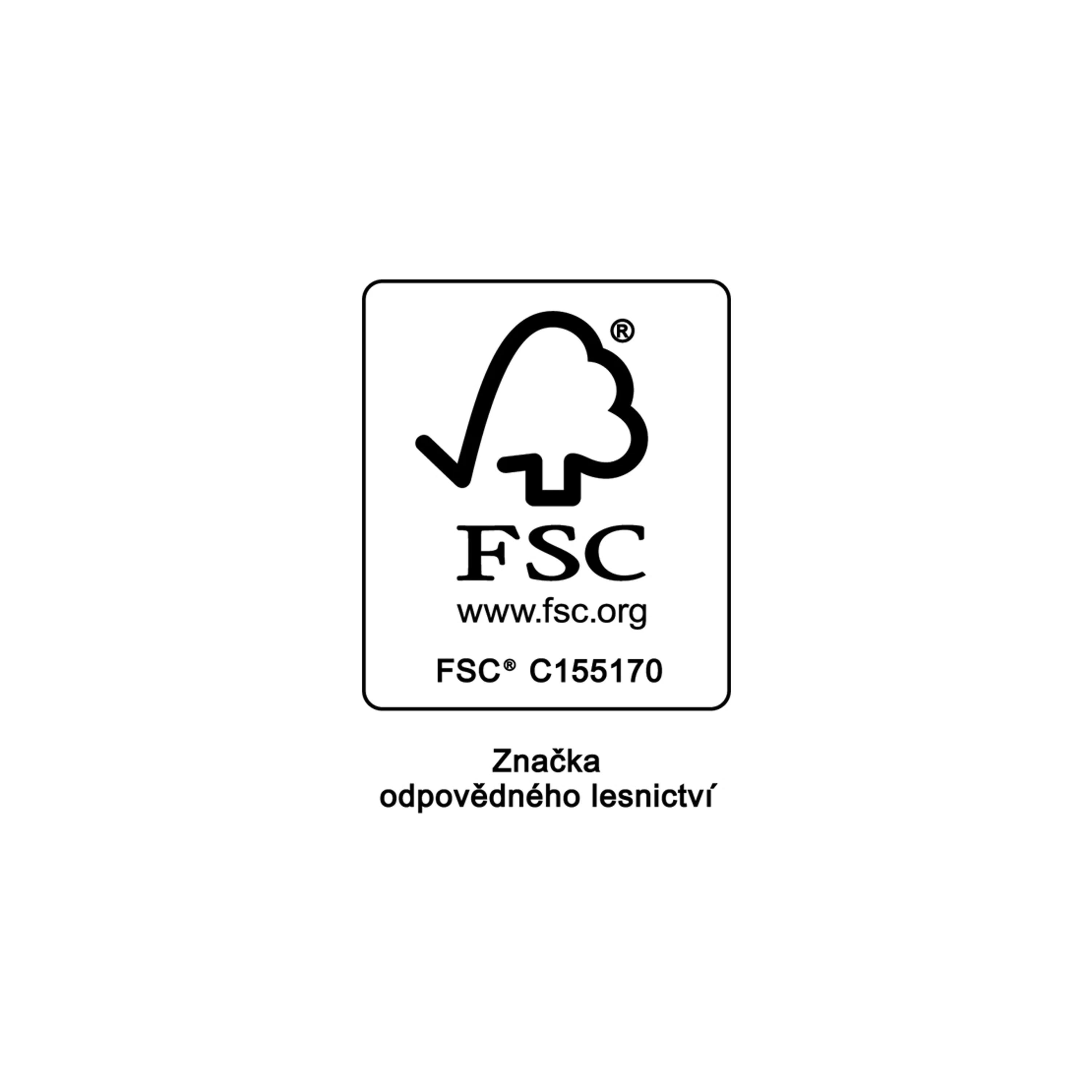 Produkt disponuje certifikátem FSC®, který zaručuje, že při výrobě bylo šetrně zacházeno s přírodními zdroji. Organizace Forest Stewardship Council obecně podporuje ekologické, sociálně prospěšné a ekonomicky životaschopné obhospodařování lesů.