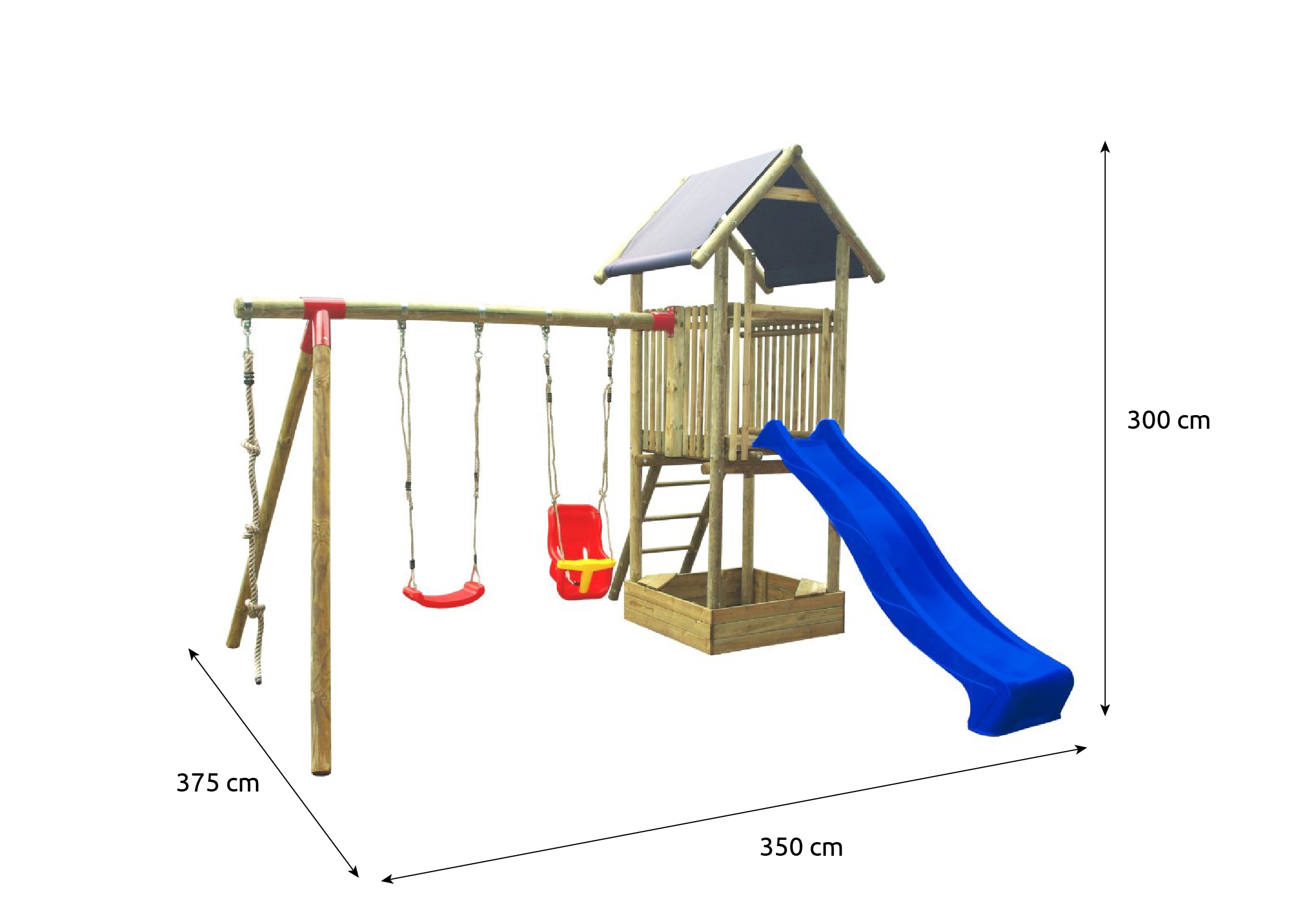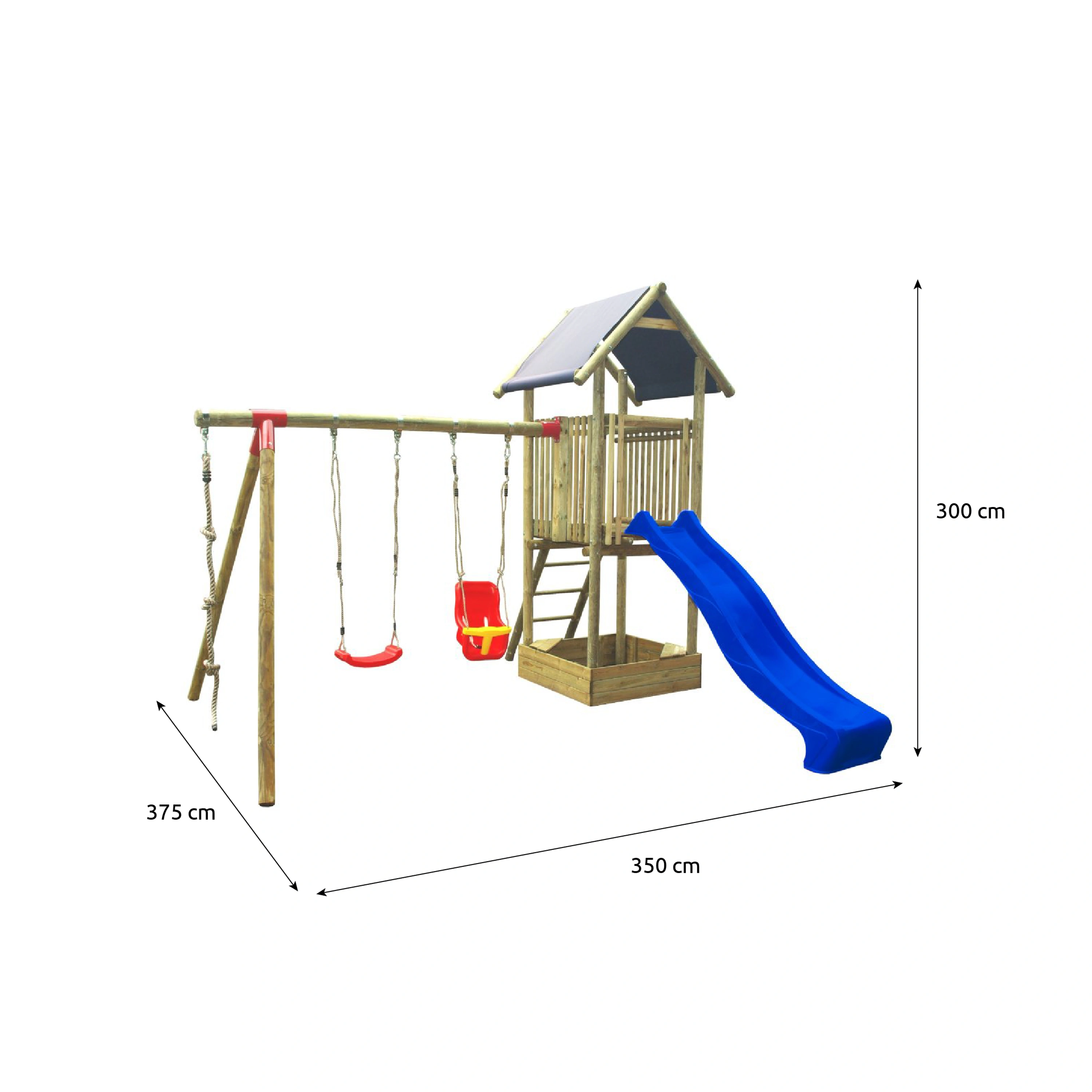 Kvalitní materiályVeškeré komponenty jsou vyrobeny z robustního plastu, odolného kovu a borovicového dřeva, které je povrchově ošetřeno proti nepříznivým vlivům počasí. |