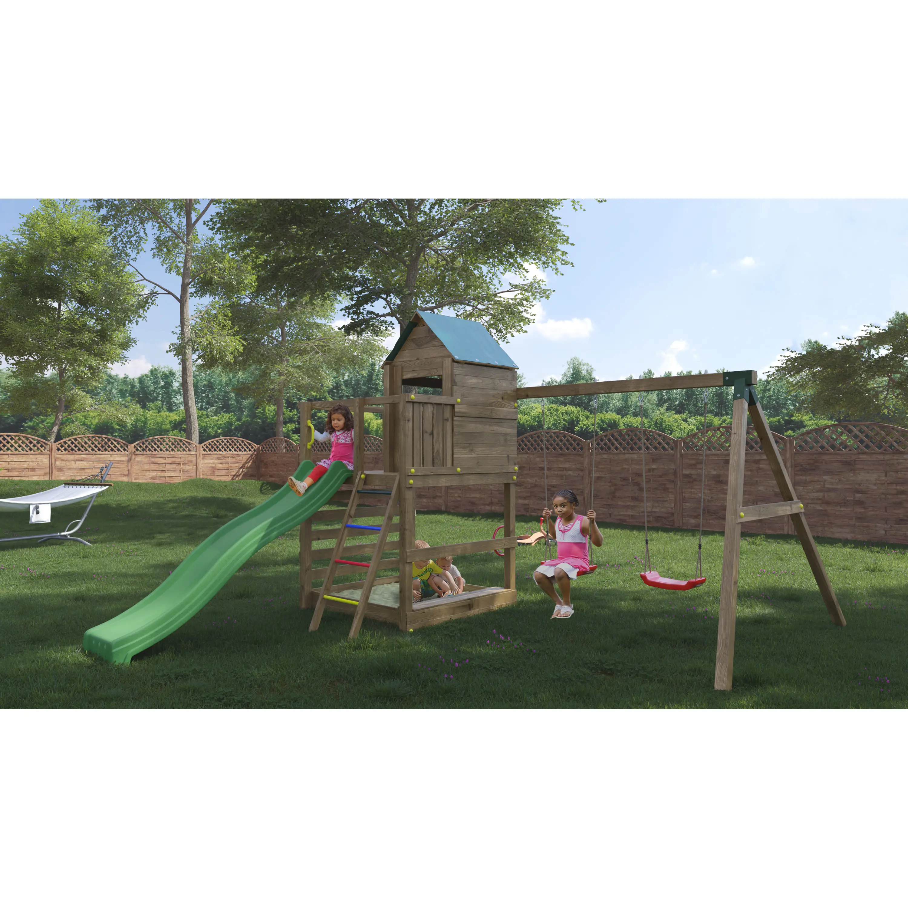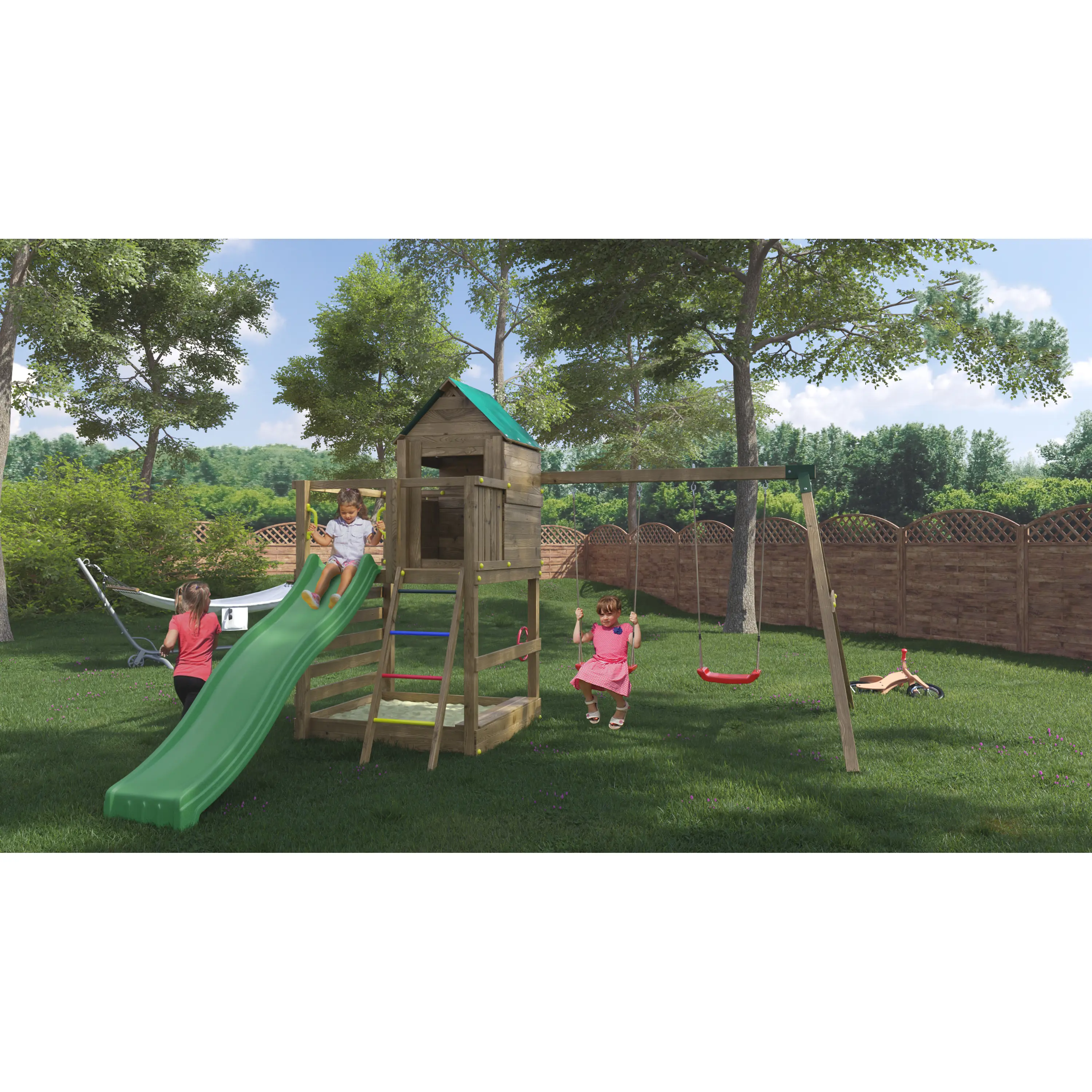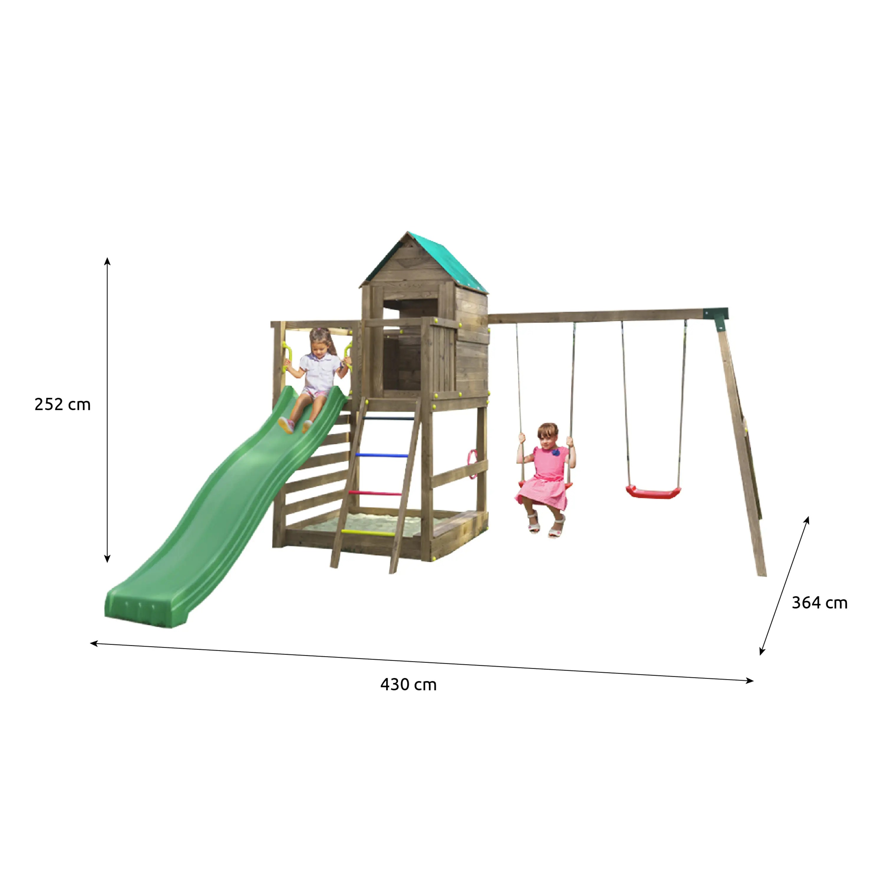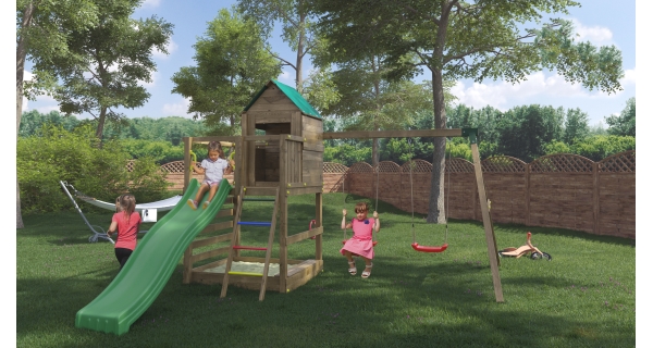 Kvalitní materiályVeškeré komponenty jsou vyrobeny z robustního plastu, odolného kovu a borovicového dřeva, které je povrchově ošetřeno proti nepříznivým vlivům počasí. |